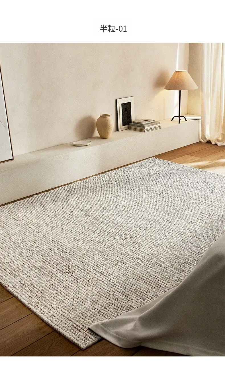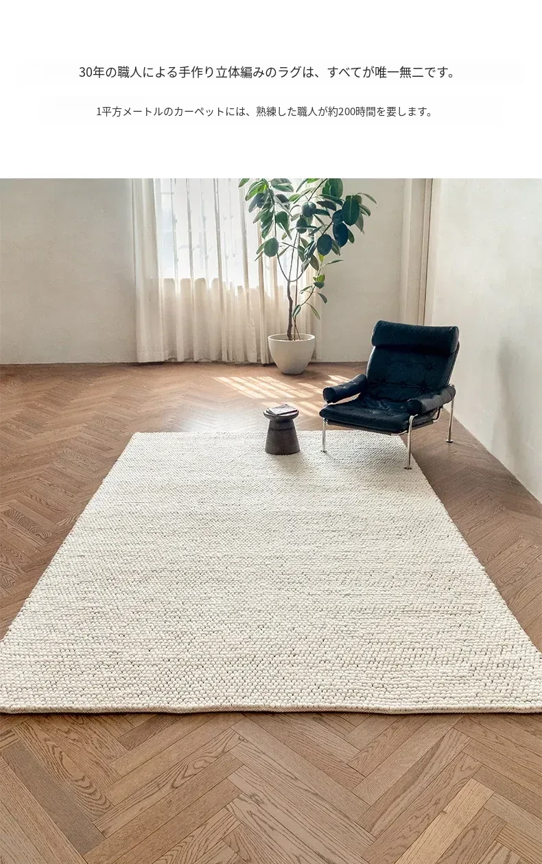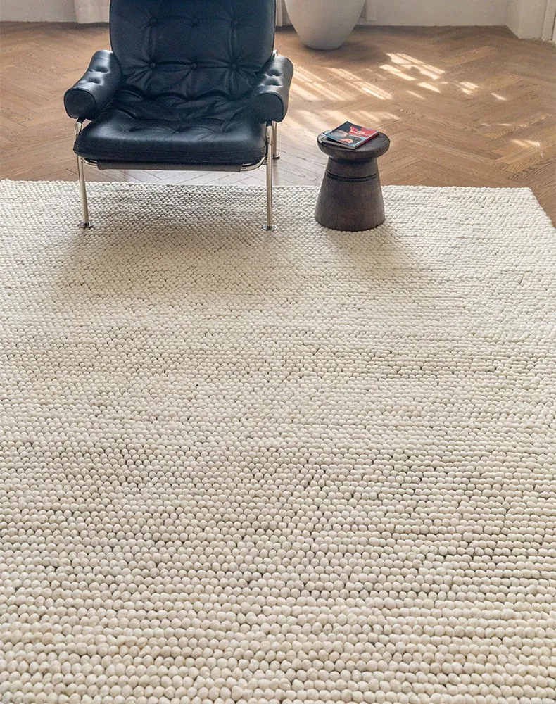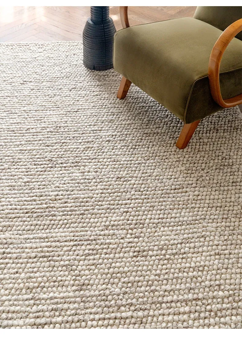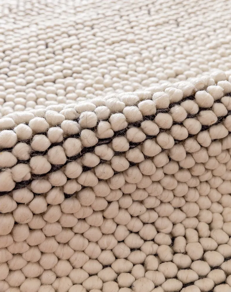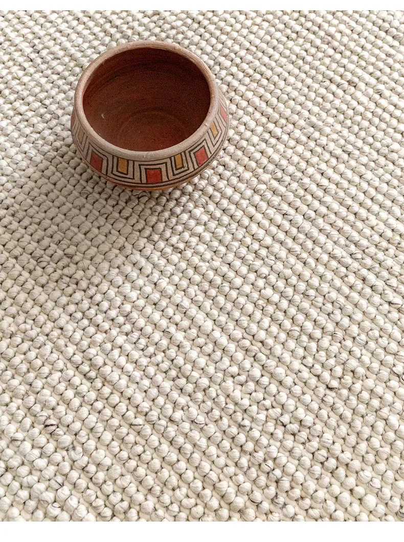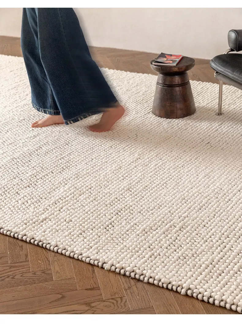 視覚と味覚の調和-ハーフボール|輸入手作りウールラグ、リビングに高級感を与えるシンプルなフレンチモダンデザインのクリーム風。