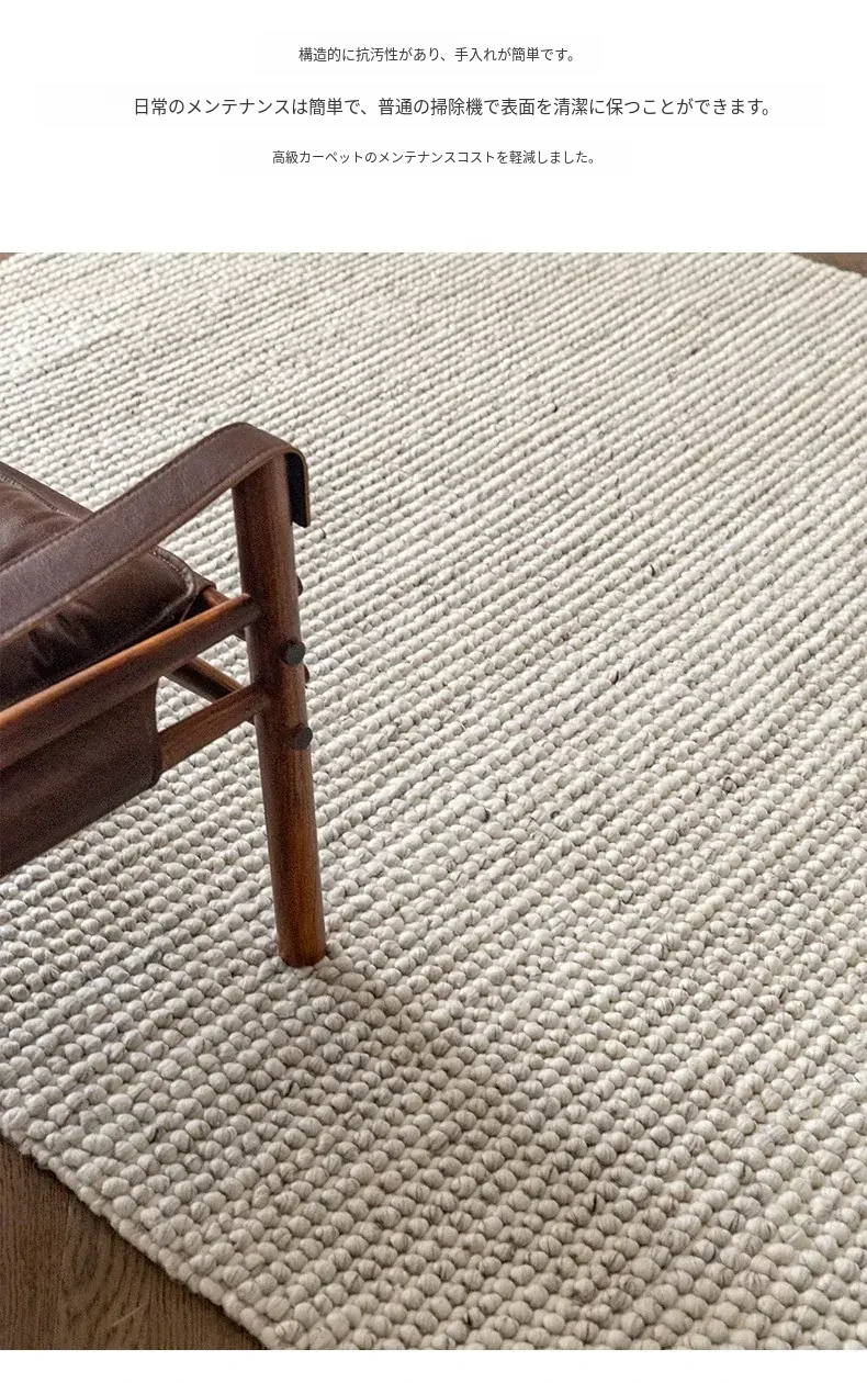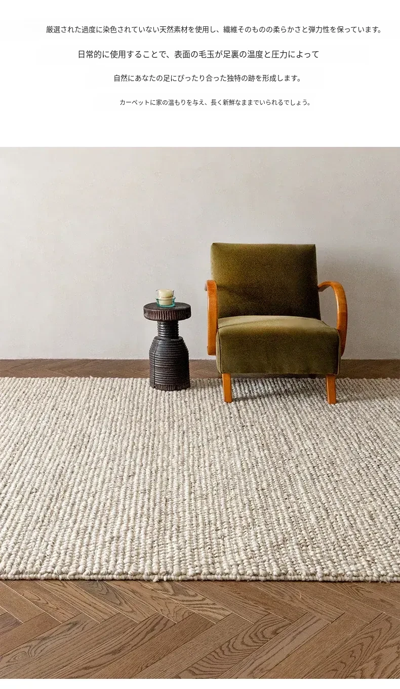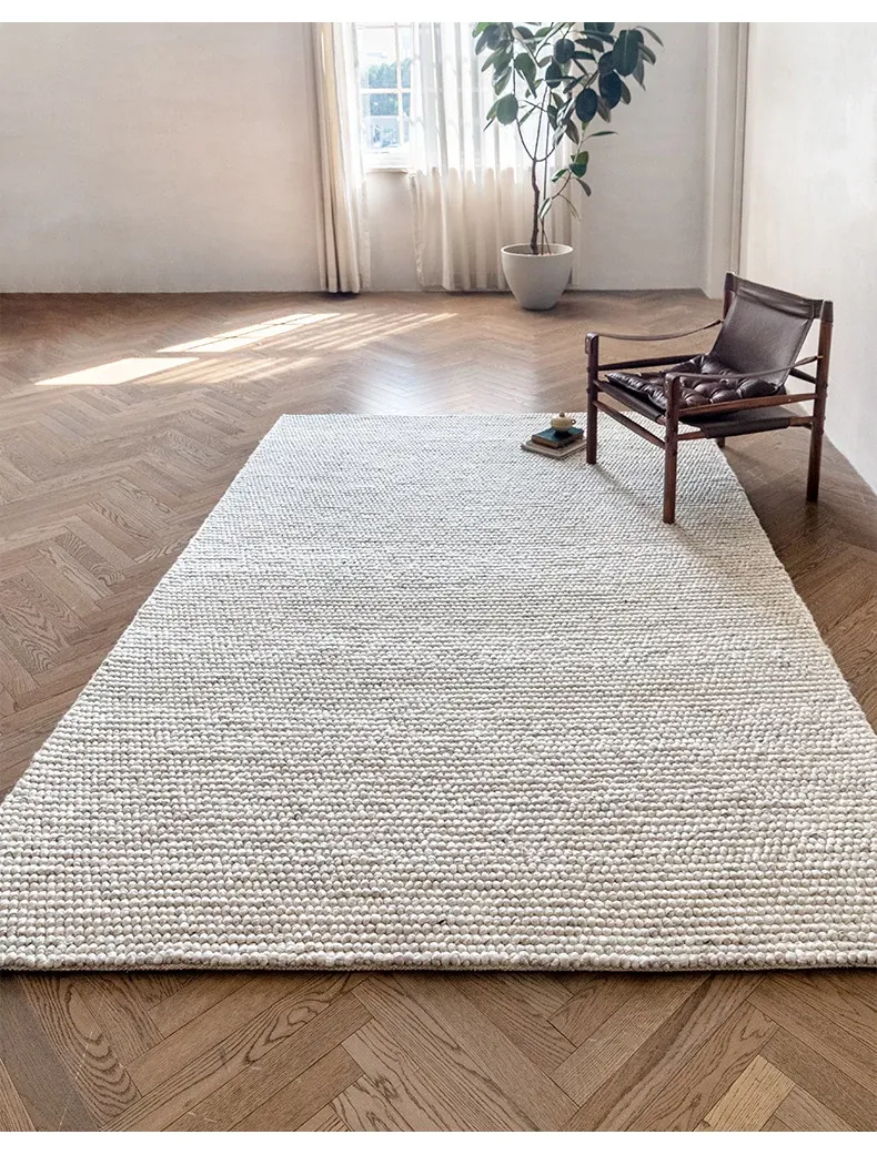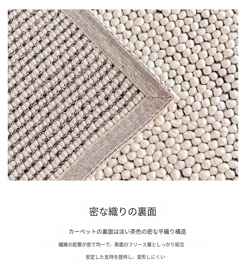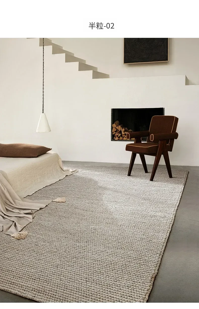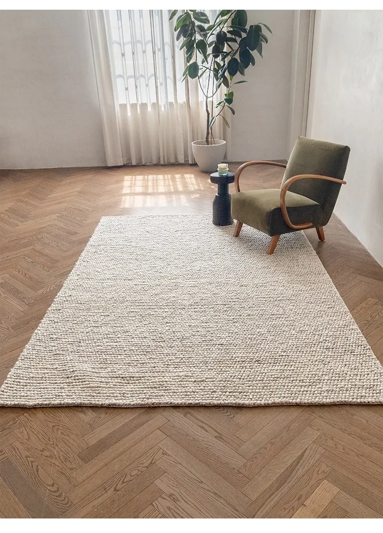 視覚と味覚の調和-ハーフボール|輸入手作りウールラグ、リビングに高級感を与えるシンプルなフレンチモダンデザインのクリーム風。