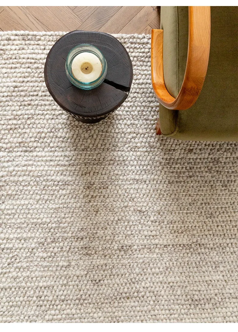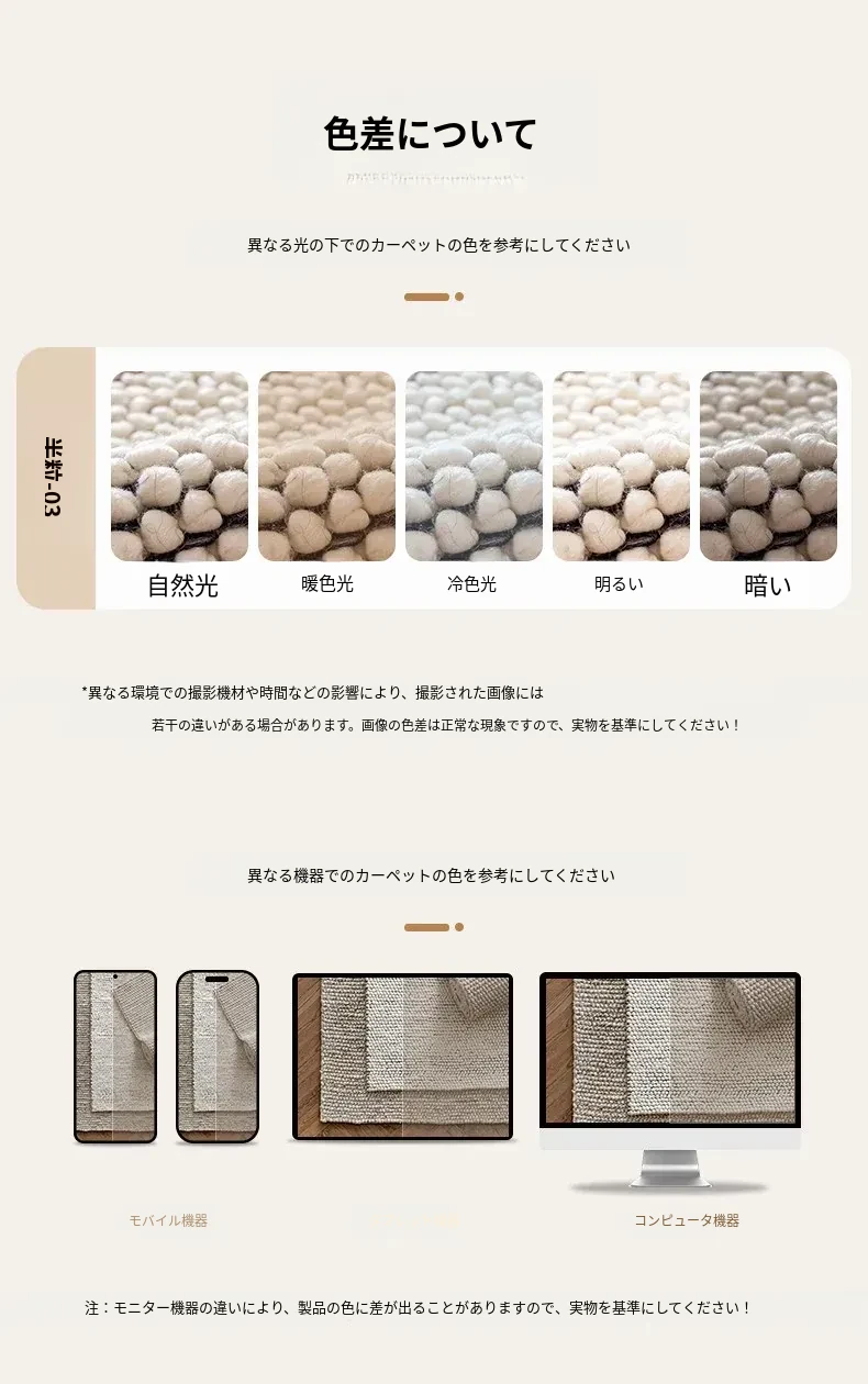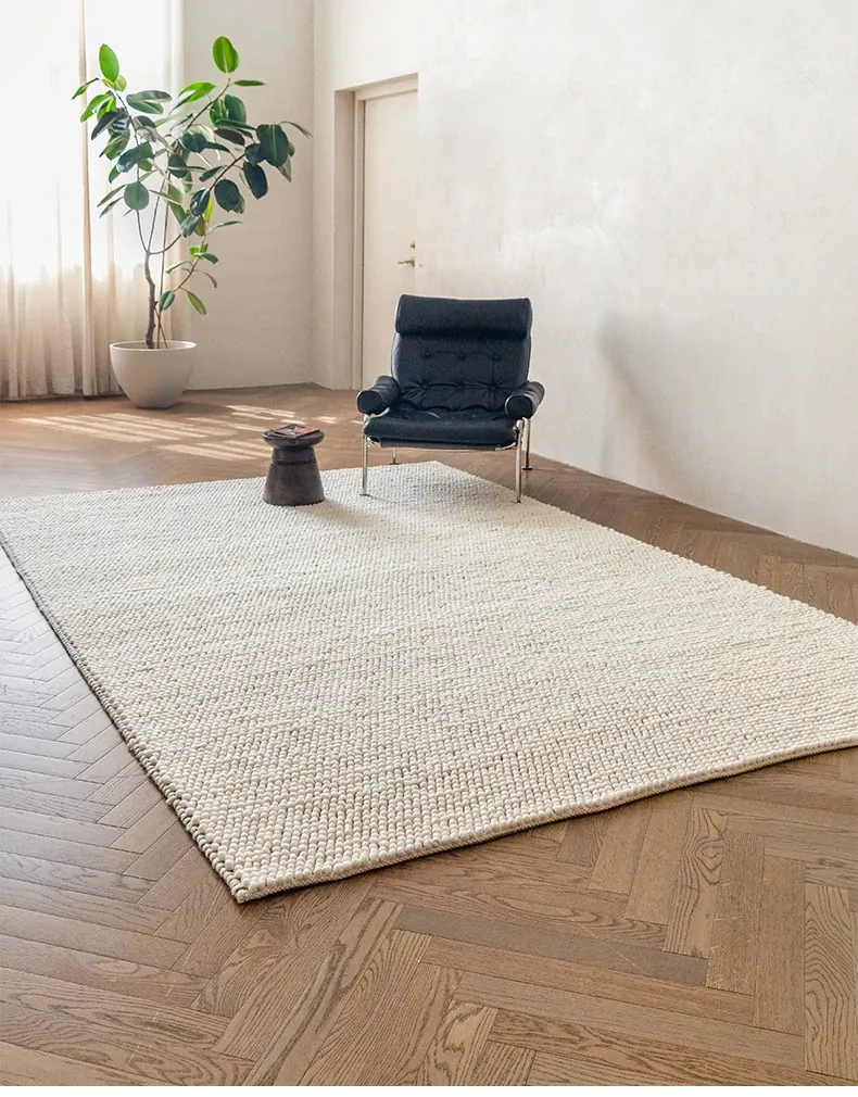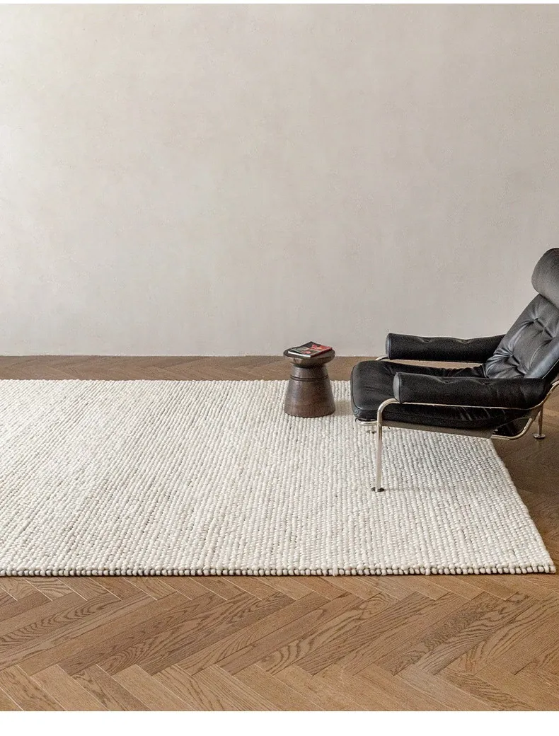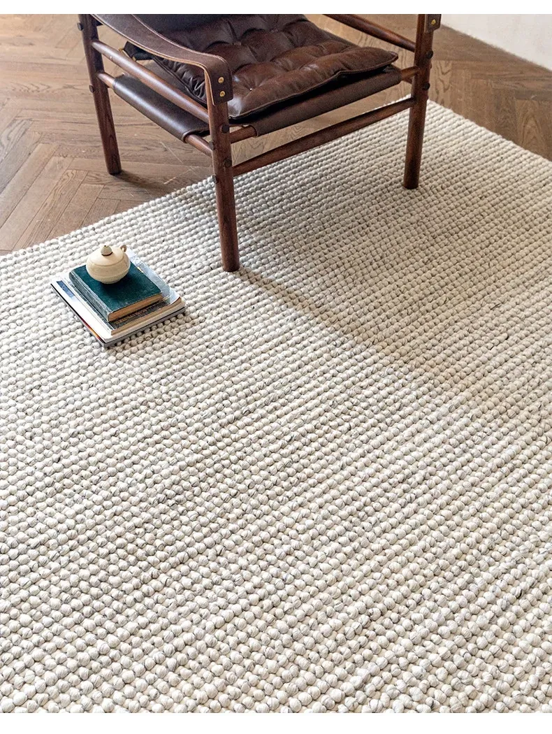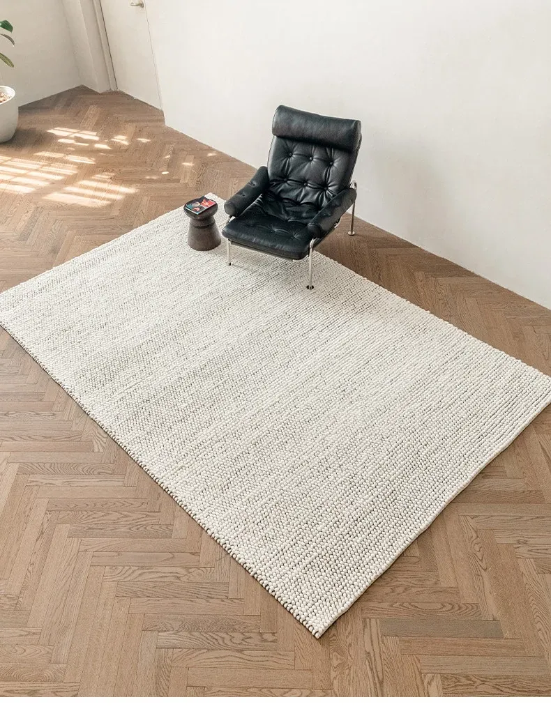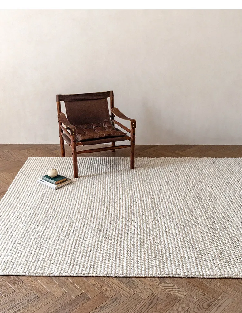 視覚と味覚の調和-ハーフボール|輸入手作りウールラグ、リビングに高級感を与えるシンプルなフレンチモダンデザインのクリーム風。