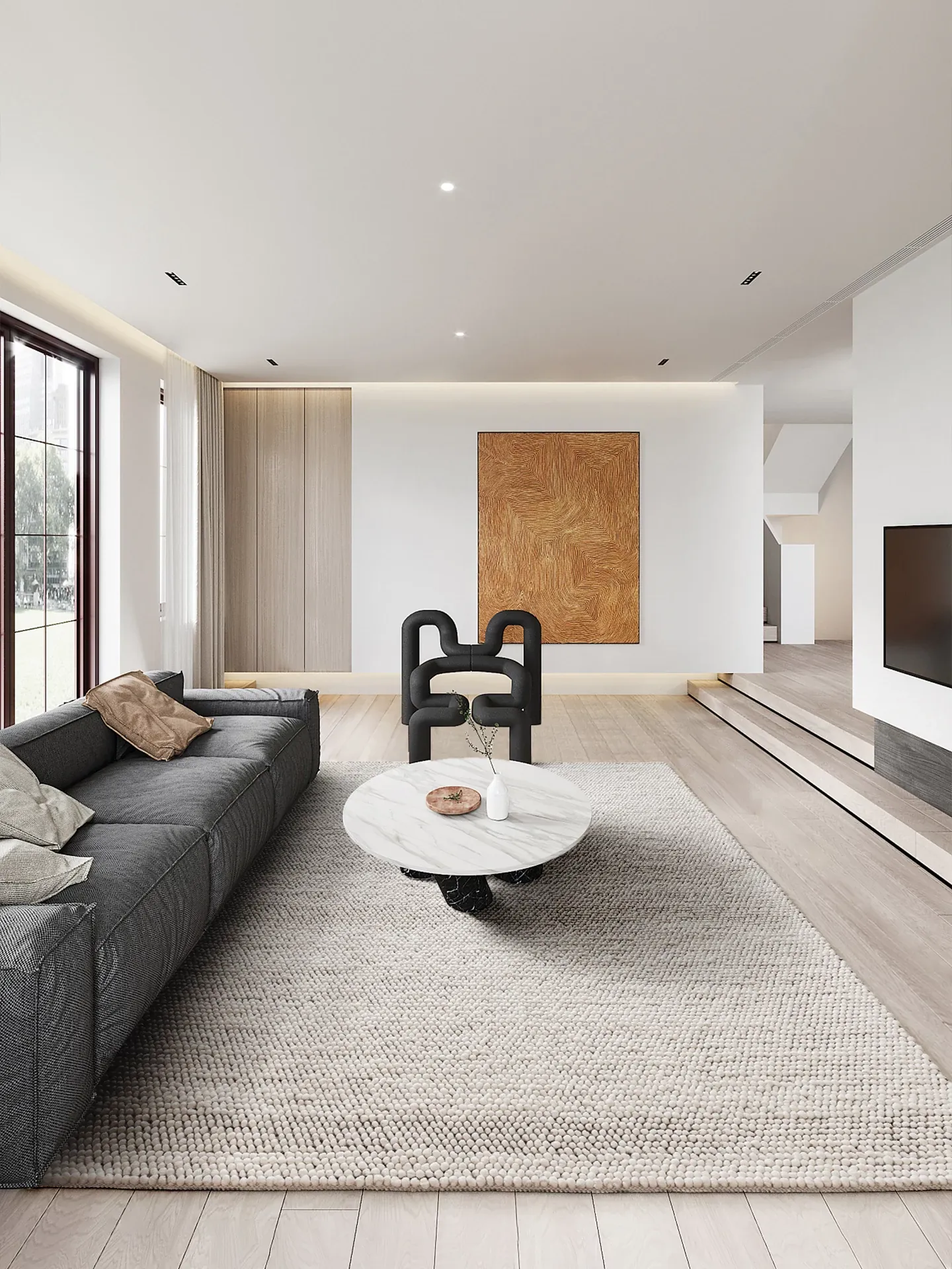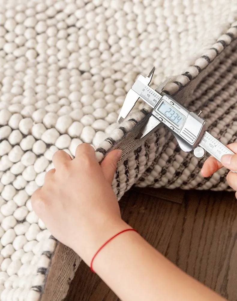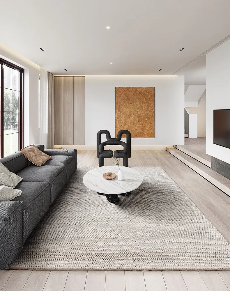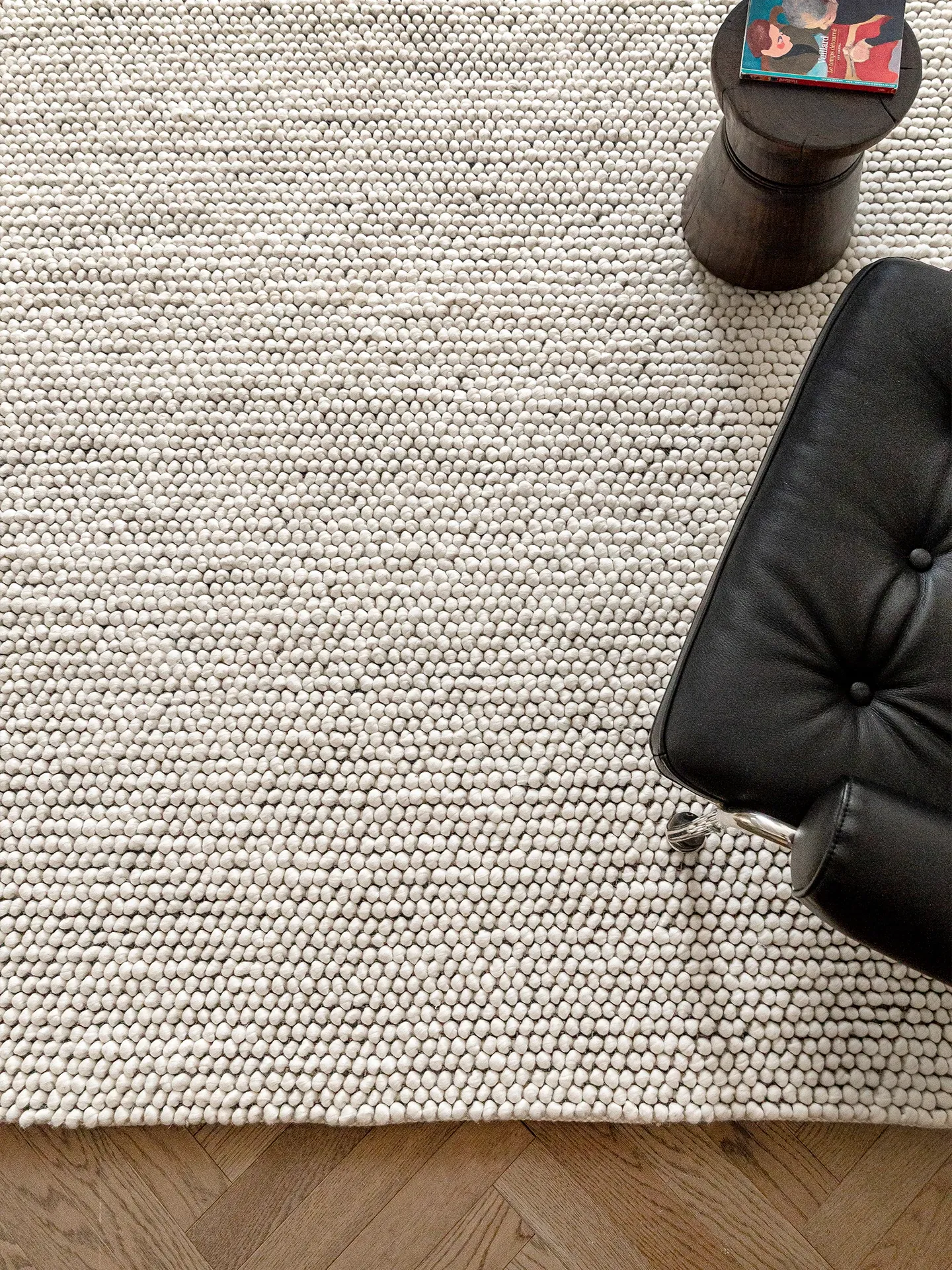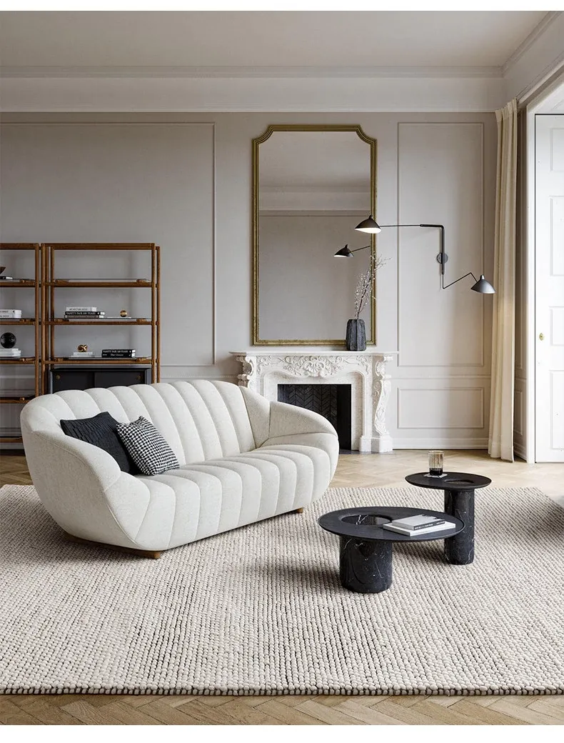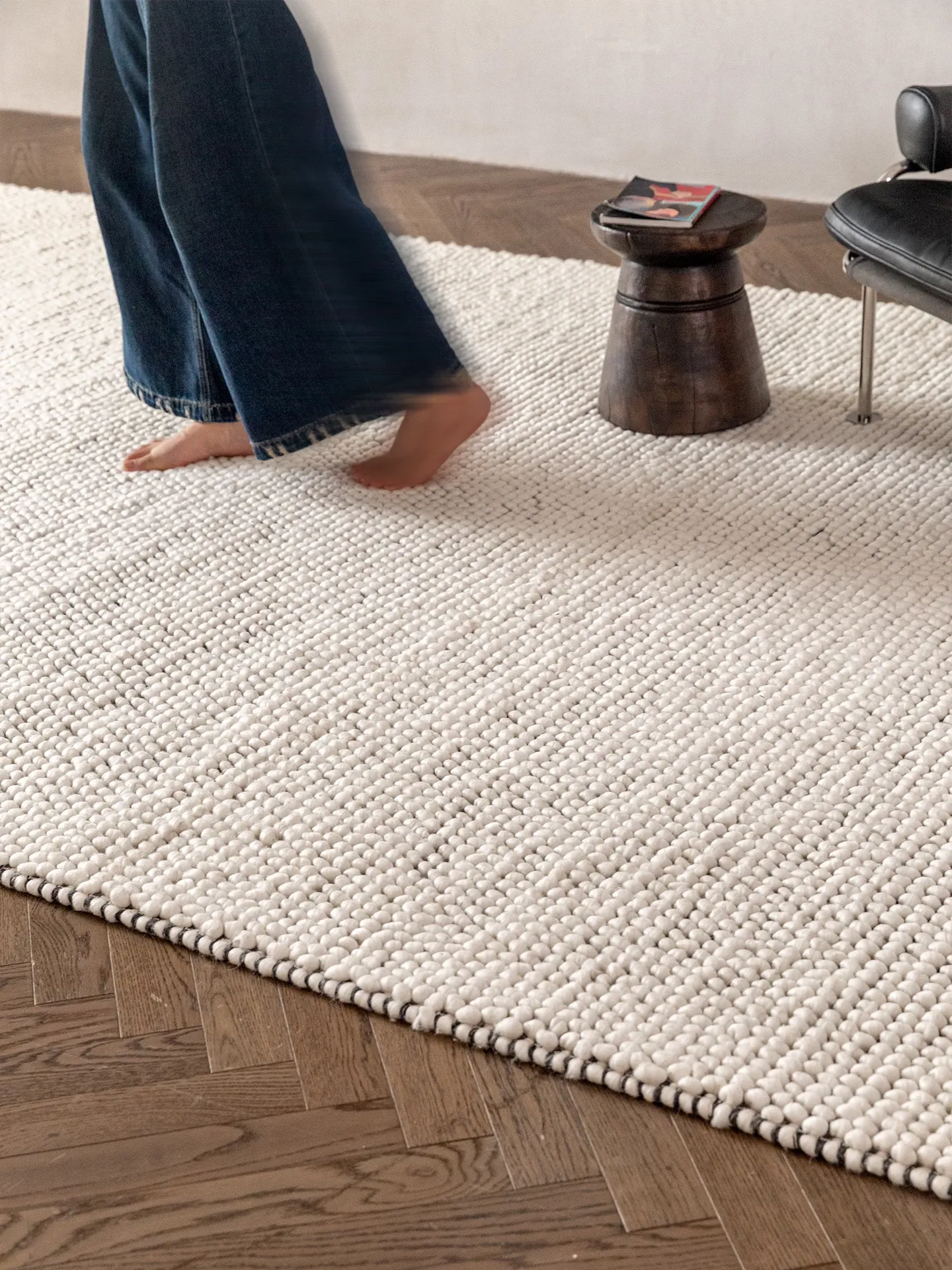 視覚と味覚の調和-ハーフボール|輸入手作りウールラグ、リビングに高級感を与えるシンプルなフレンチモダンデザインのクリーム風。