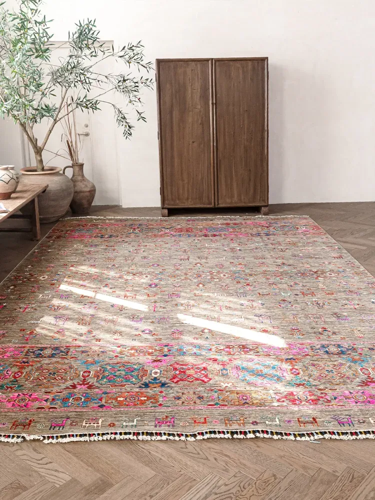視覚的な味わい アフガニスタン直輸入 手作りウールカーペット Gabbehスタイルのヴィンテージ高級リビングルームラグ
