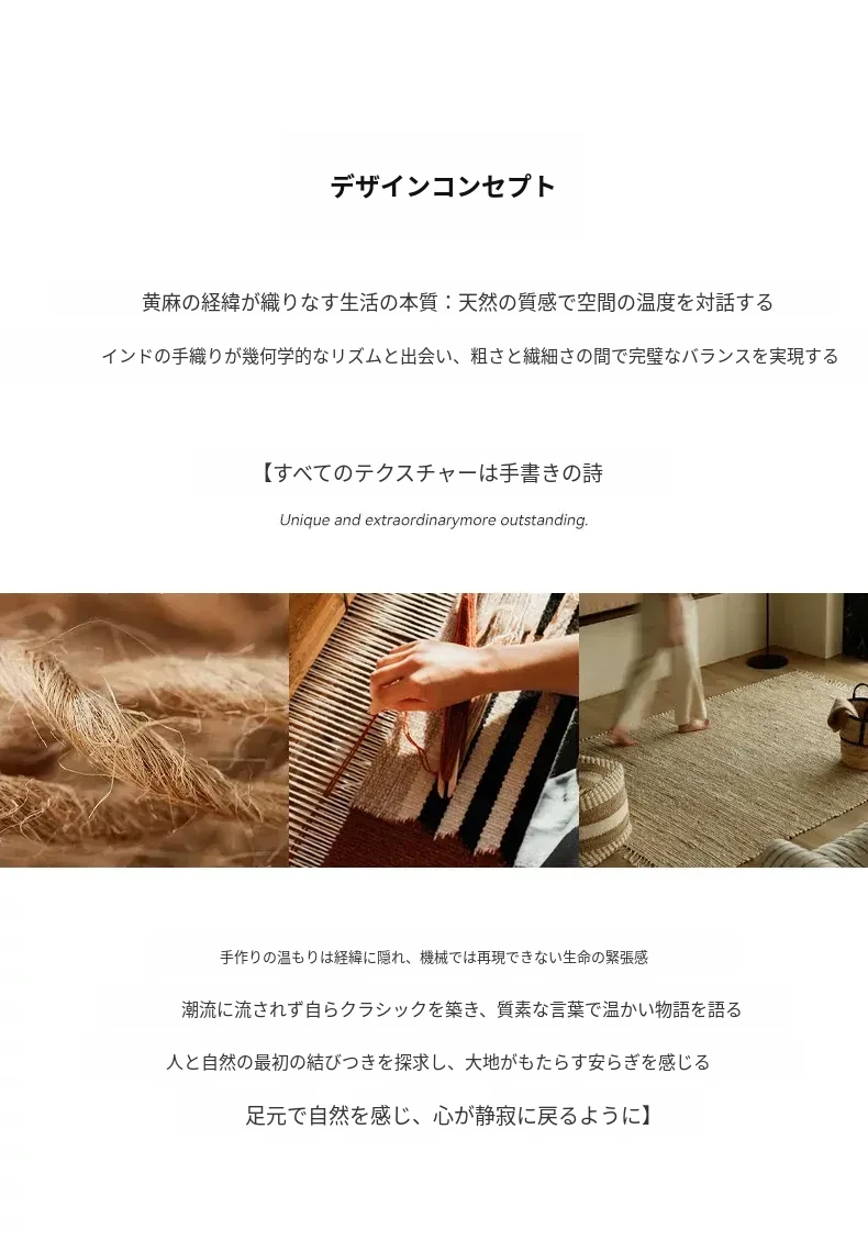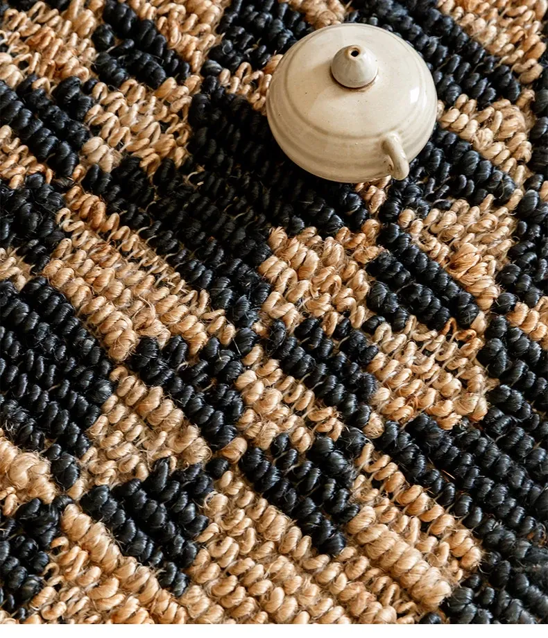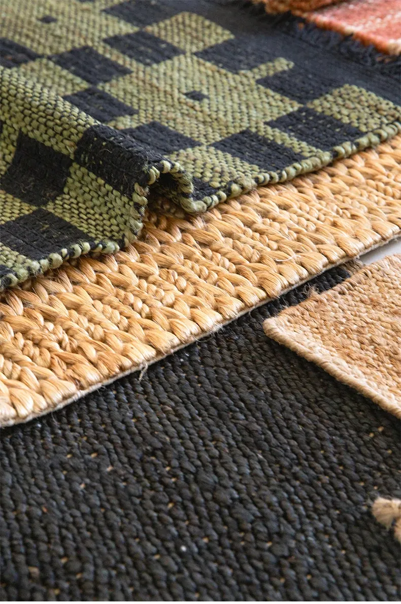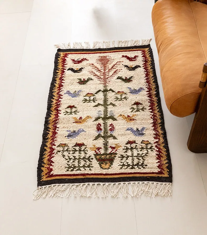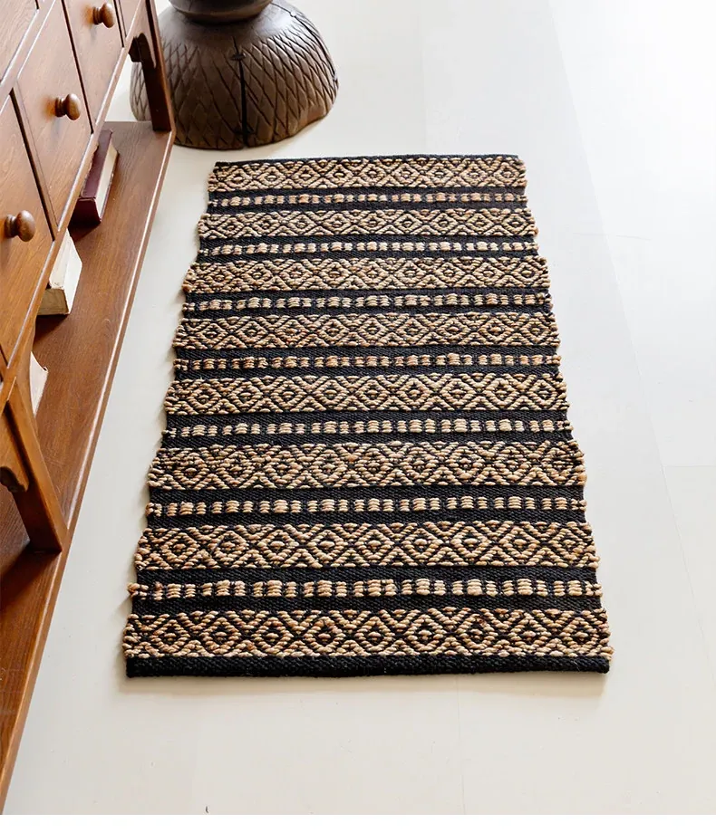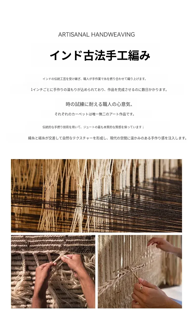 視覚と味覚を楽しむ、インド直輸入の手作りジュートラグ。レトロなデザインで、リビングや玄関に高級感をプラス!