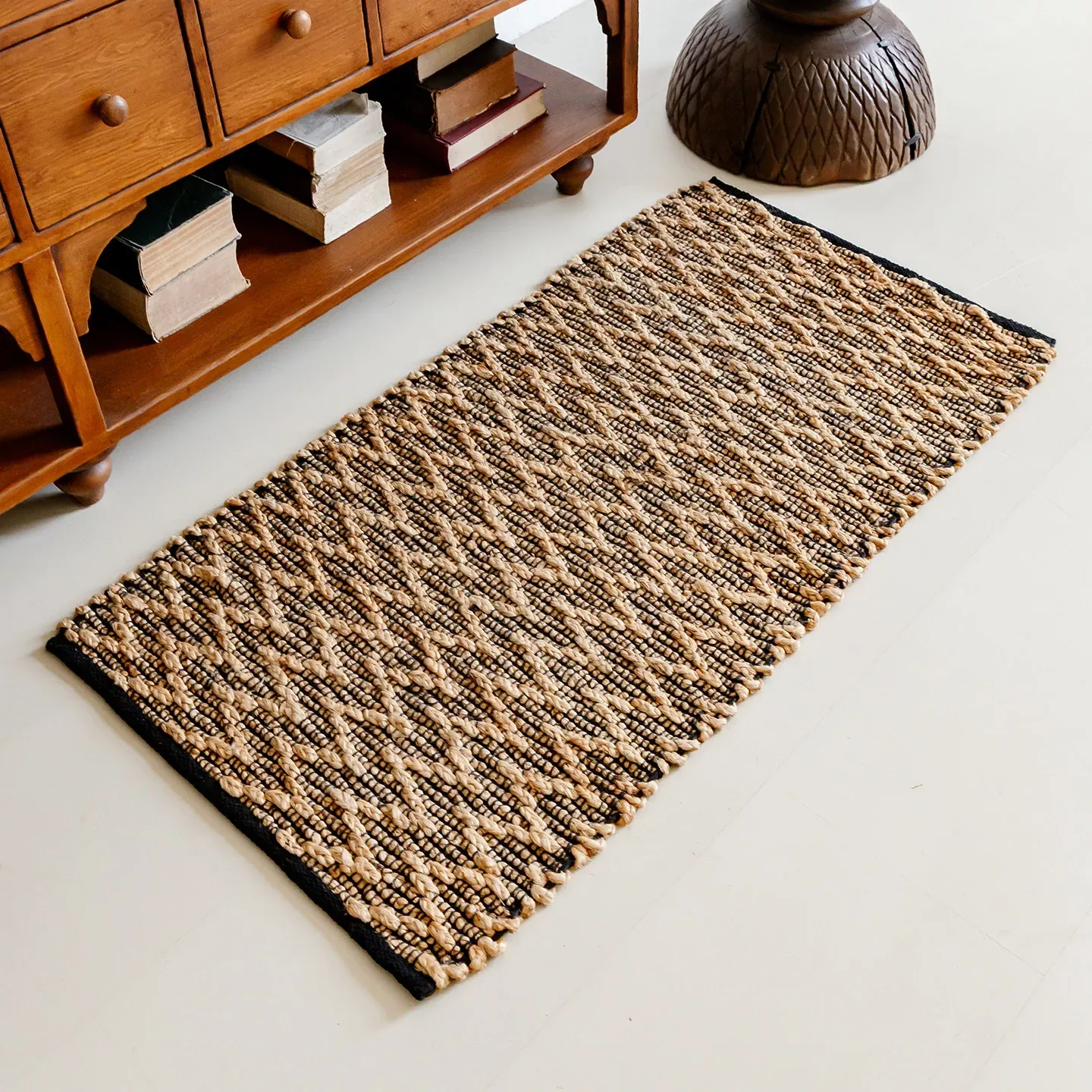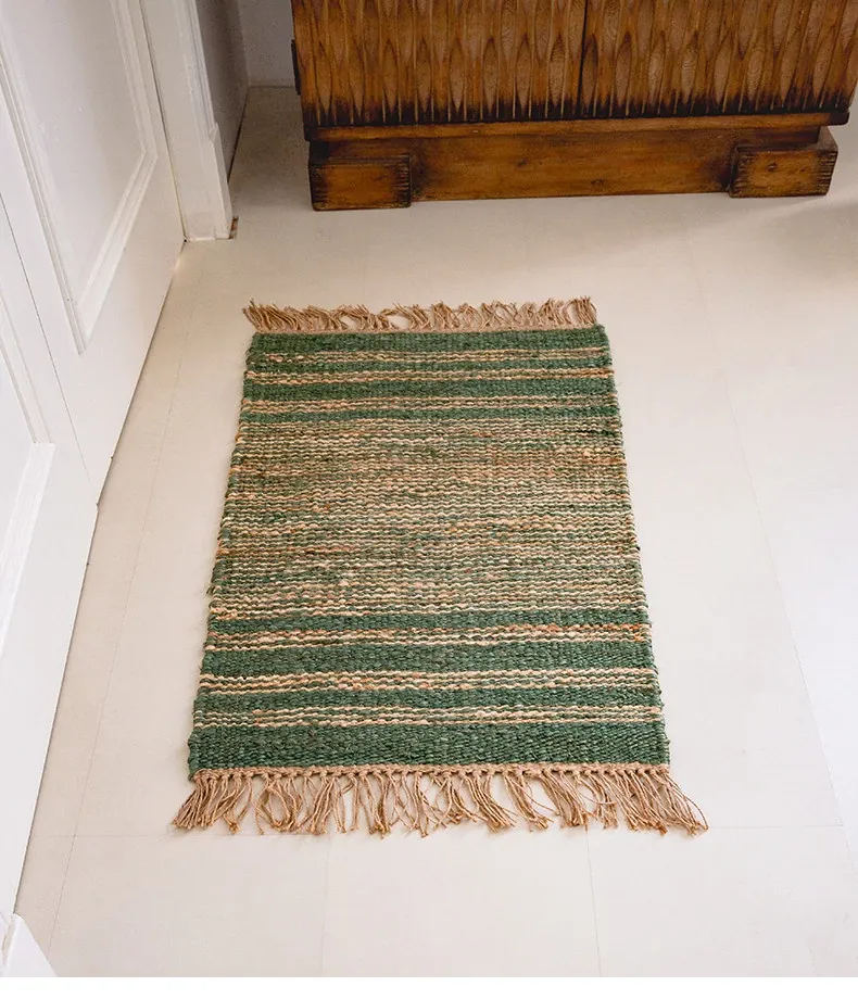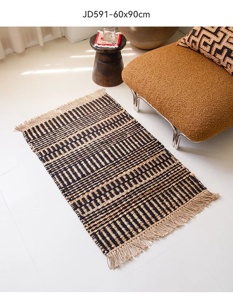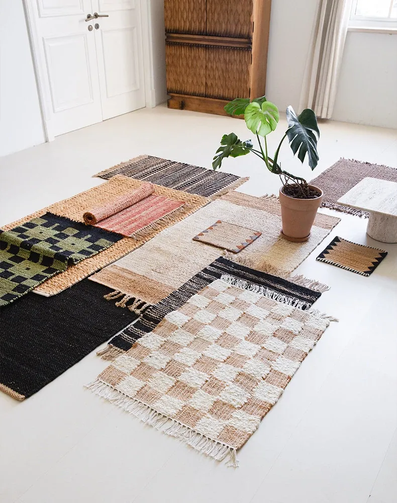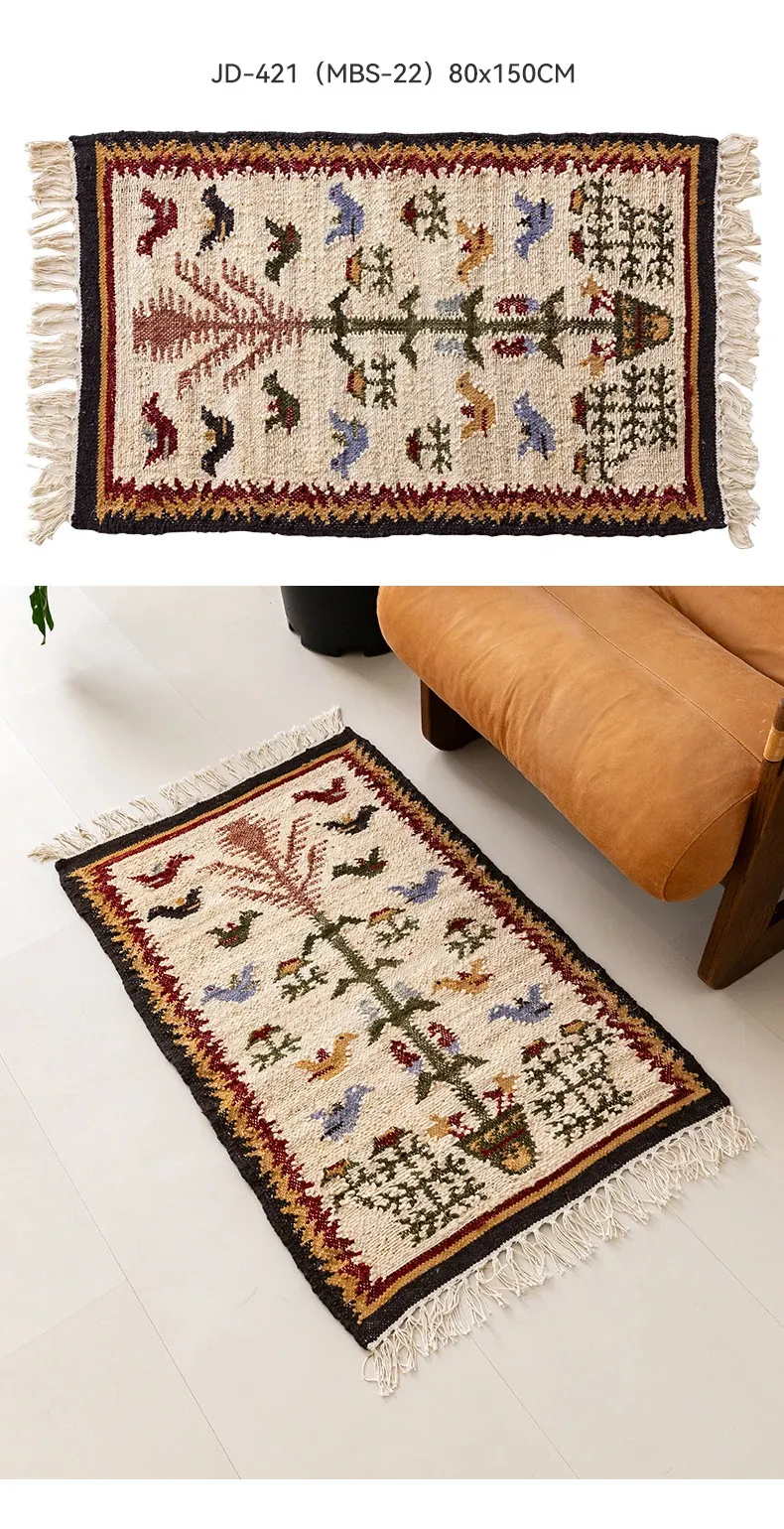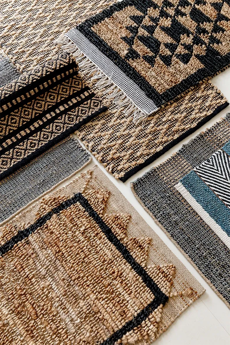 視覚と味覚を楽しむ、インド直輸入の手作りジュートラグ。レトロなデザインで、リビングや玄関に高級感をプラス!