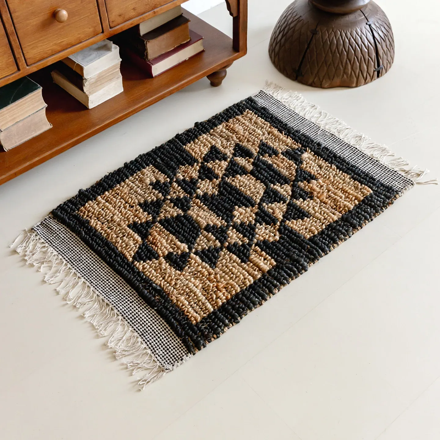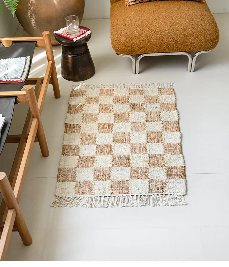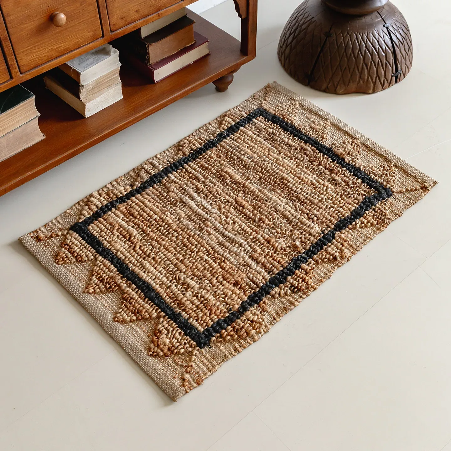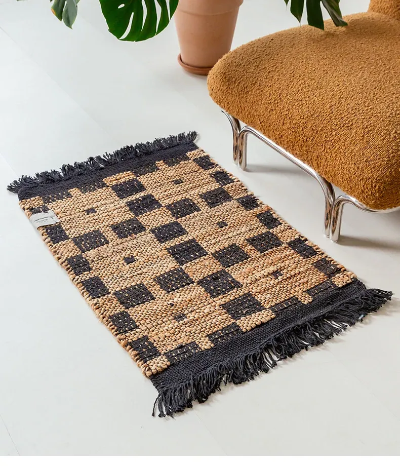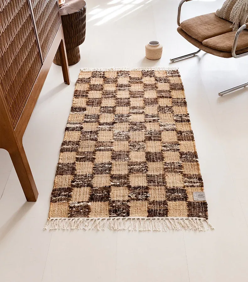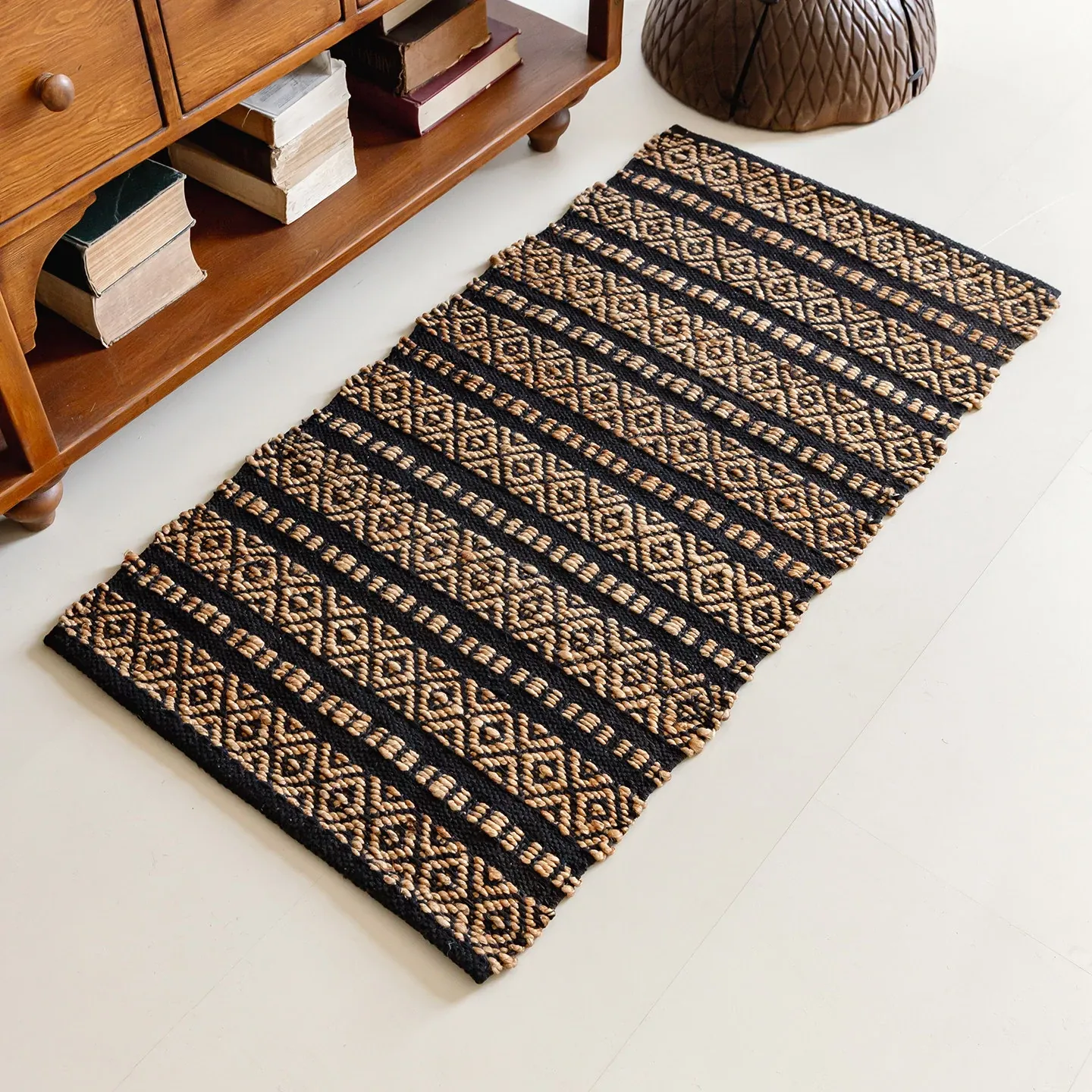 視覚と味覚を楽しむ、インド直輸入の手作りジュートラグ。レトロなデザインで、リビングや玄関に高級感をプラス!