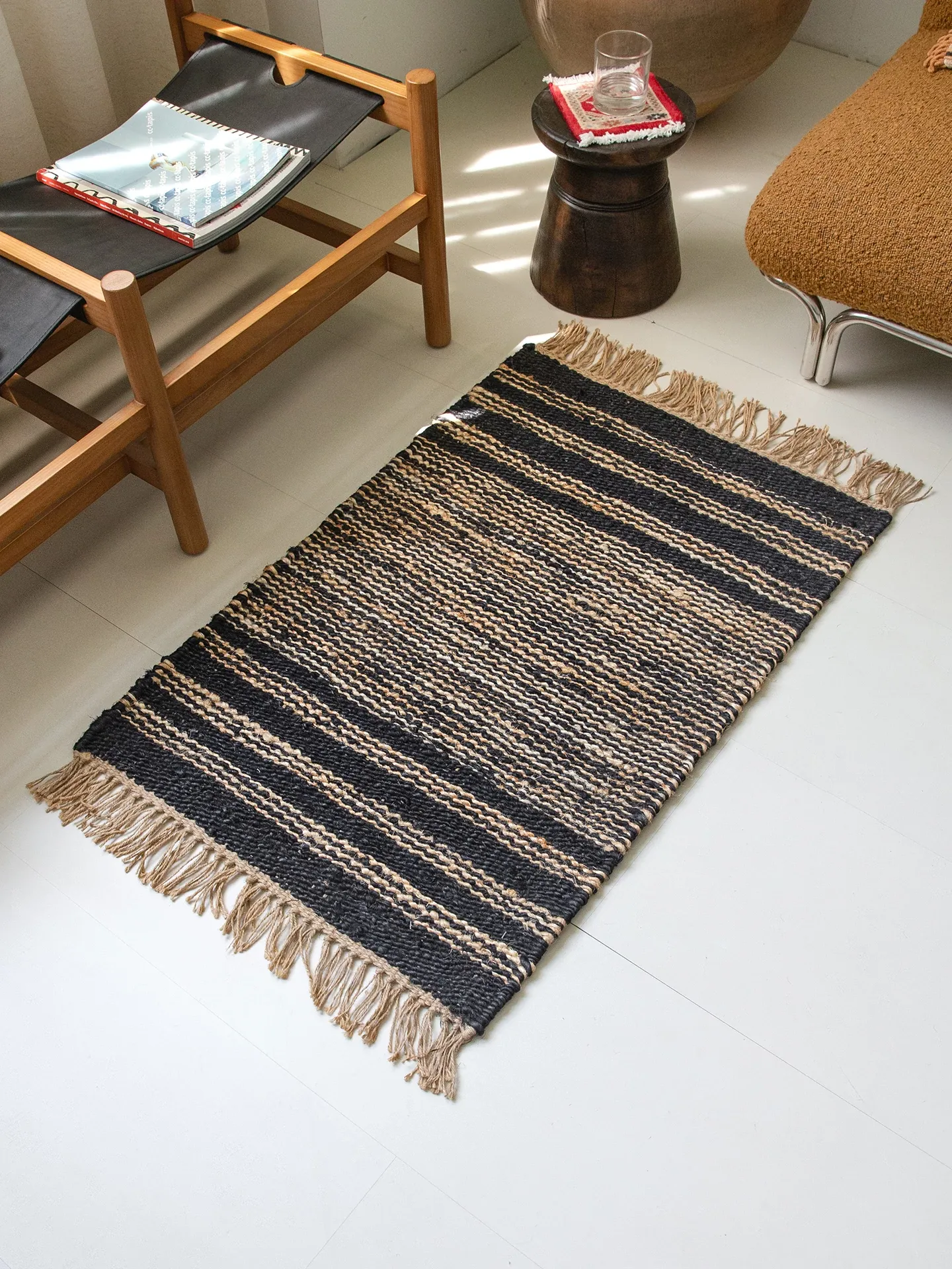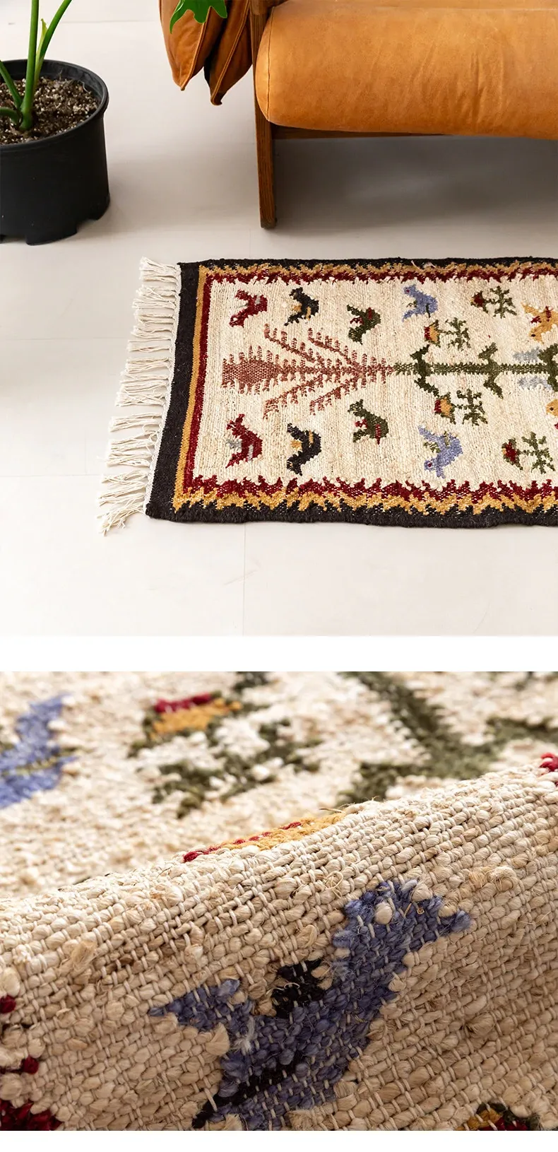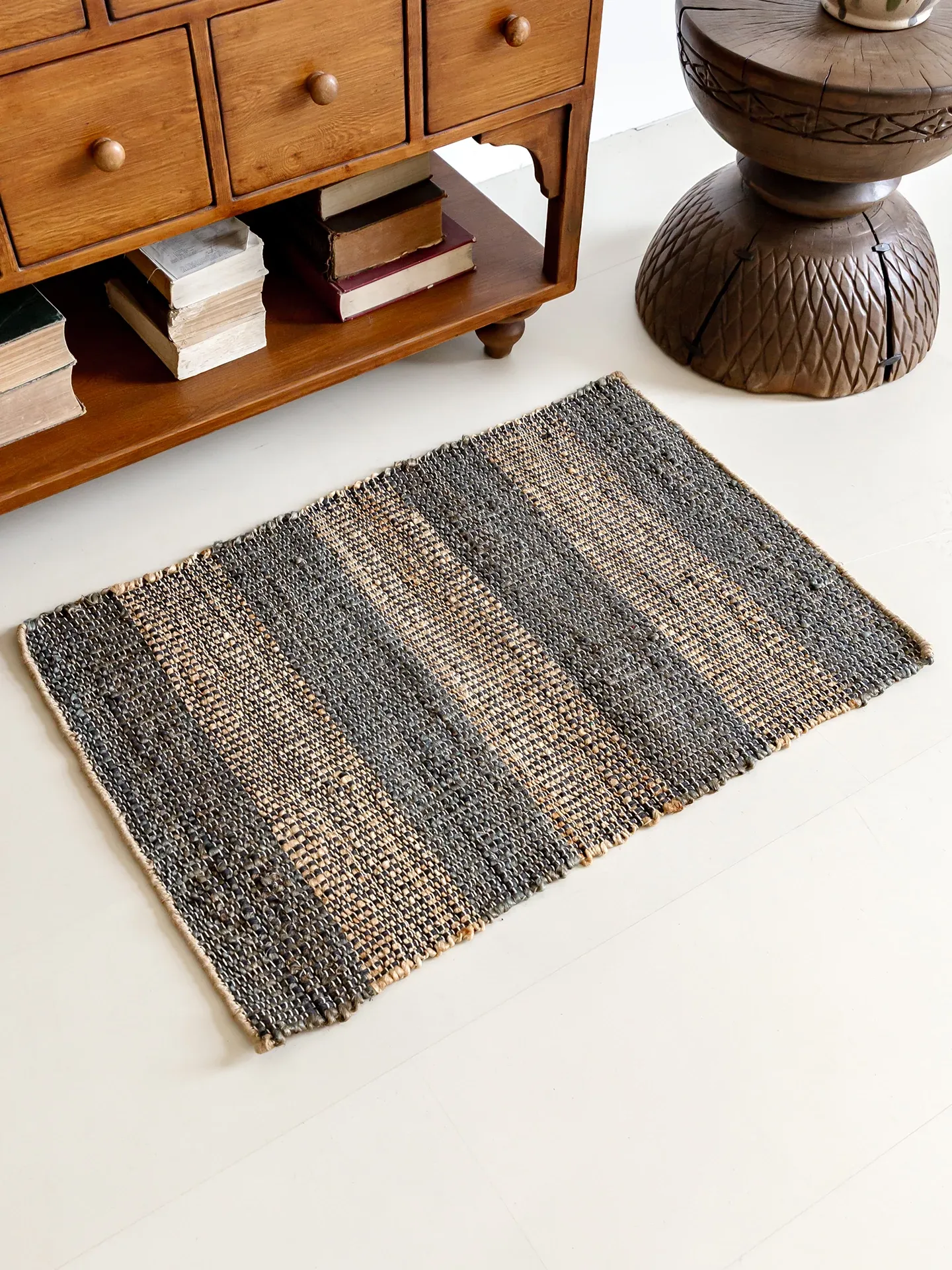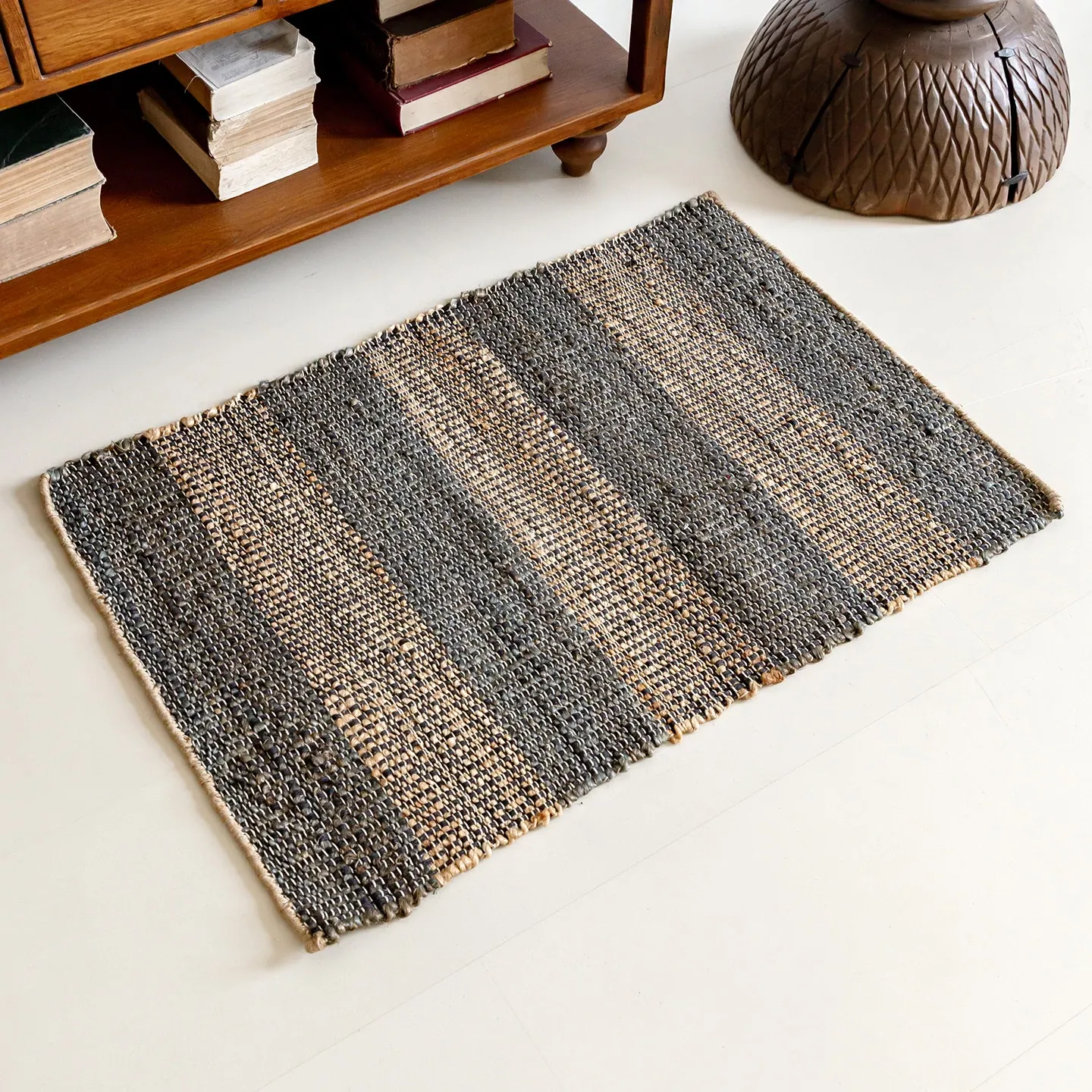 視覚と味覚を楽しむ、インド直輸入の手作りジュートラグ。レトロなデザインで、リビングや玄関に高級感をプラス!