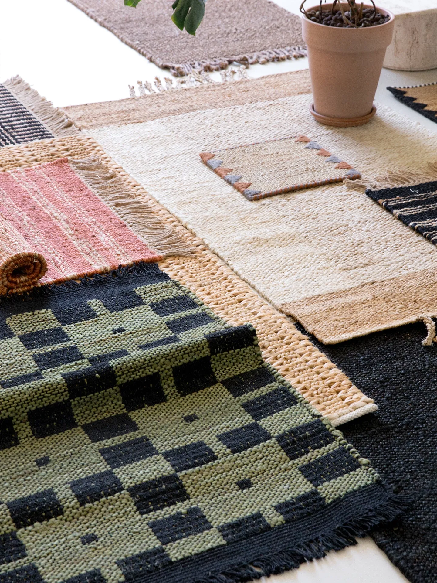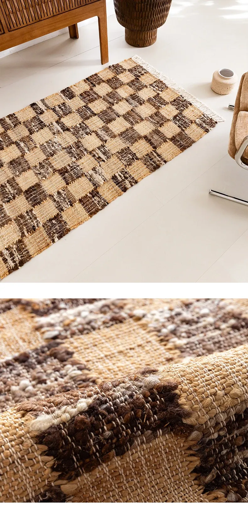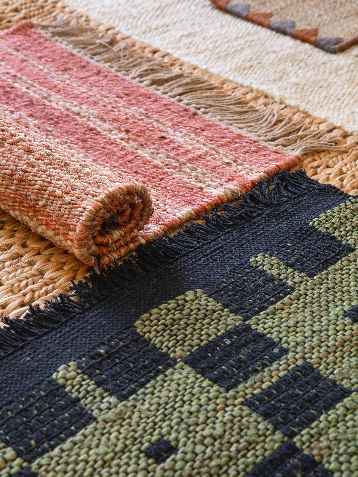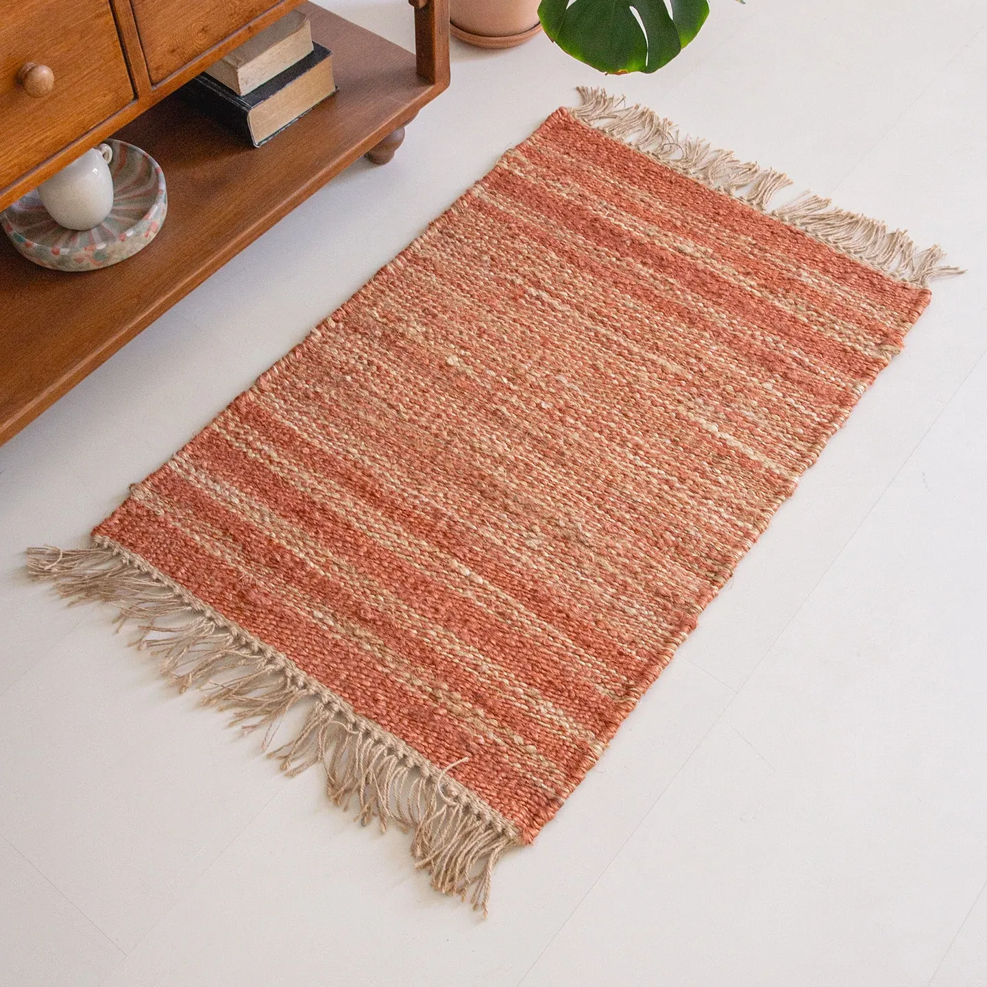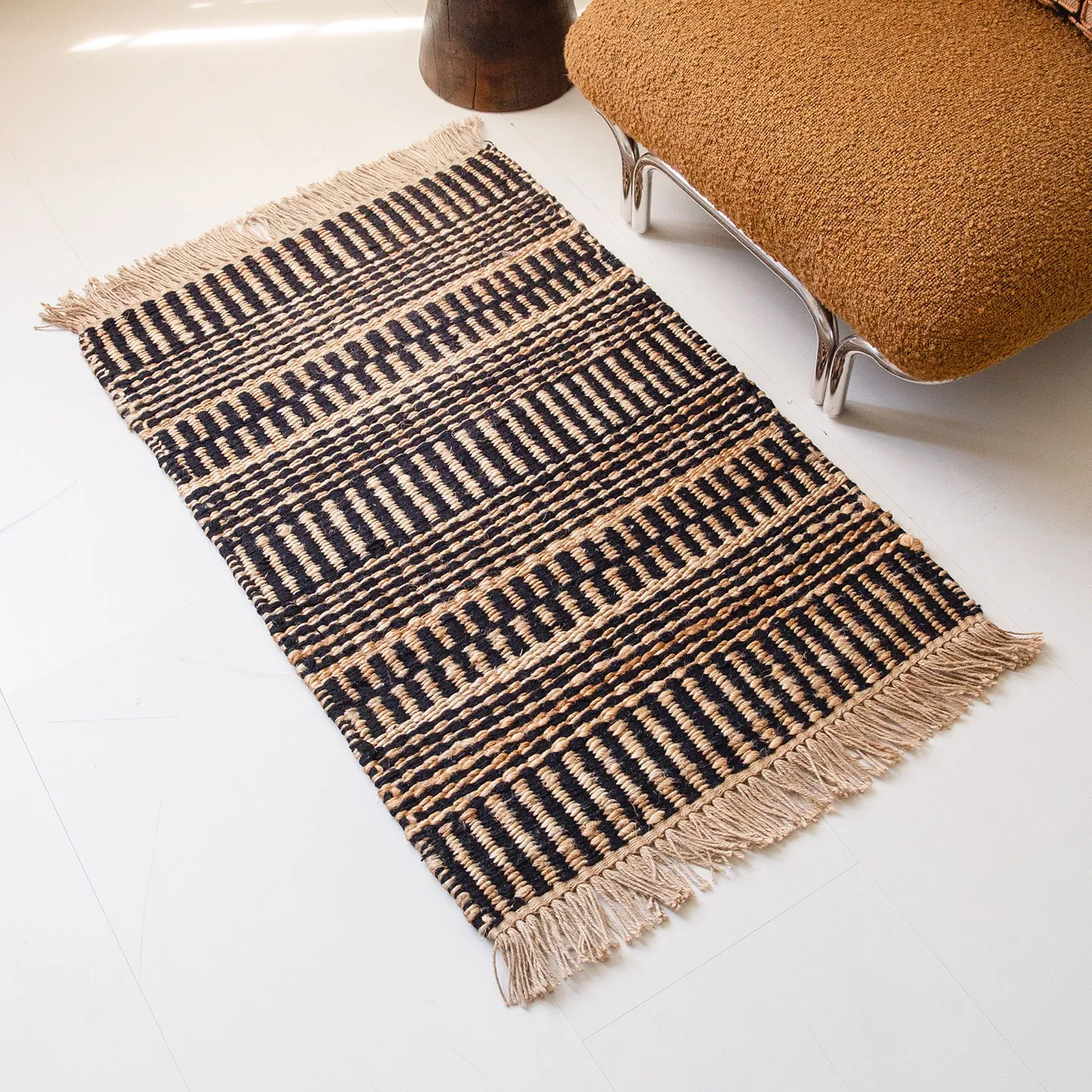 視覚と味覚を楽しむ、インド直輸入の手作りジュートラグ。レトロなデザインで、リビングや玄関に高級感をプラス!