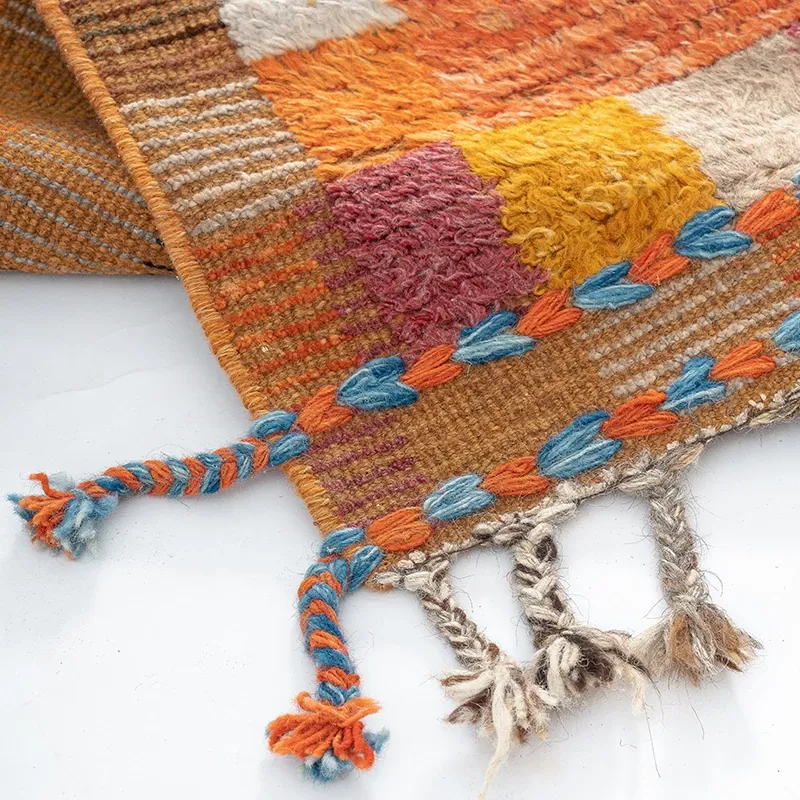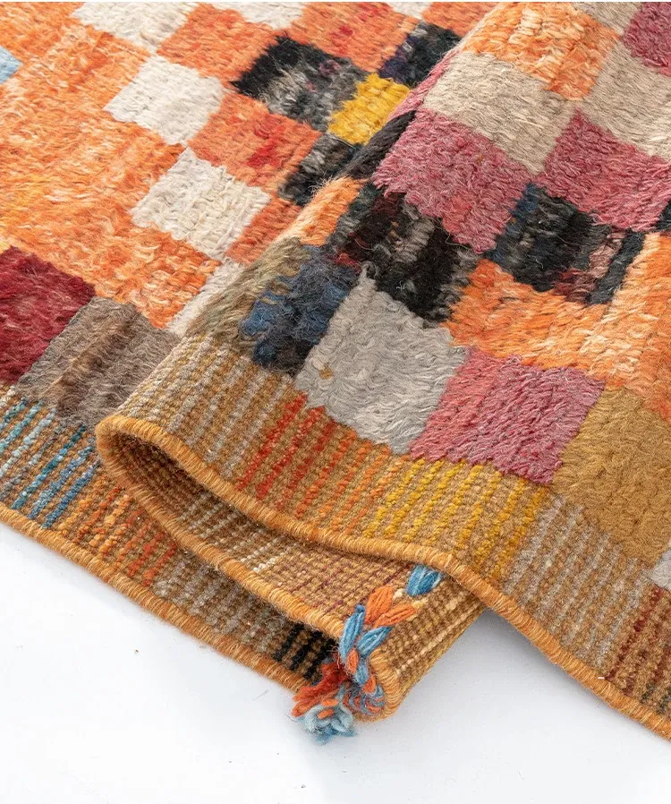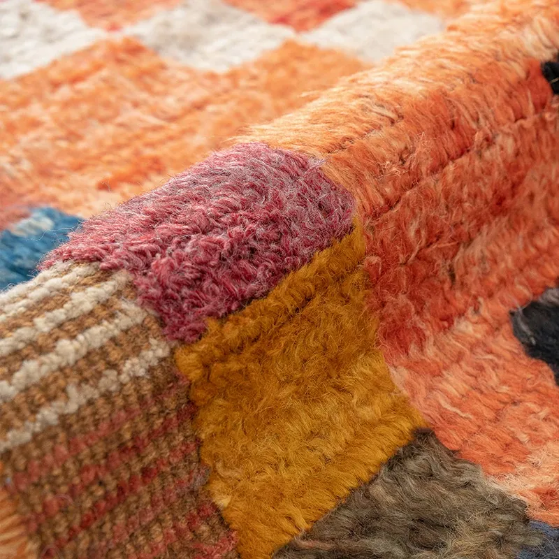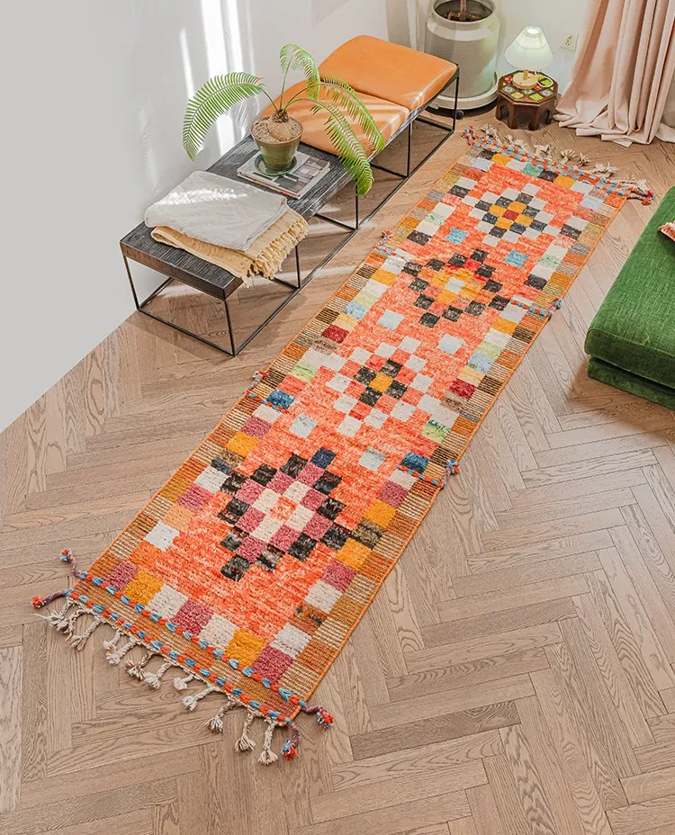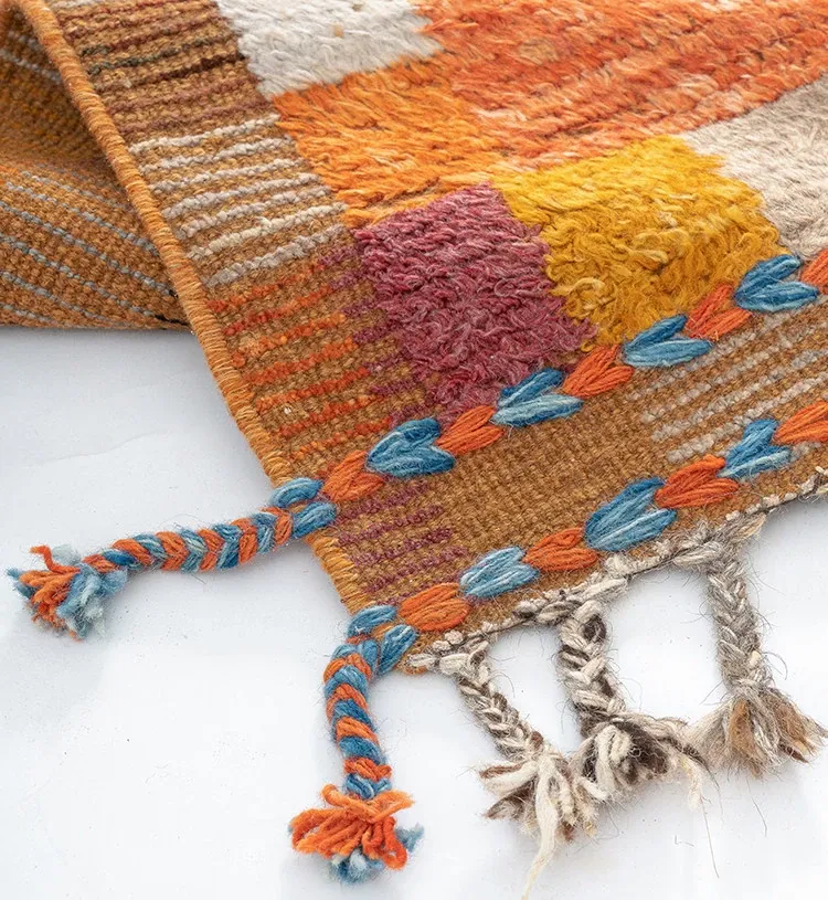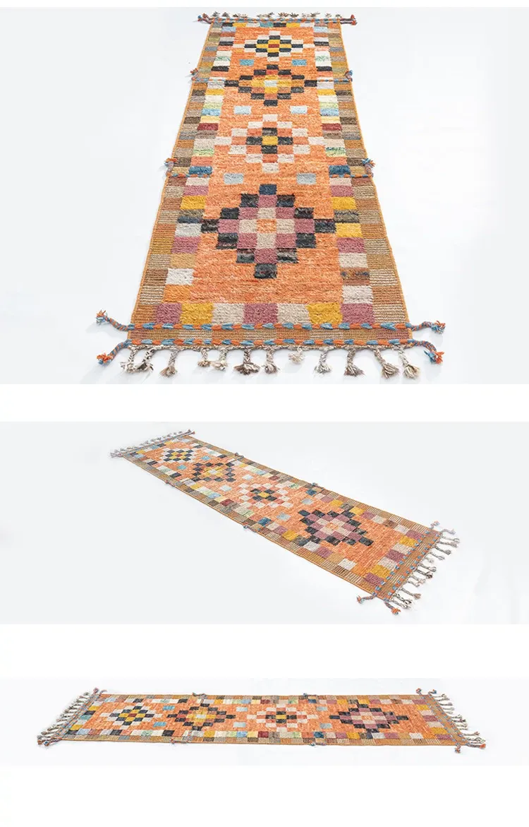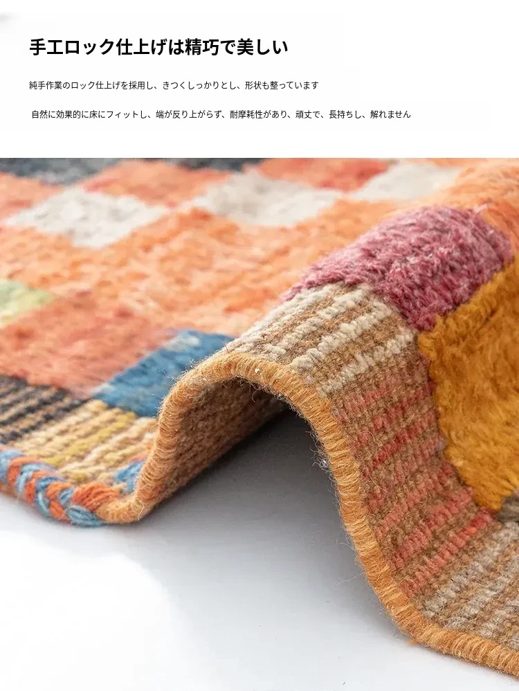 視覚と味覚を楽しむ!無接着剤・フォルムアルデヒド不使用のモロッコカーペット。アフガニスタン産の高品質ウールを使用した手作りのロングマット。寝室にぴったりの贅沢な一品です!