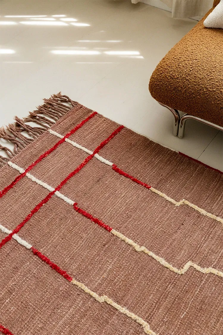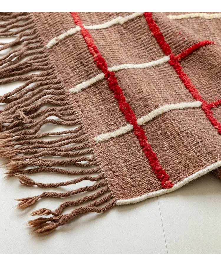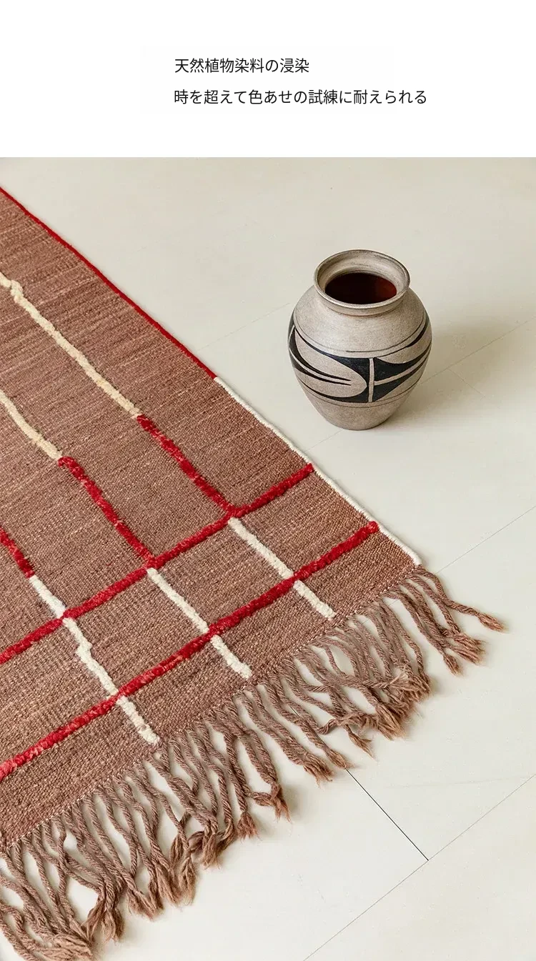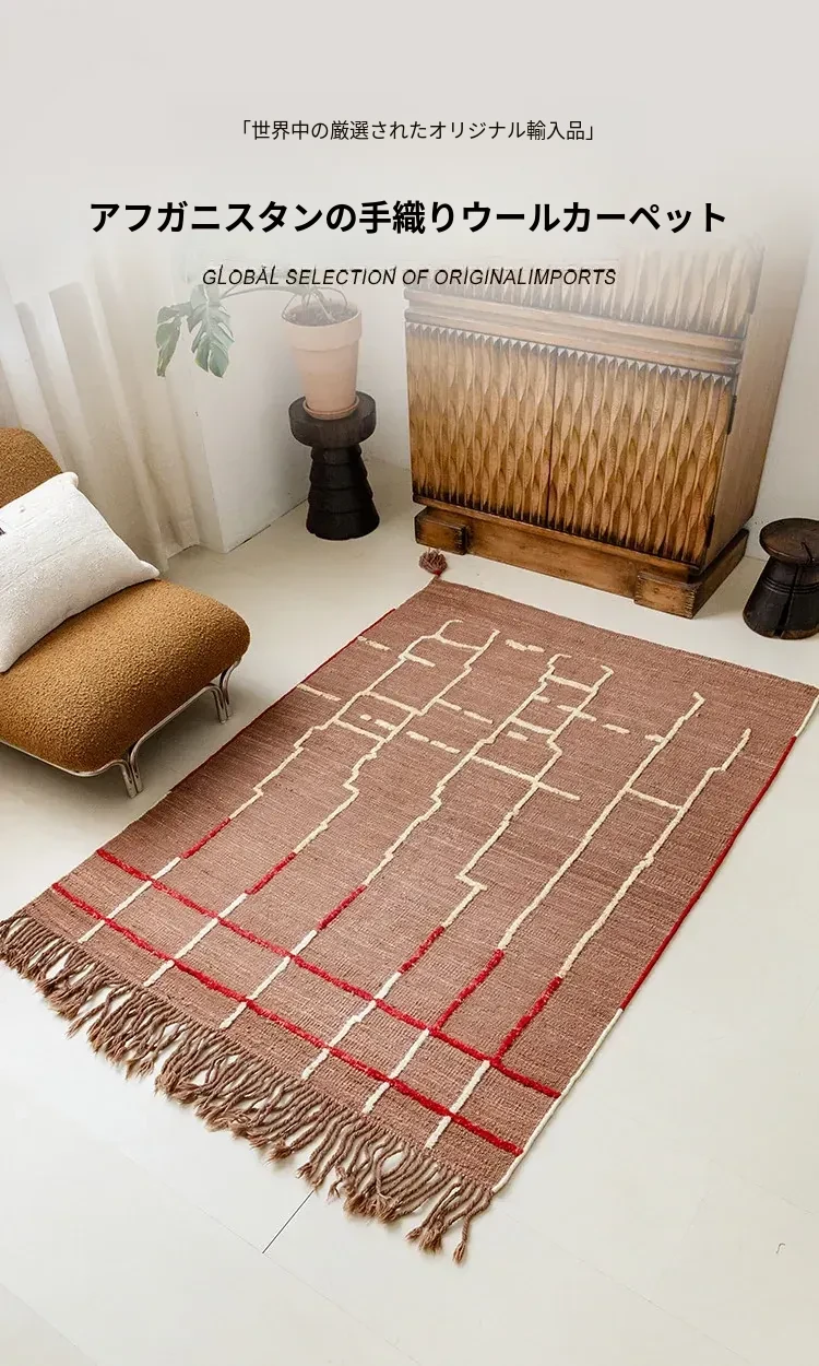 視覚的な美味しさを楽しむアフガニスタン直輸入の手織りウールカーペット - オリジナルデザインのモダンなリビングにぴったりの侘寂スタイル!