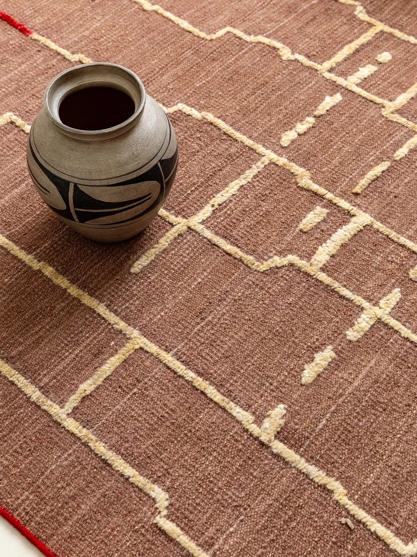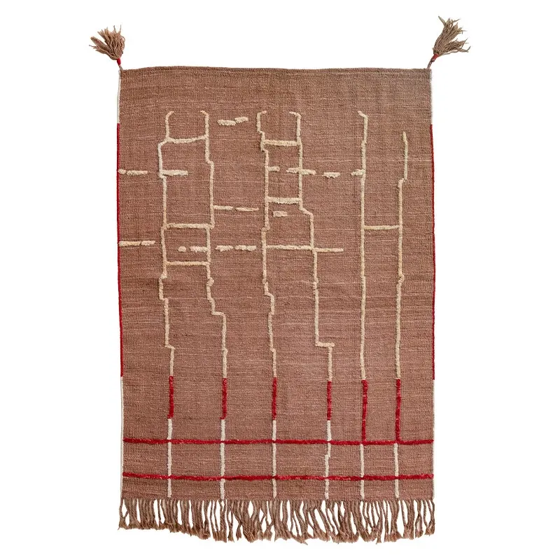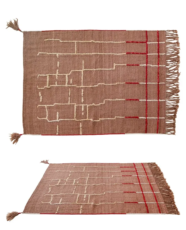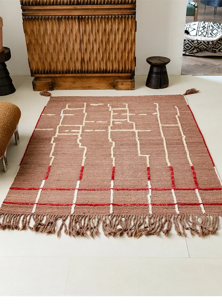視覚的な美味しさを楽しむアフガニスタン直輸入の手織りウールカーペット - オリジナルデザインのモダンなリビングにぴったりの侘寂スタイル!