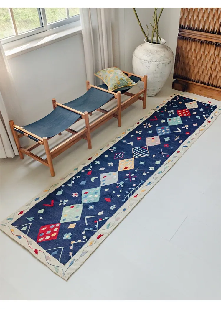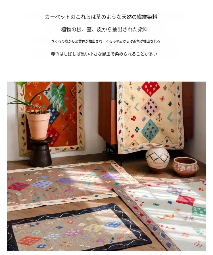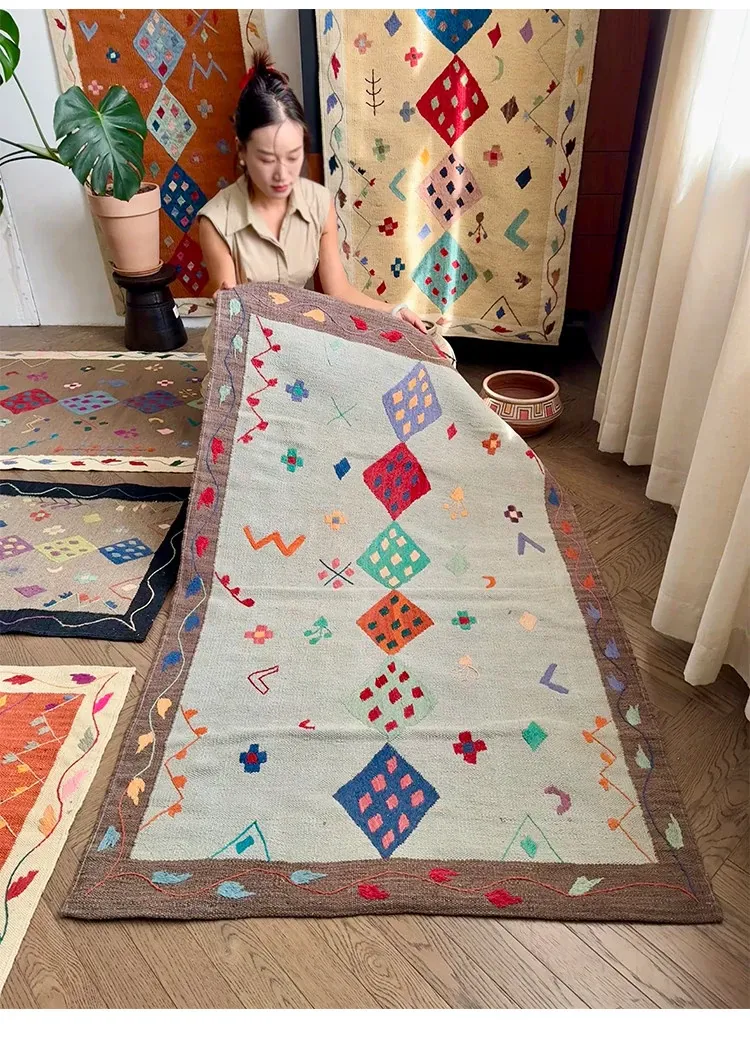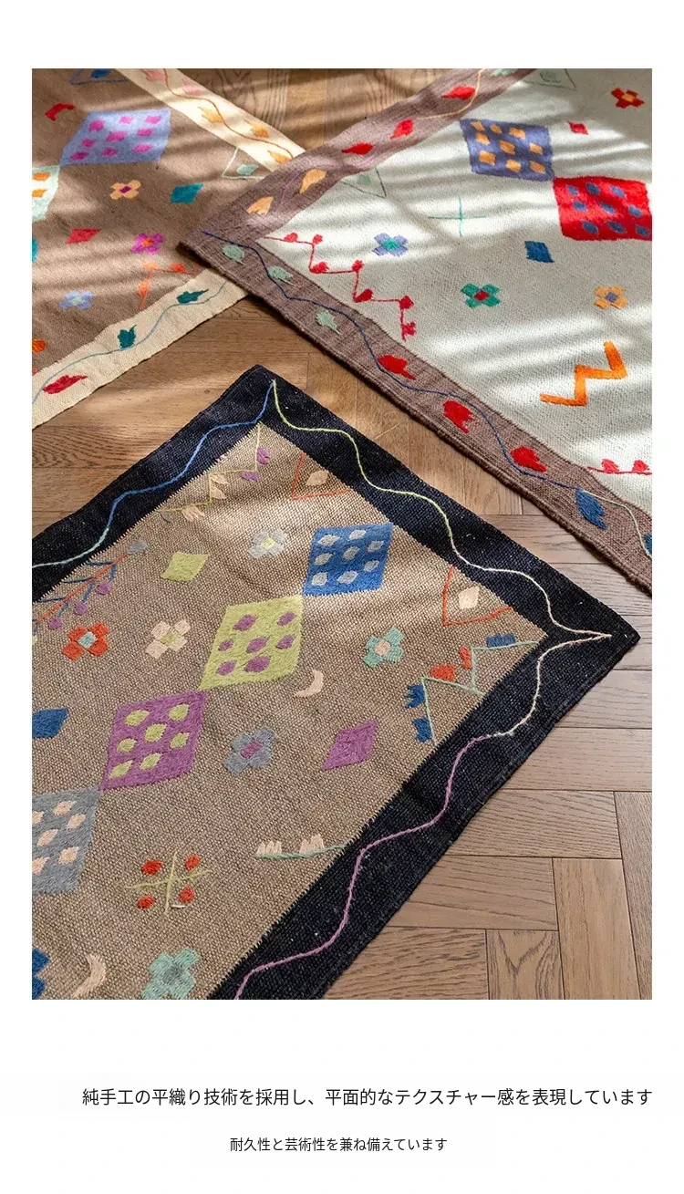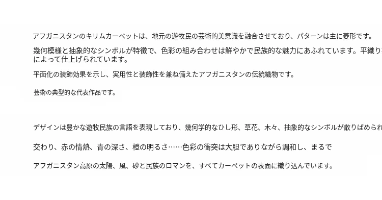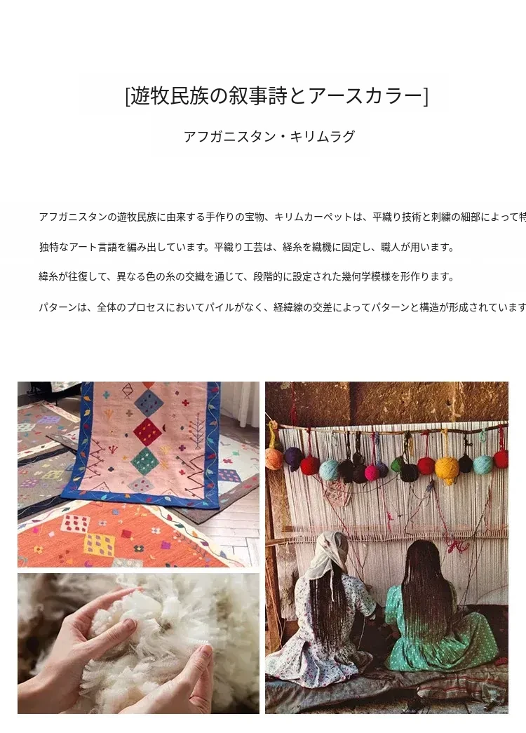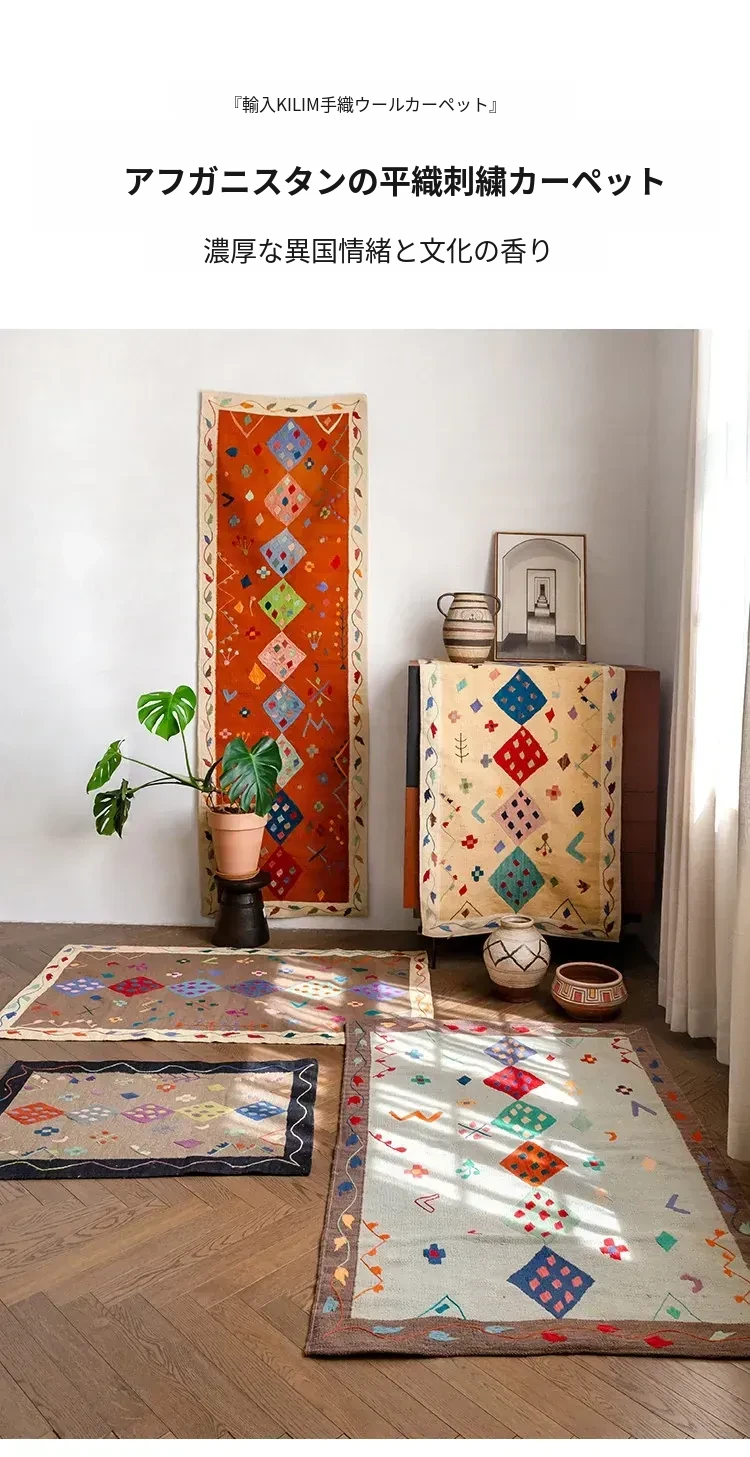 視覚と味覚を楽しむ アフガニスタン直輸入 手作りウールキリムカーペット ボヘミアンスタイル リビングルーム用ロングタペストリー