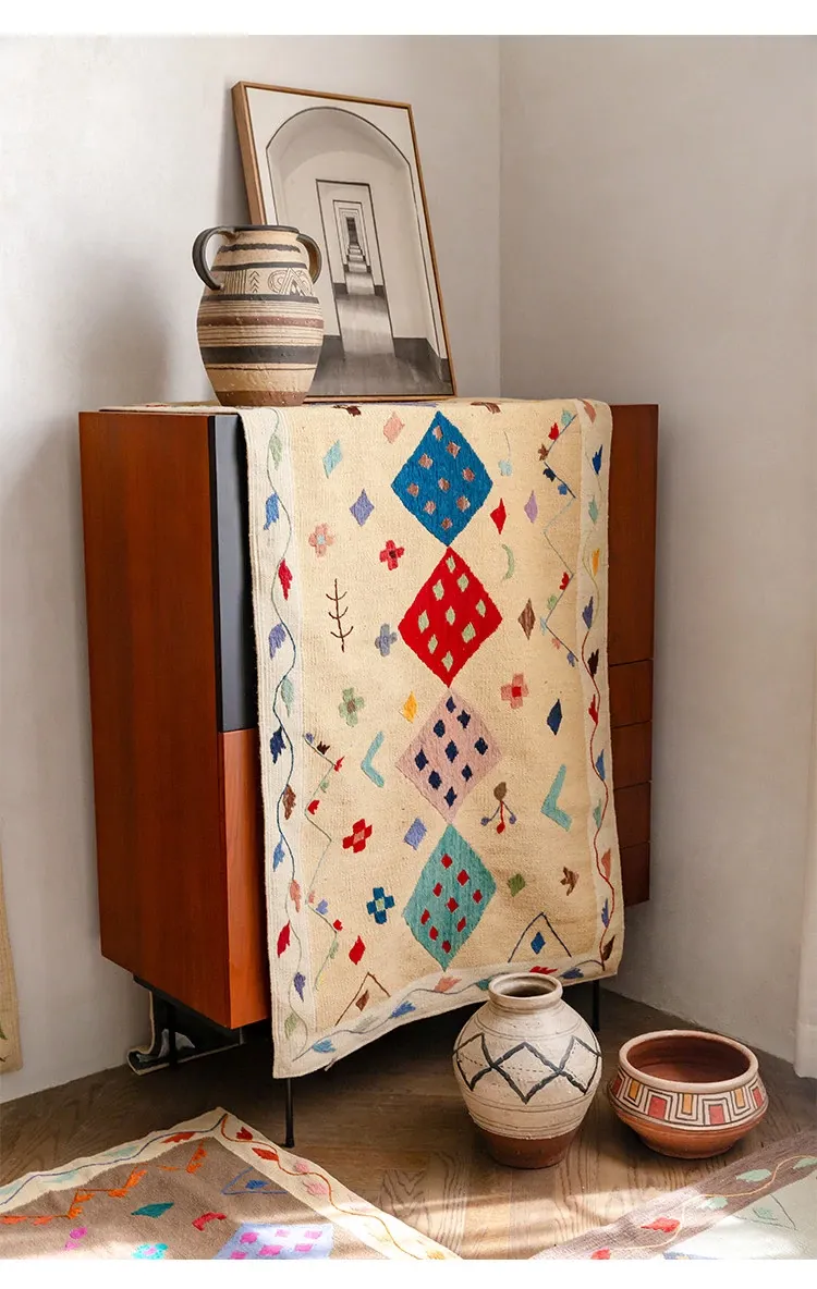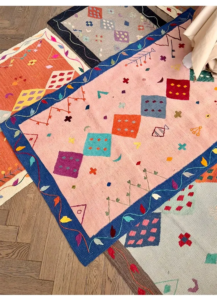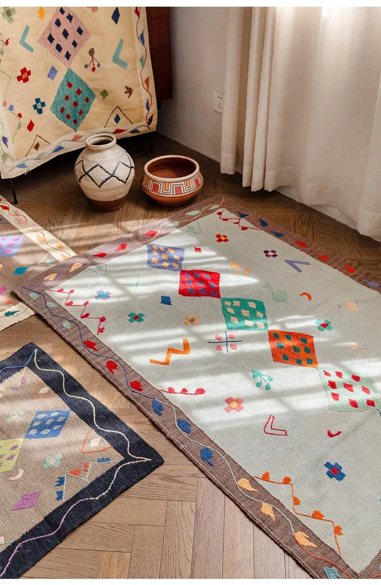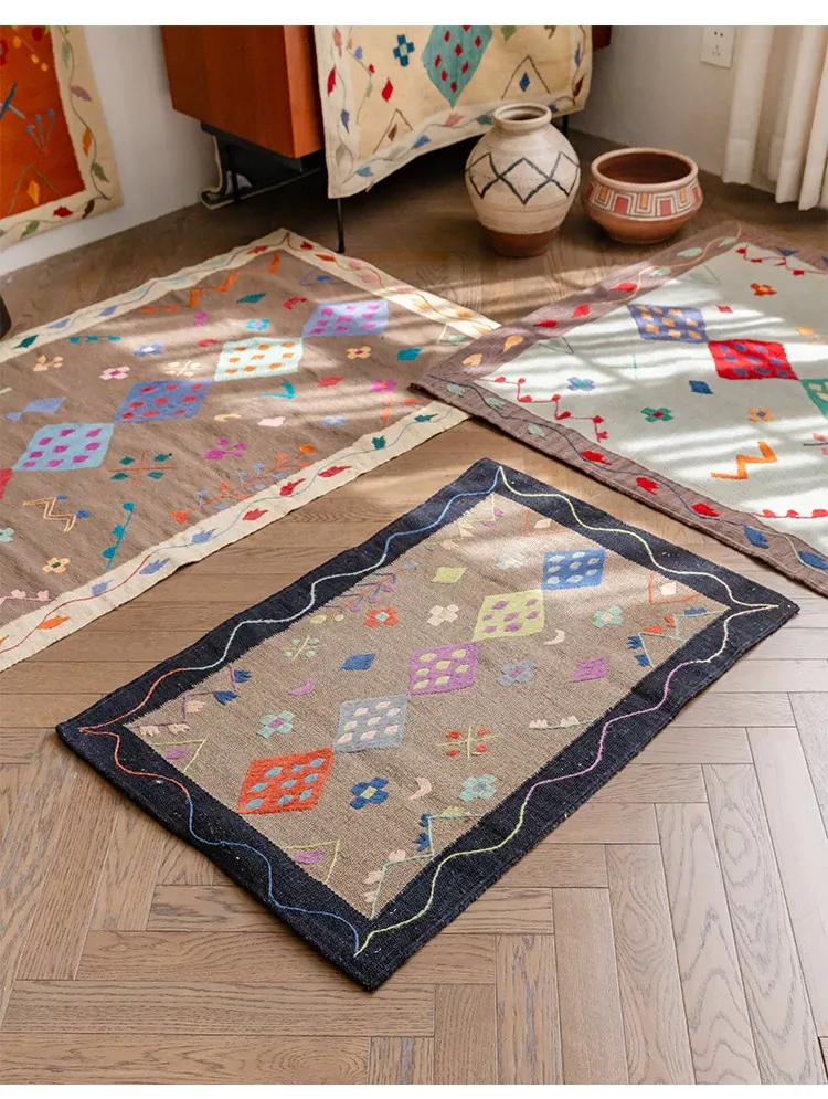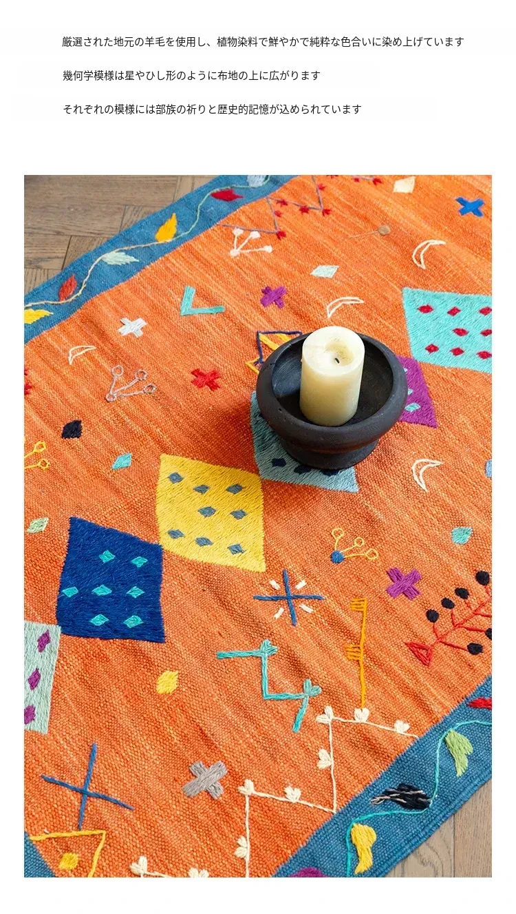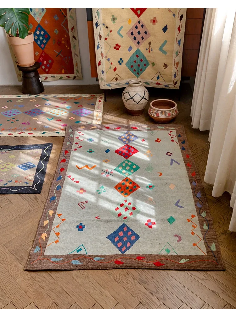 視覚と味覚を楽しむ アフガニスタン直輸入 手作りウールキリムカーペット ボヘミアンスタイル リビングルーム用ロングタペストリー