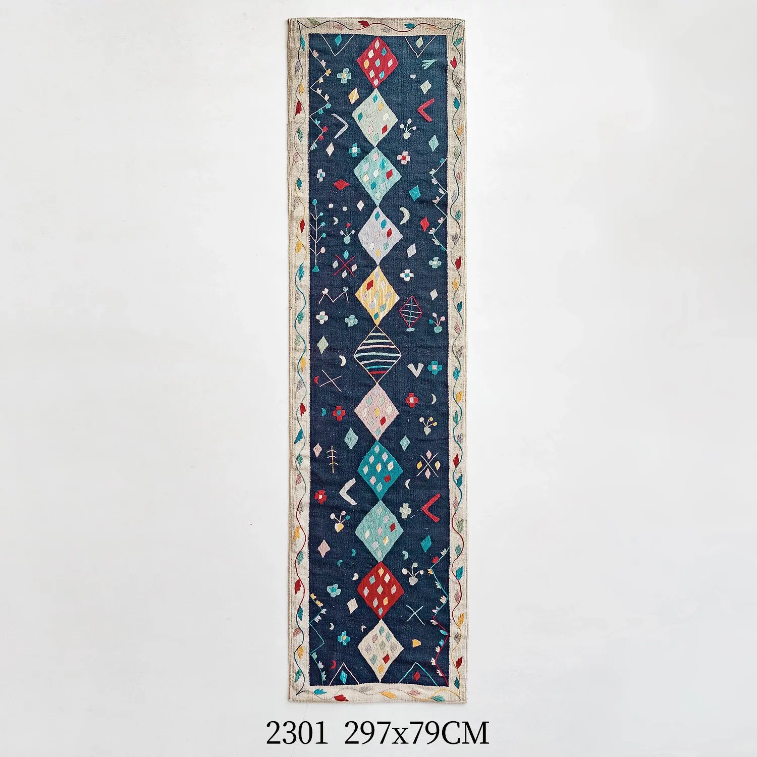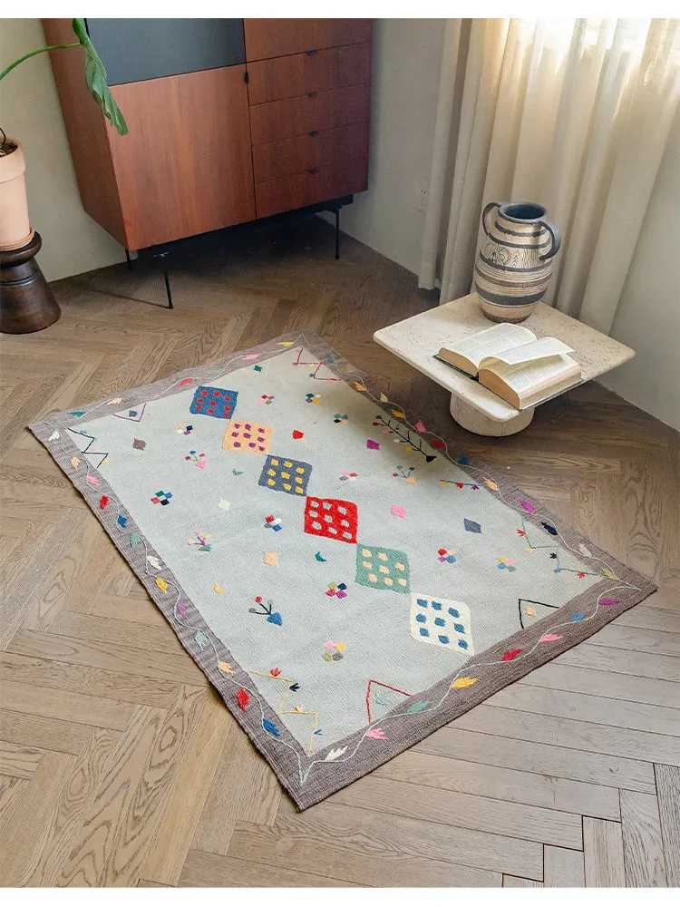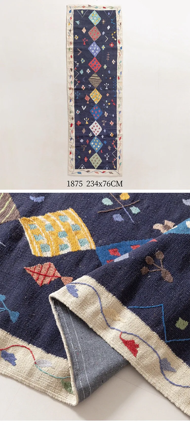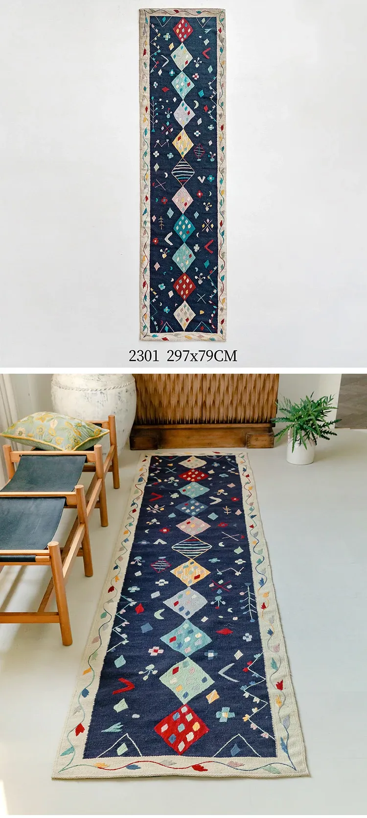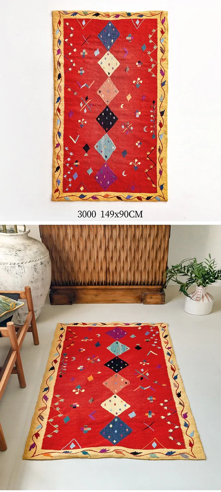 視覚と味覚を楽しむ アフガニスタン直輸入 手作りウールキリムカーペット ボヘミアンスタイル リビングルーム用ロングタペストリー