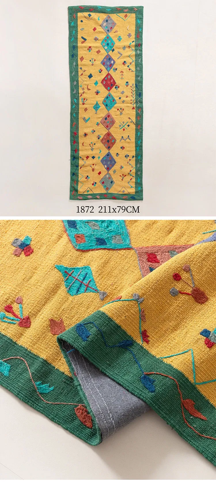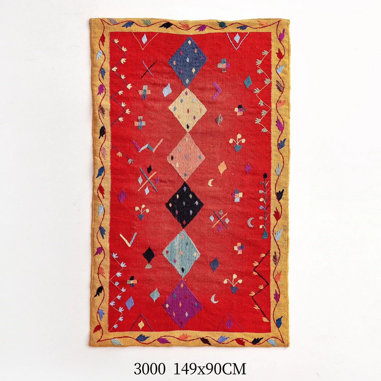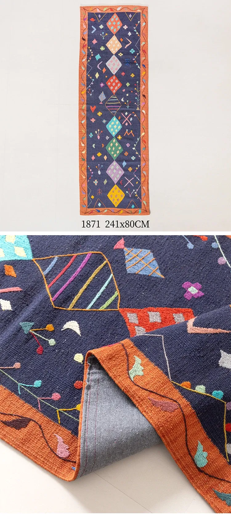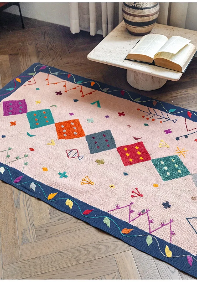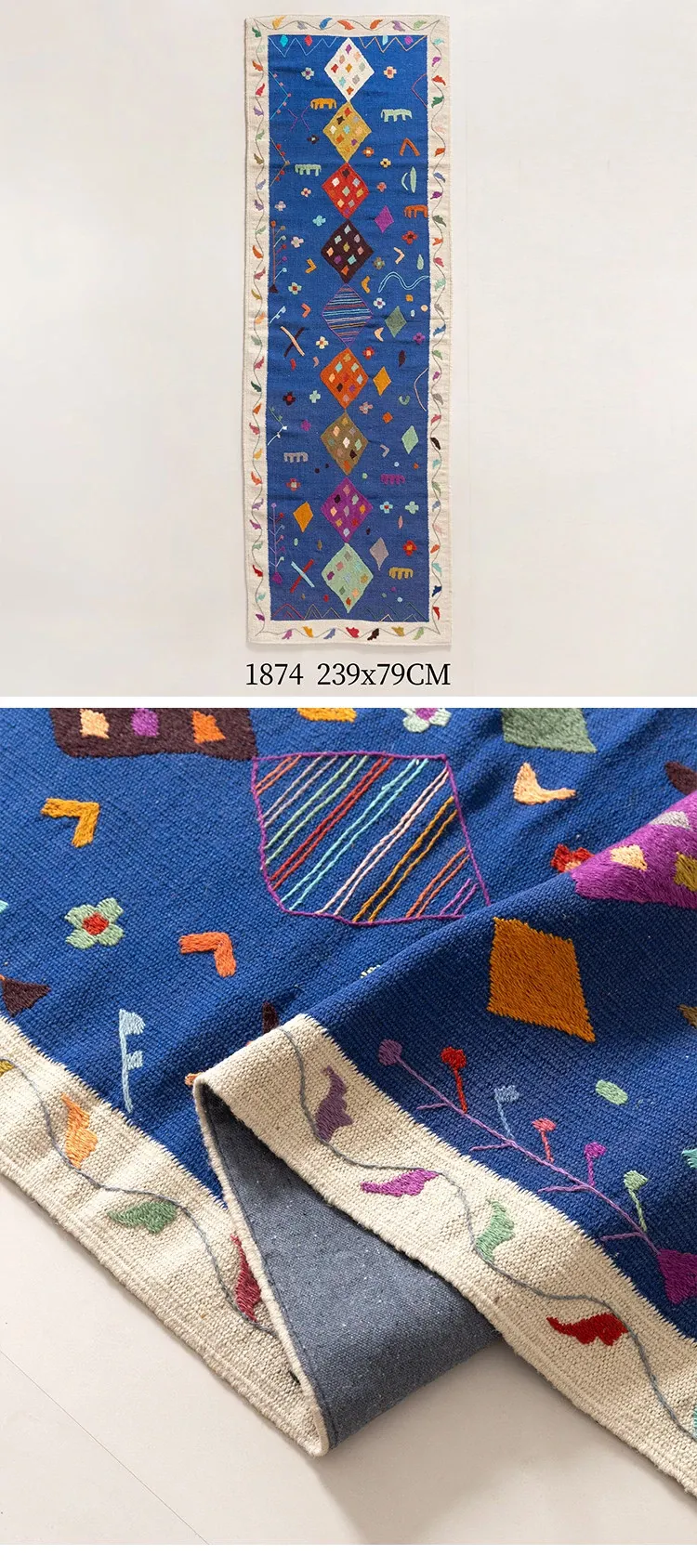 視覚と味覚を楽しむ アフガニスタン直輸入 手作りウールキリムカーペット ボヘミアンスタイル リビングルーム用ロングタペストリー