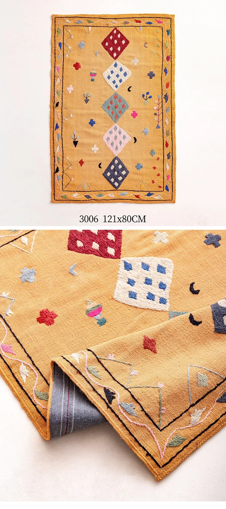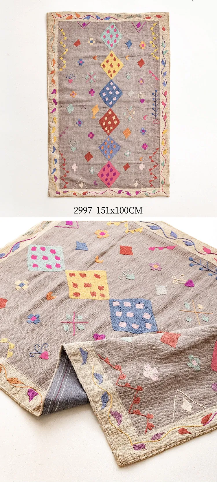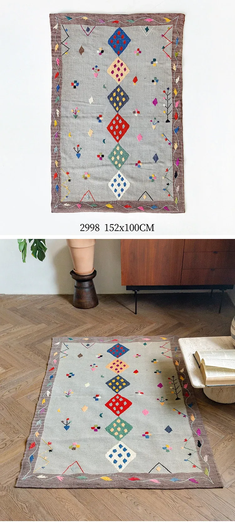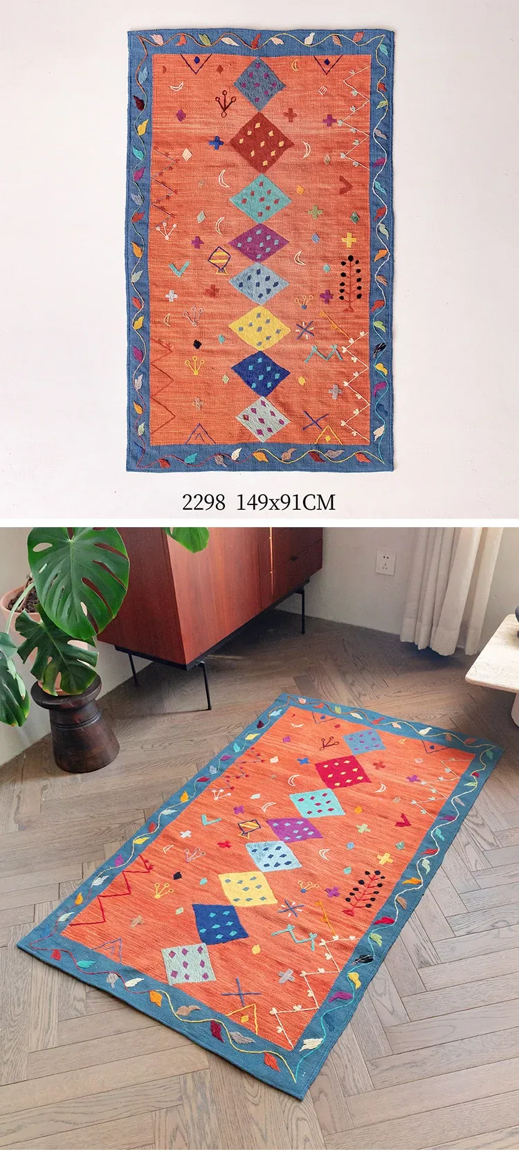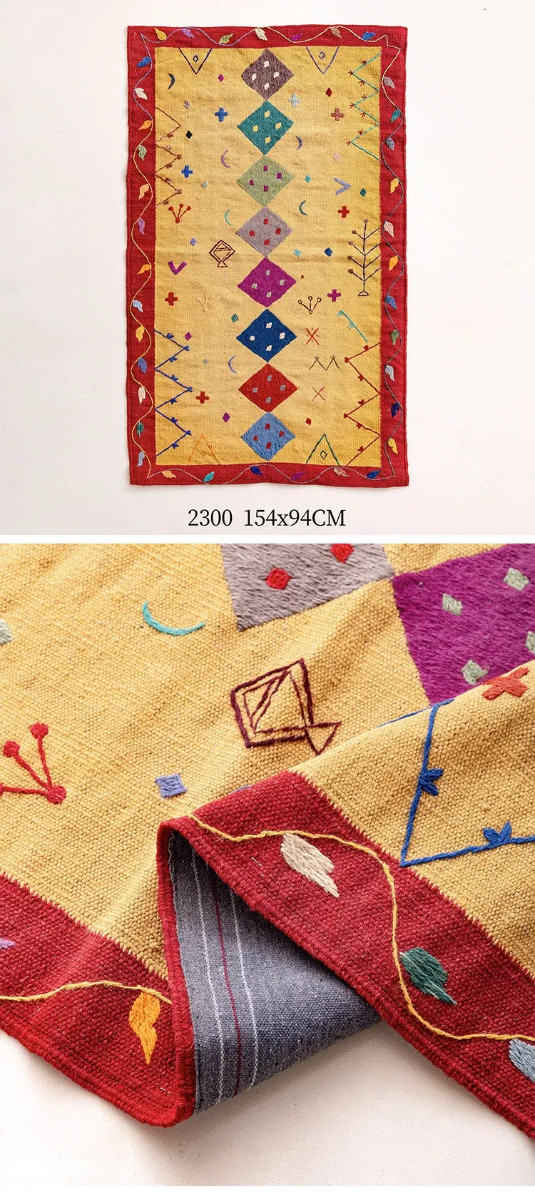 視覚と味覚を楽しむ アフガニスタン直輸入 手作りウールキリムカーペット ボヘミアンスタイル リビングルーム用ロングタペストリー