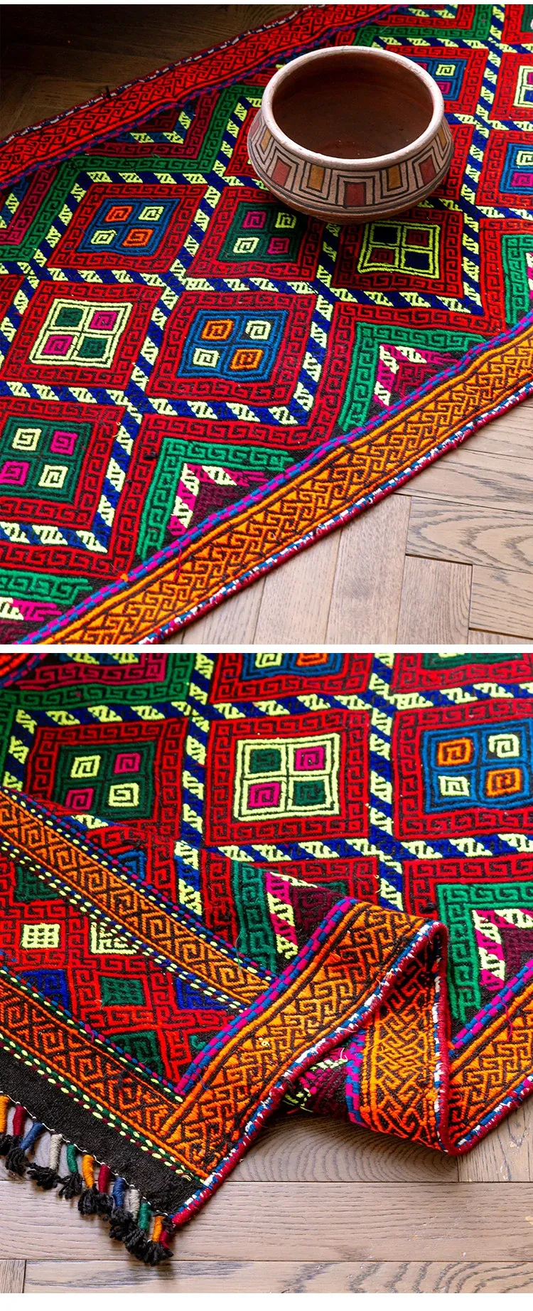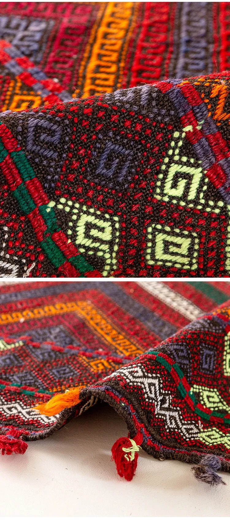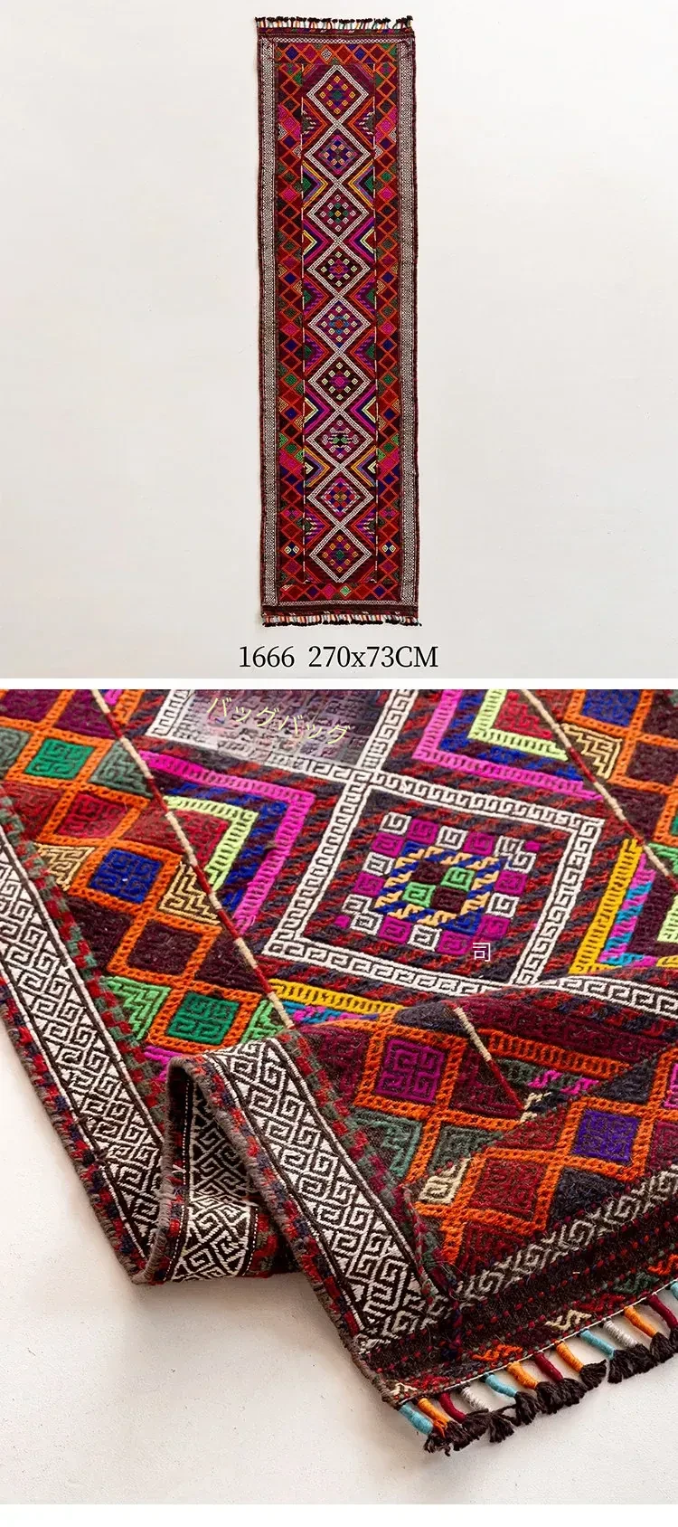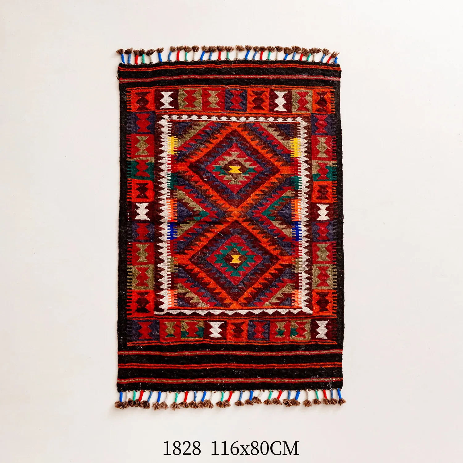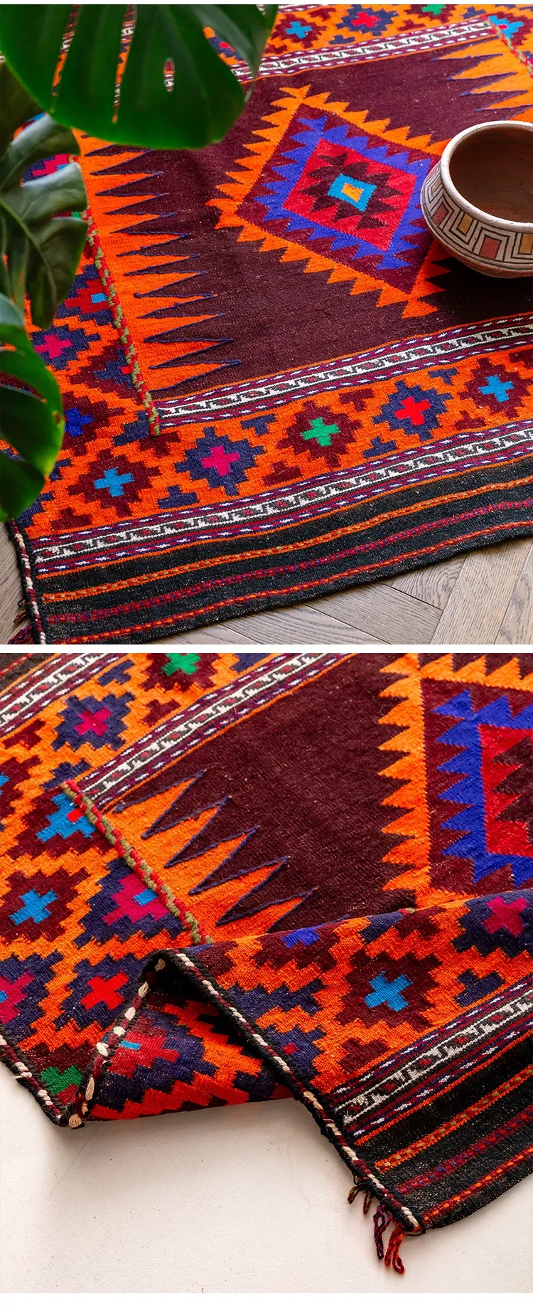 視覚的な美味しさ!アフガニスタン直輸入の手織りウール赤色キリム、ボヘミアンスタイルのリビングルームと廊下にぴったりのラグ!おしゃれで温かみのある空間を演出します。