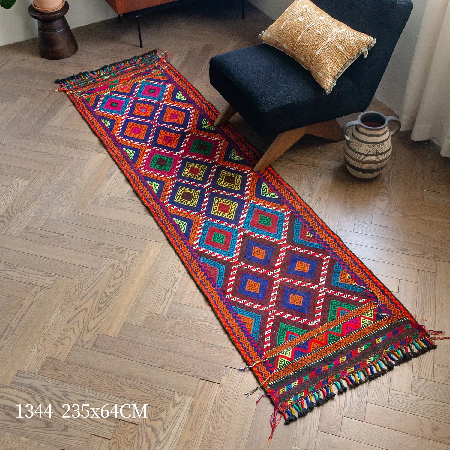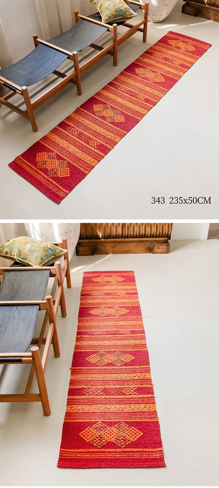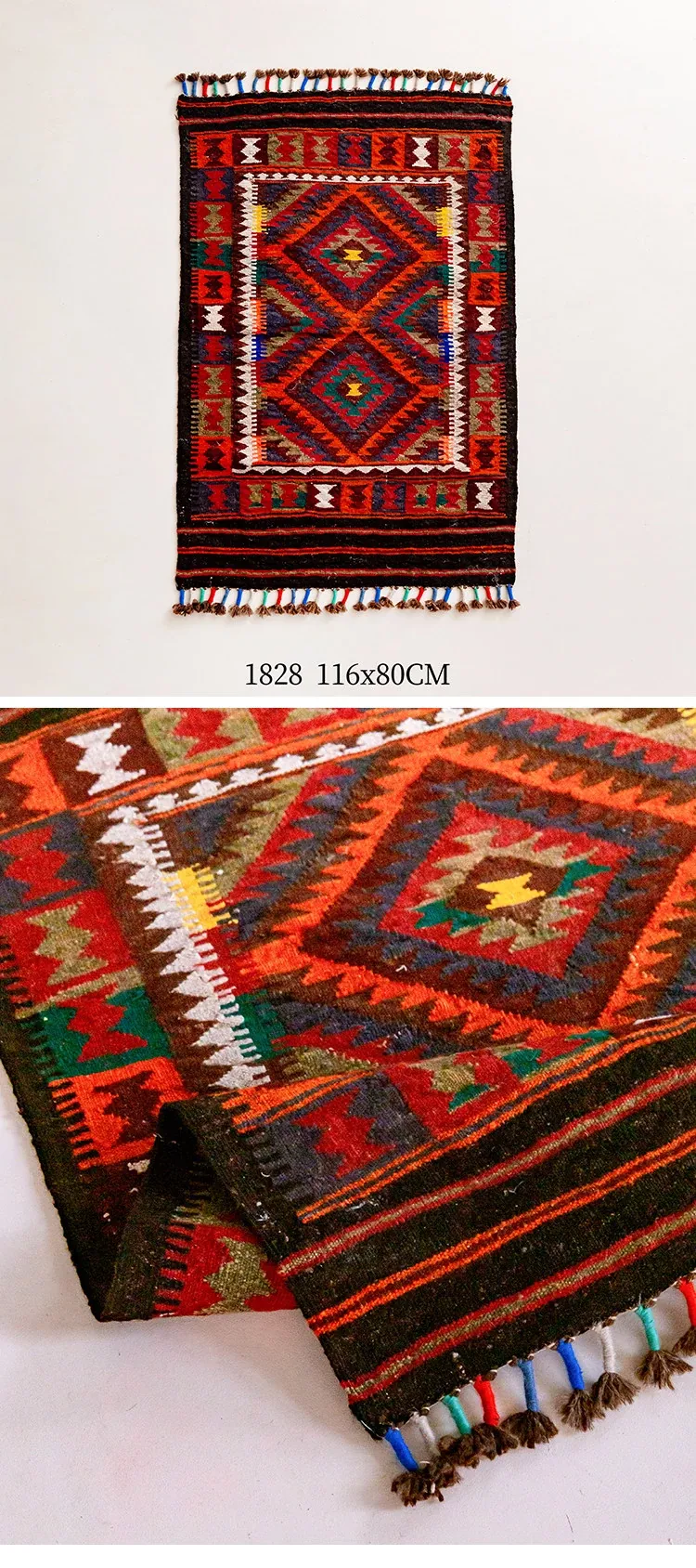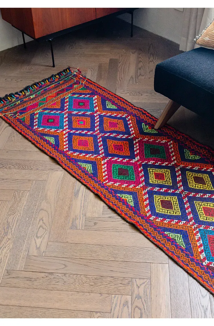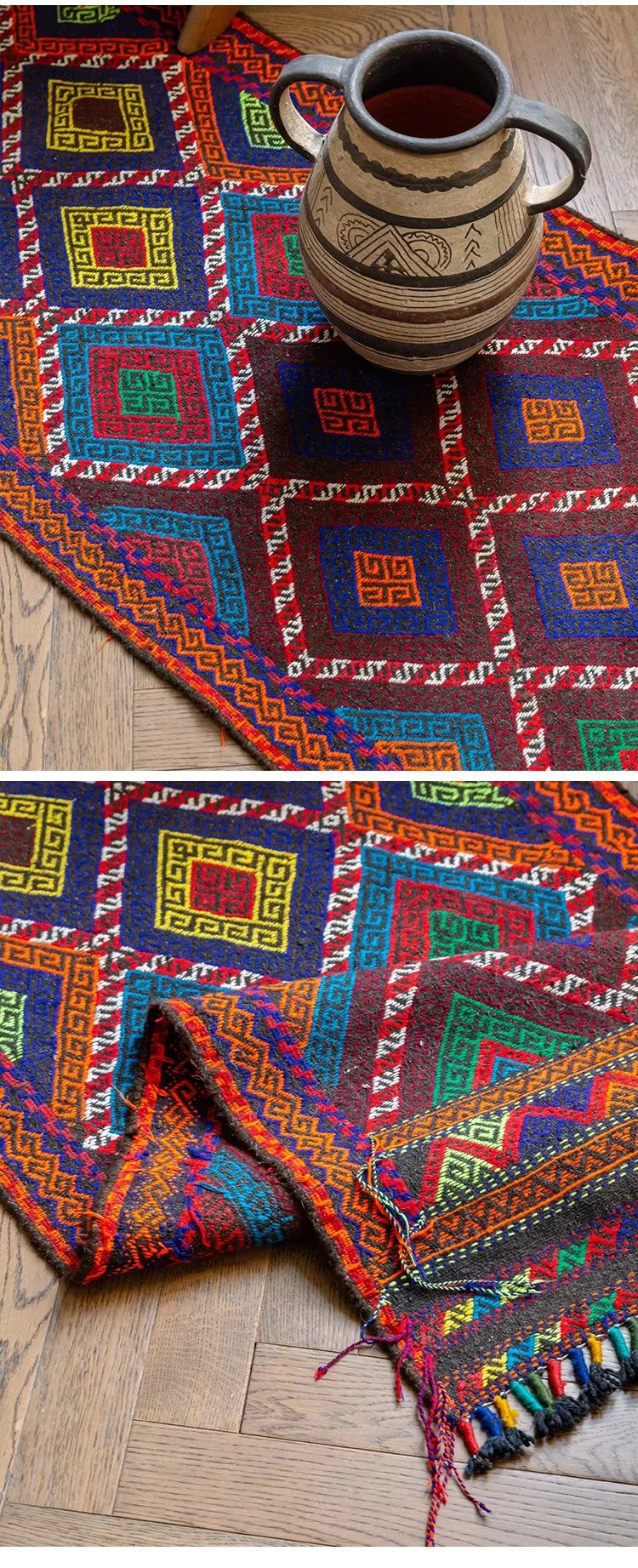 視覚的な美味しさ!アフガニスタン直輸入の手織りウール赤色キリム、ボヘミアンスタイルのリビングルームと廊下にぴったりのラグ!おしゃれで温かみのある空間を演出します。