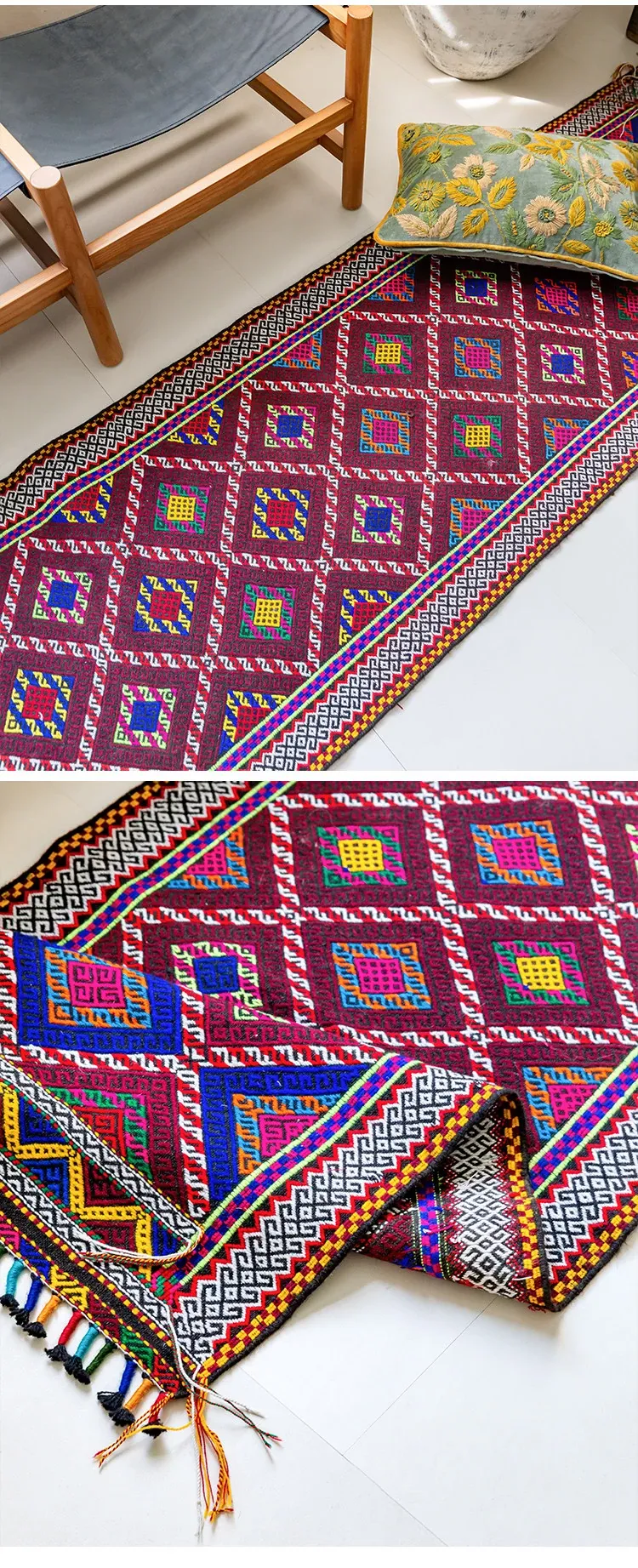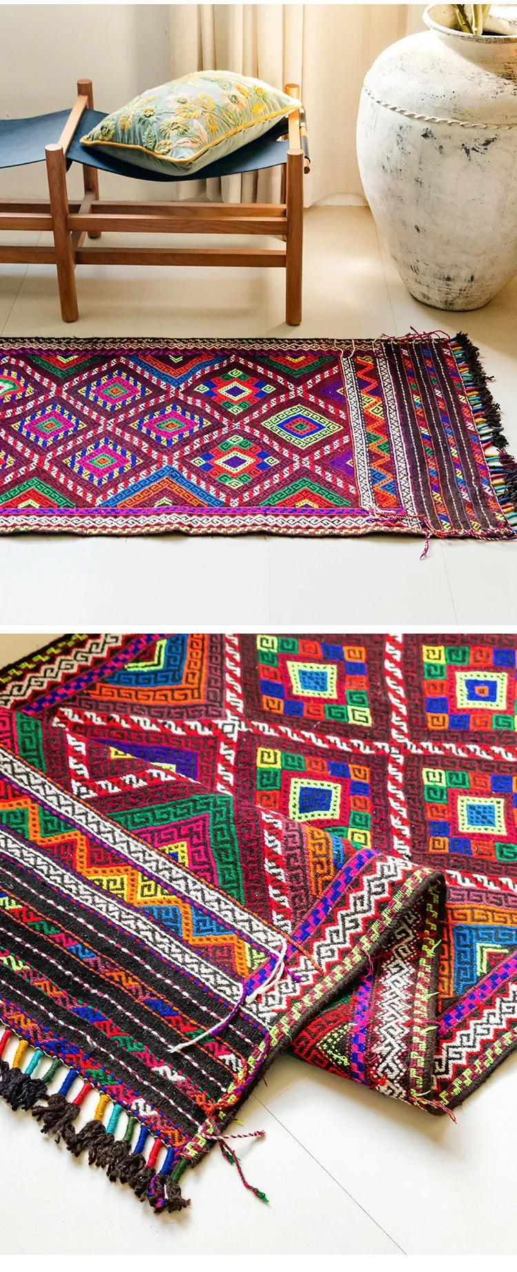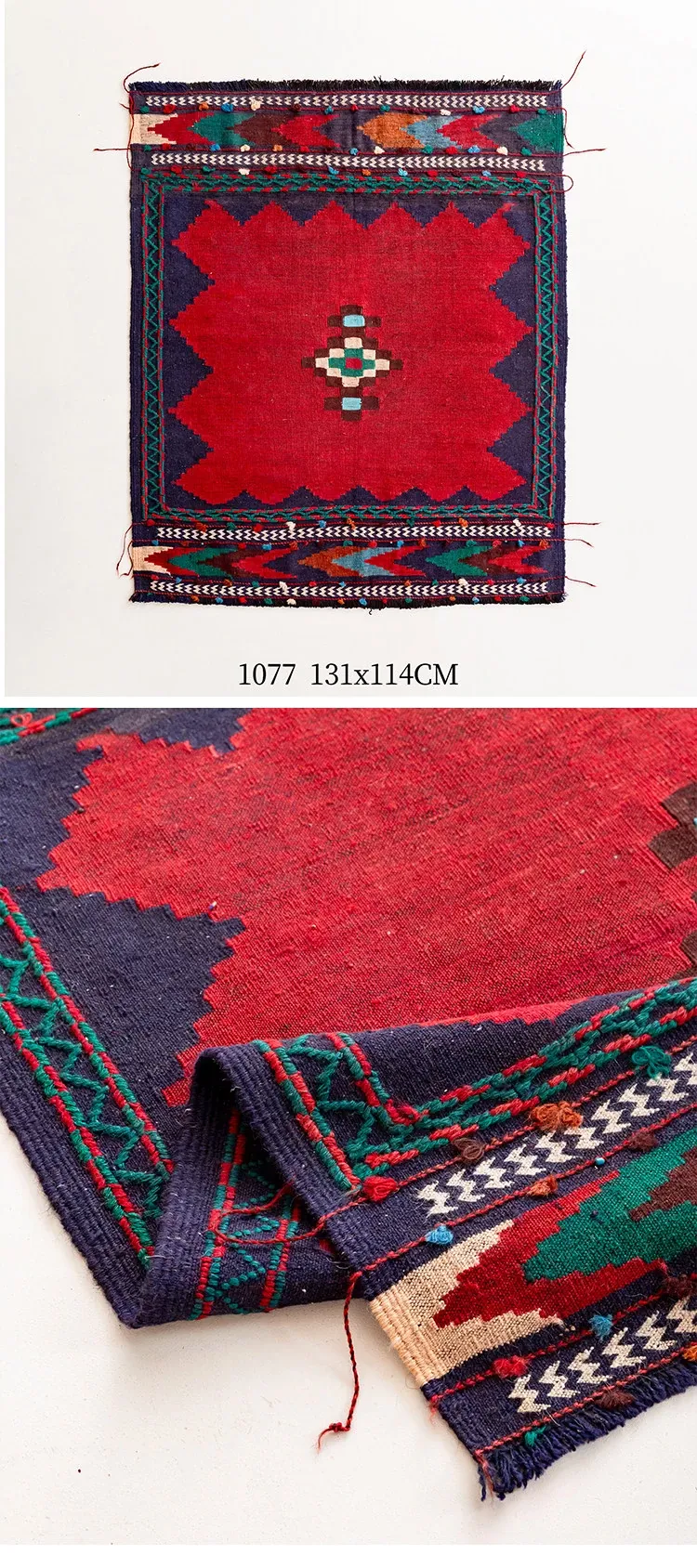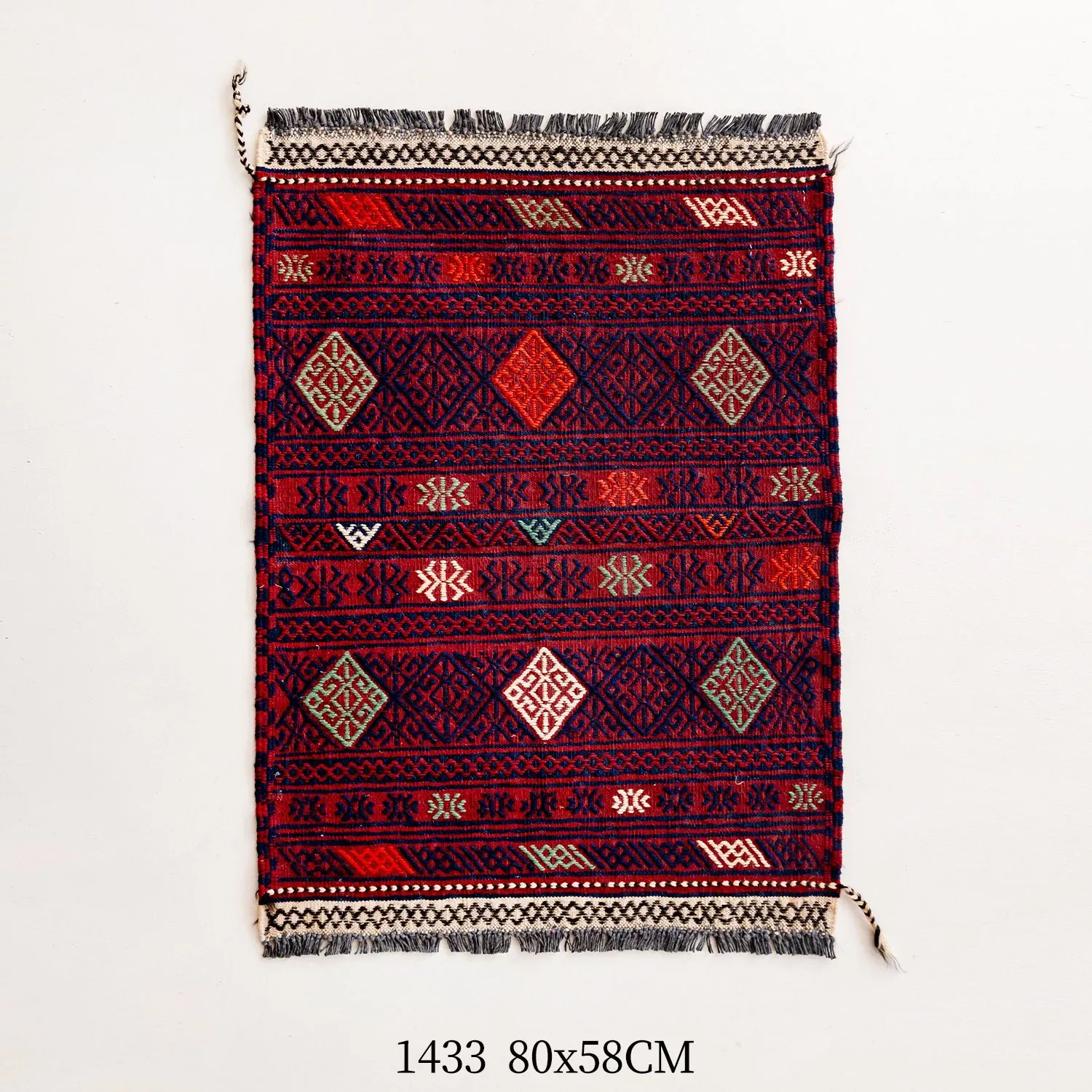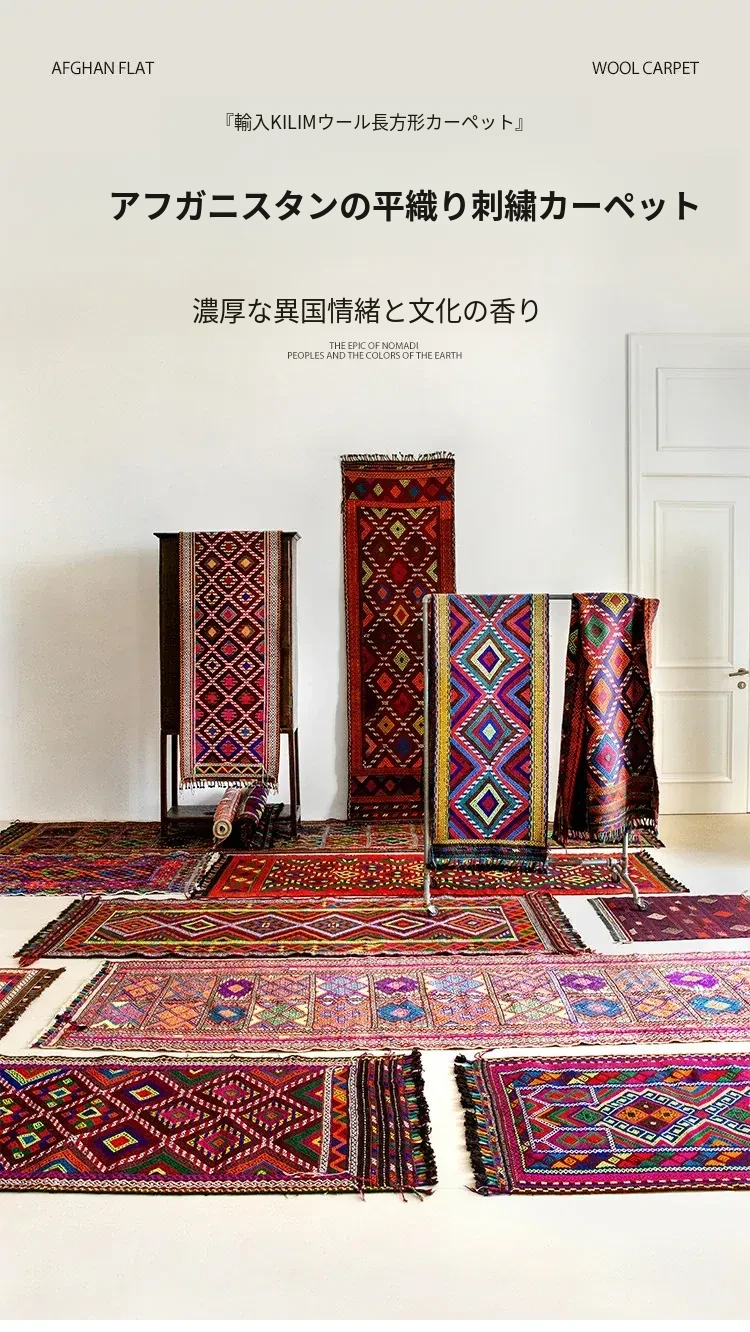 視覚的な美味しさ!アフガニスタン直輸入の手織りウール赤色キリム、ボヘミアンスタイルのリビングルームと廊下にぴったりのラグ!おしゃれで温かみのある空間を演出します。