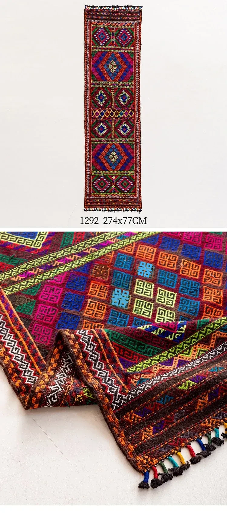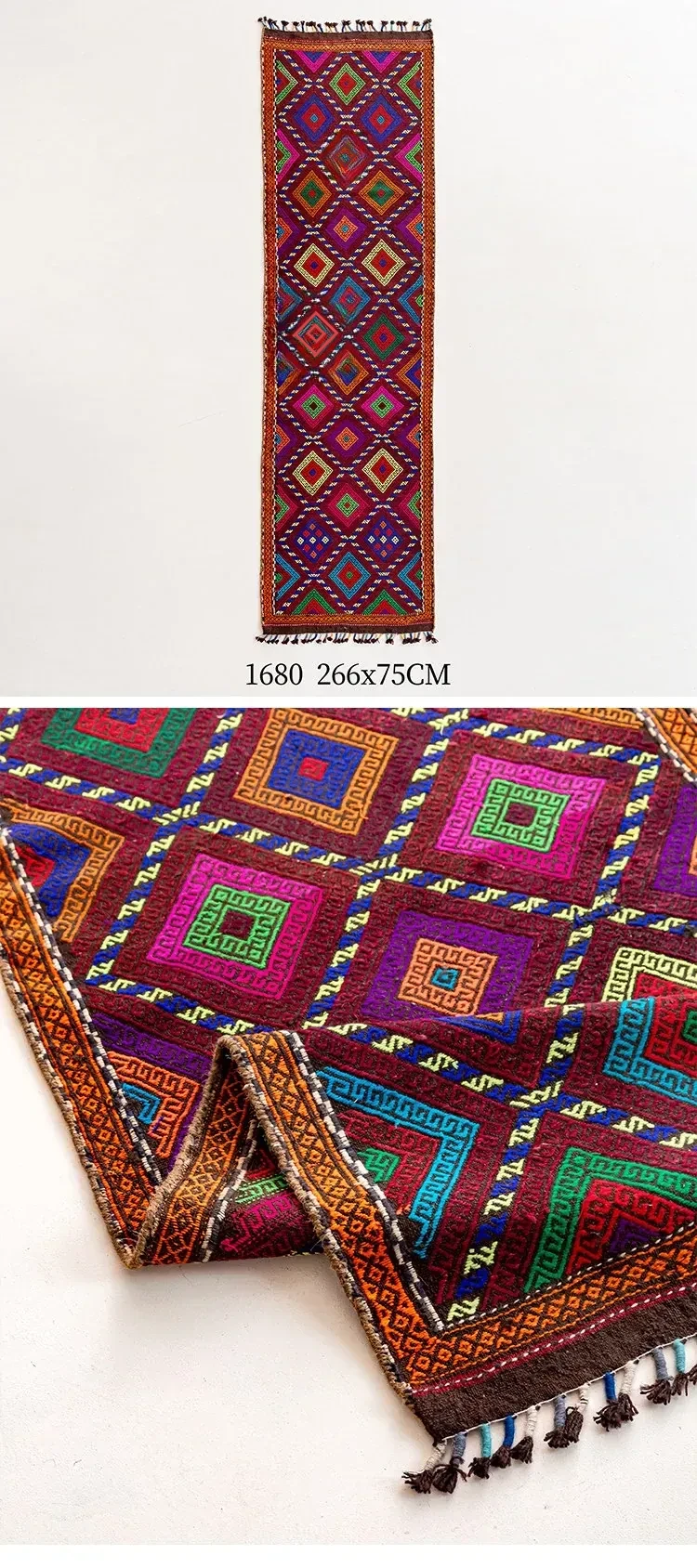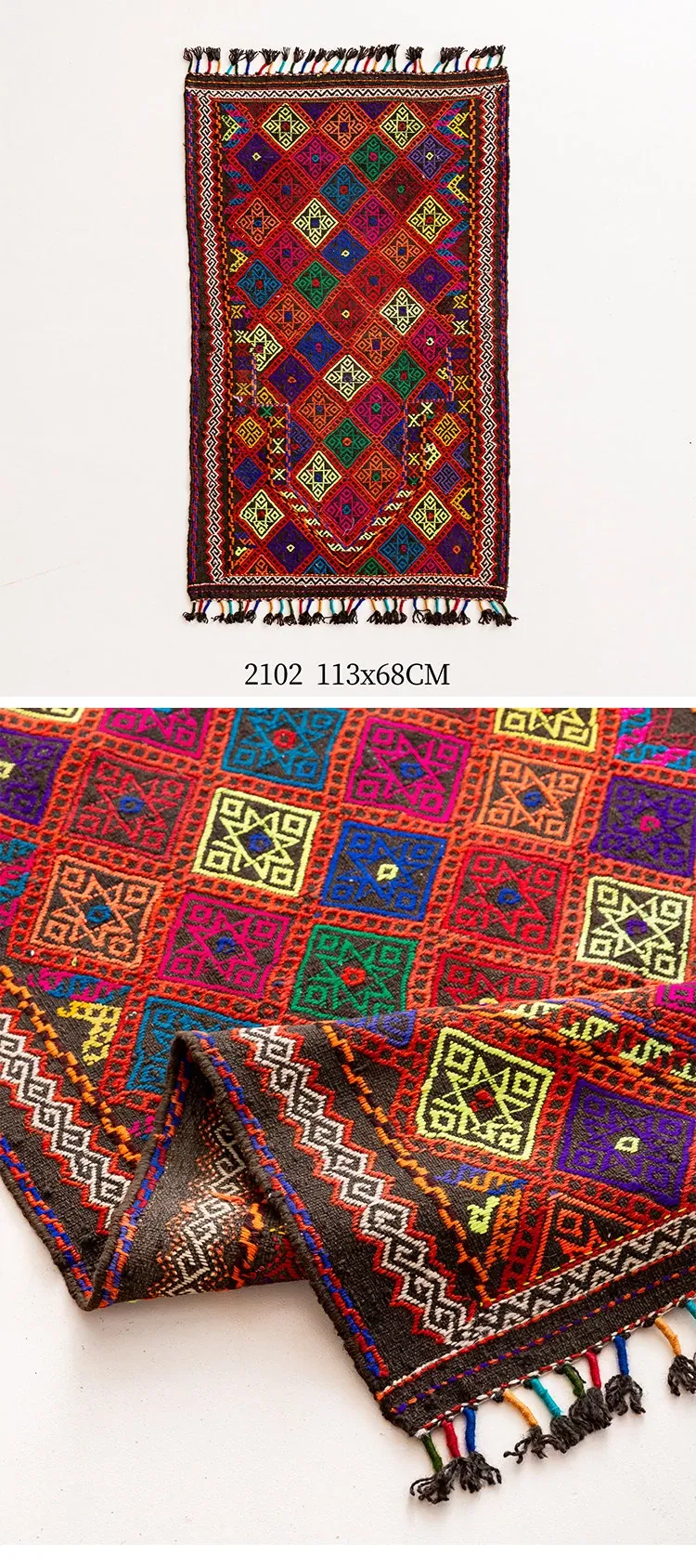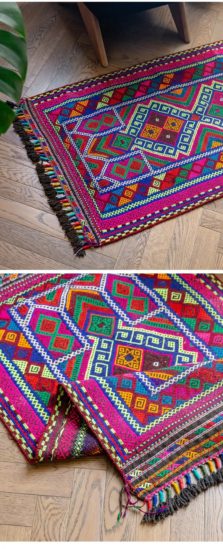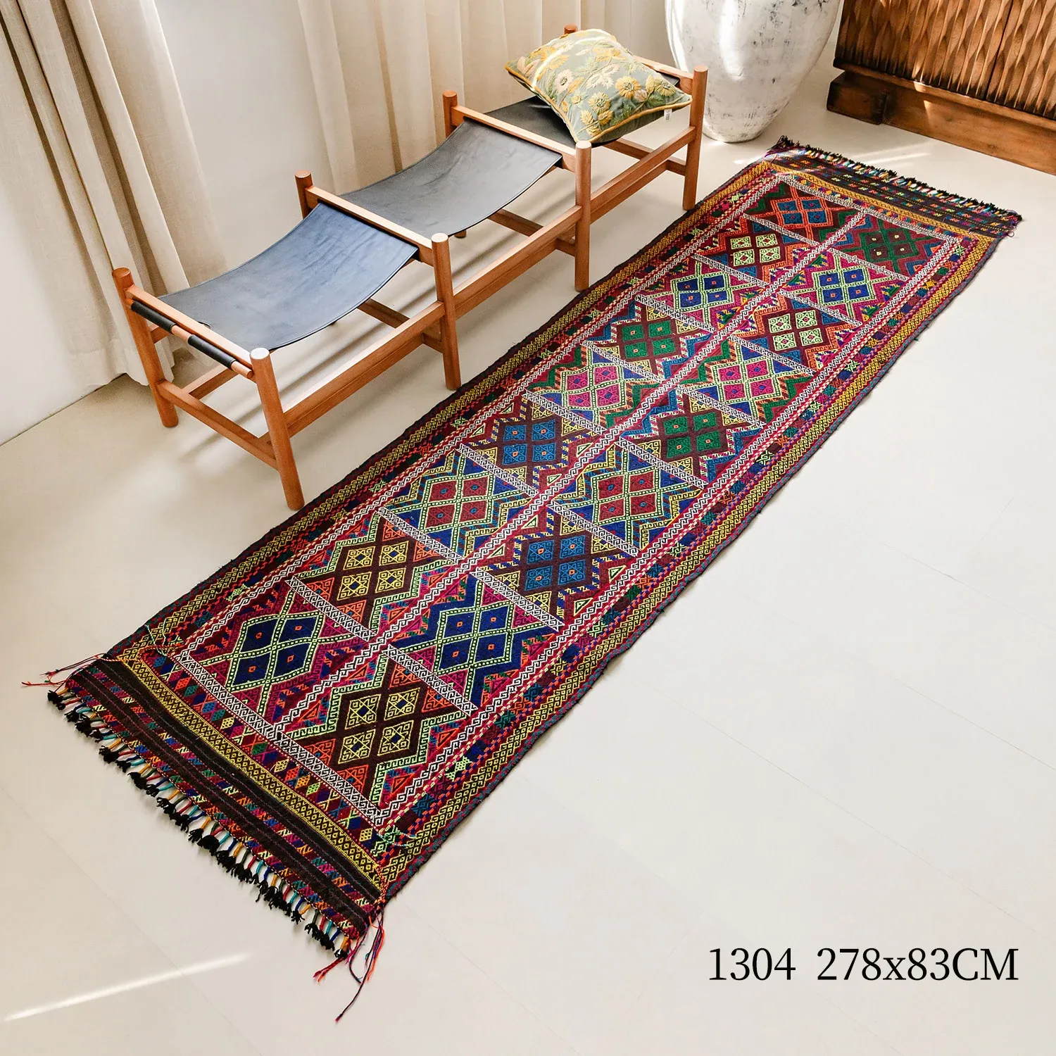 視覚的な美味しさ!アフガニスタン直輸入の手織りウール赤色キリム、ボヘミアンスタイルのリビングルームと廊下にぴったりのラグ!おしゃれで温かみのある空間を演出します。