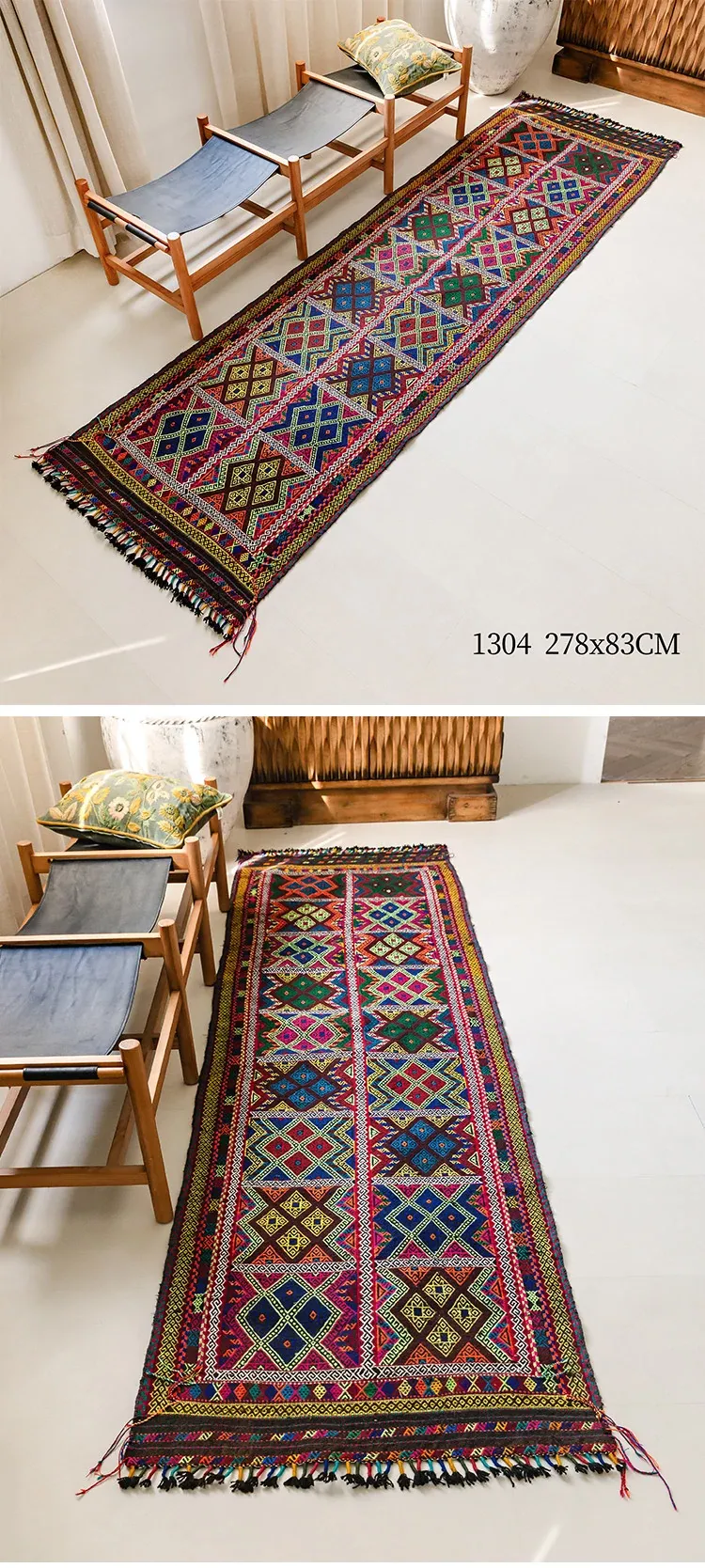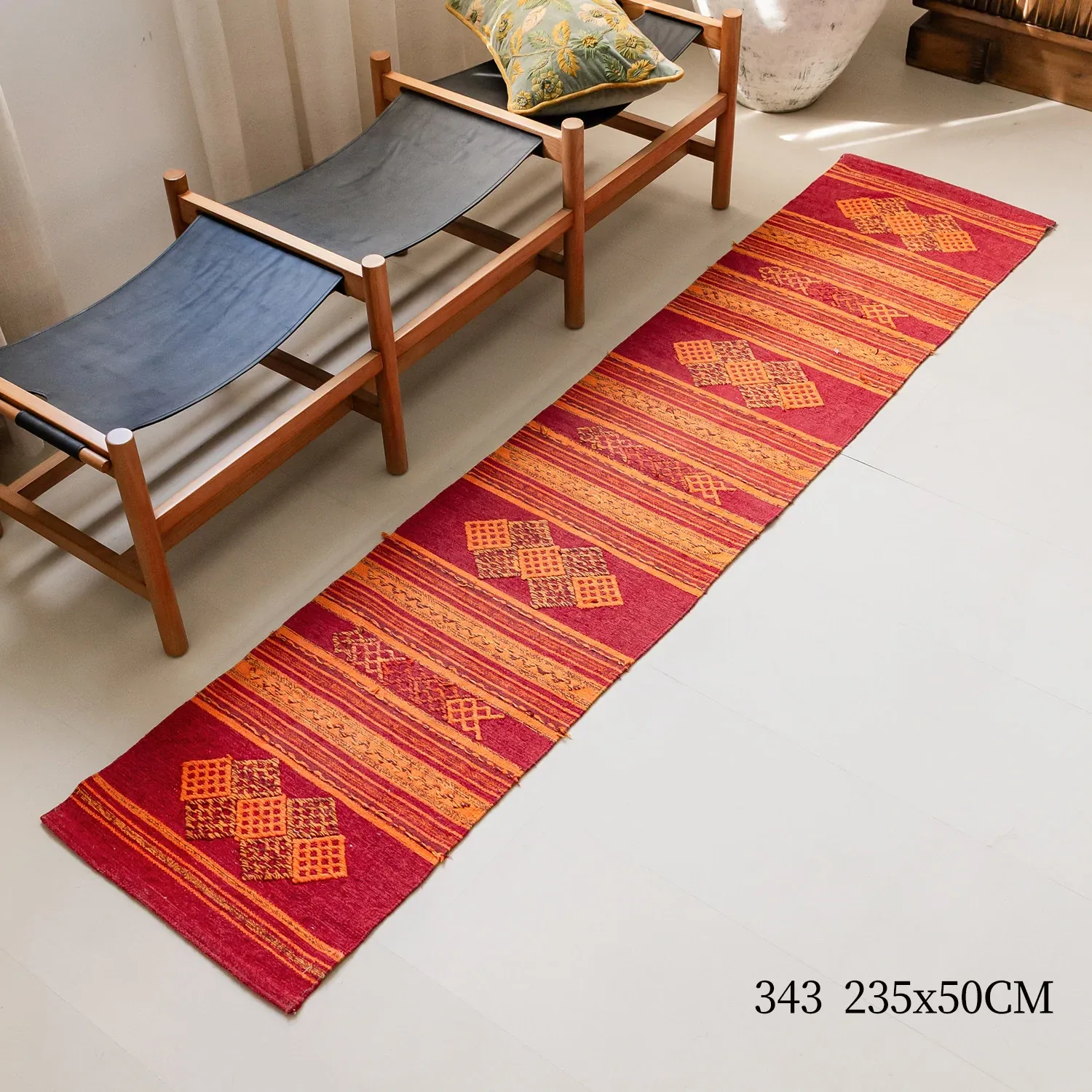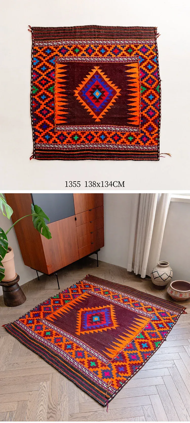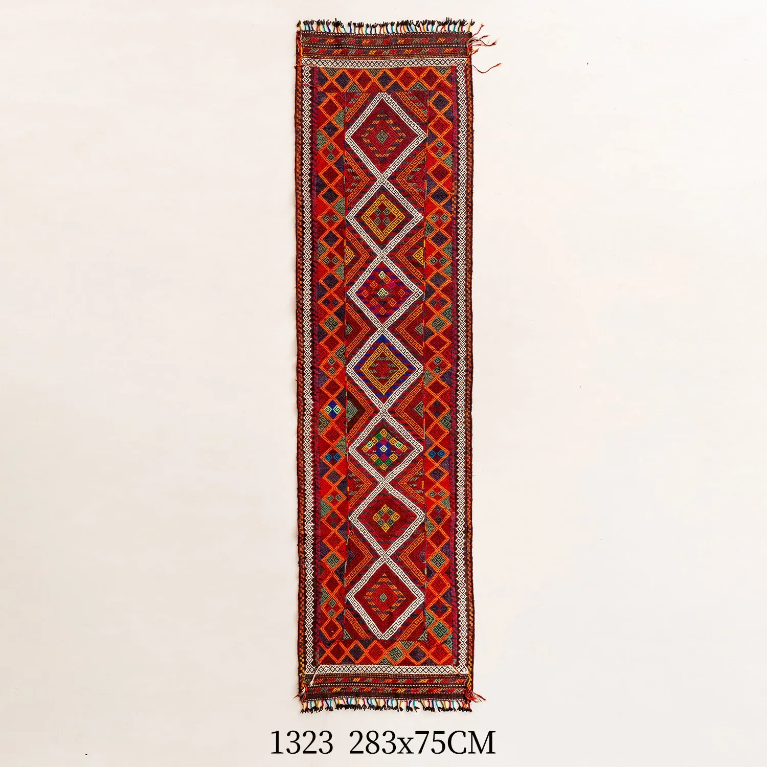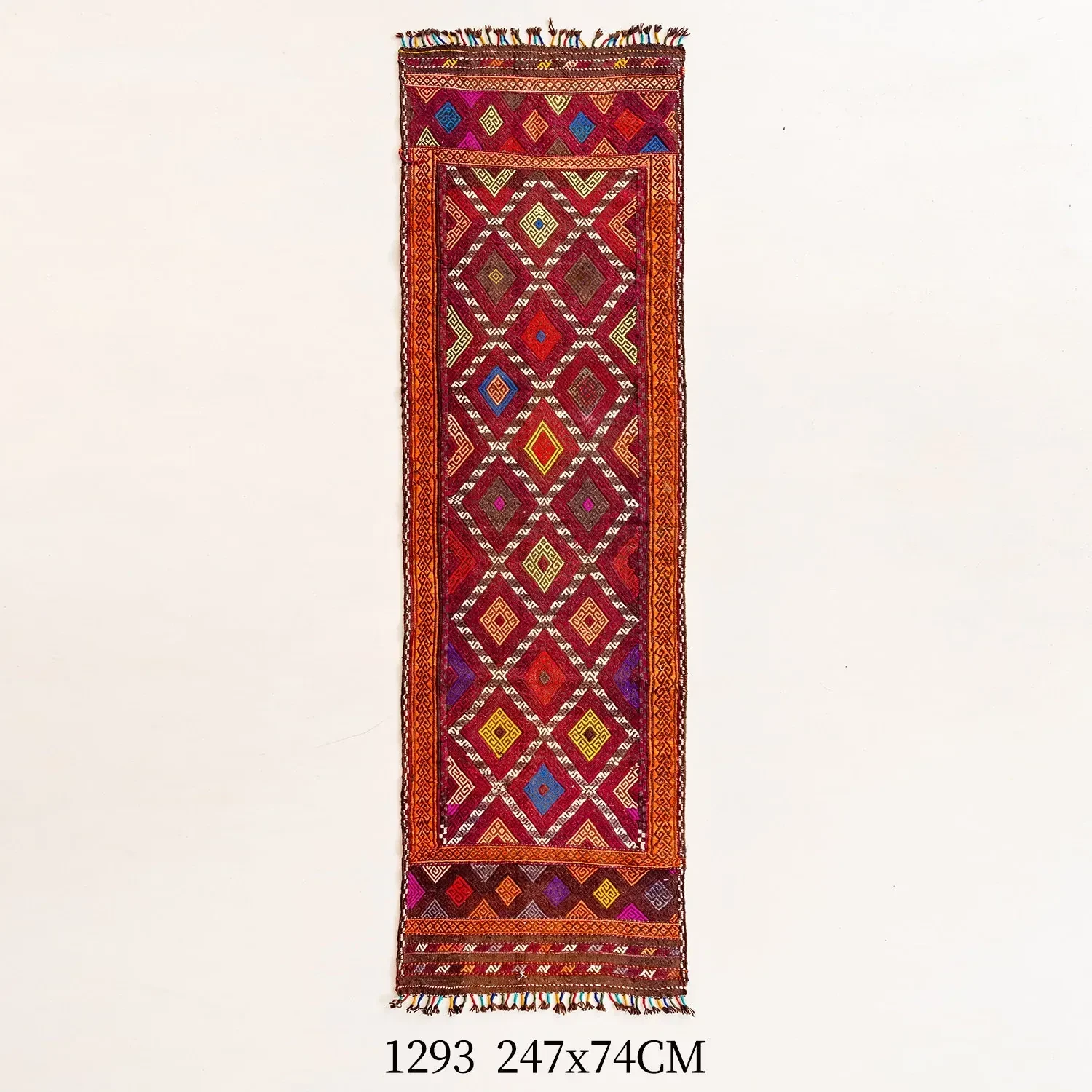 視覚的な美味しさ!アフガニスタン直輸入の手織りウール赤色キリム、ボヘミアンスタイルのリビングルームと廊下にぴったりのラグ!おしゃれで温かみのある空間を演出します。