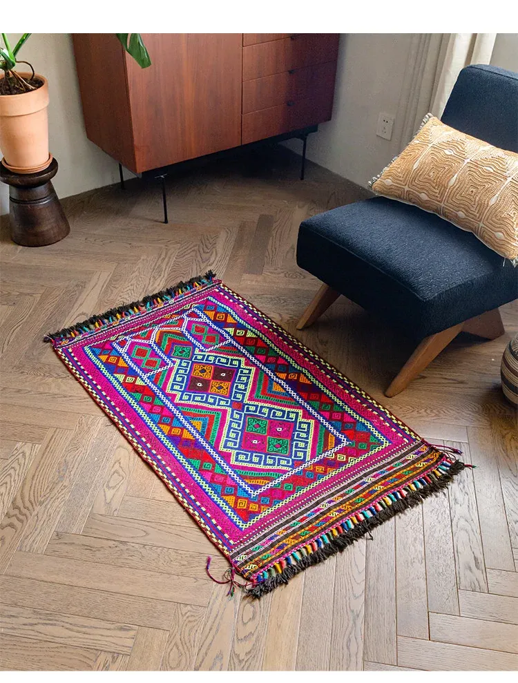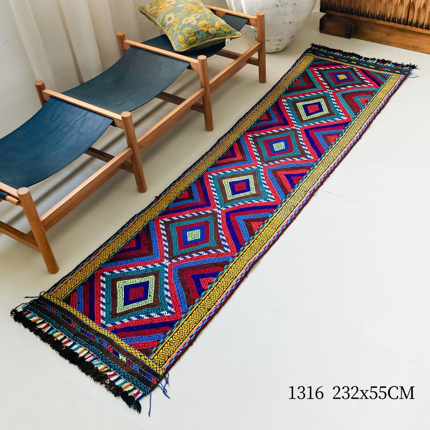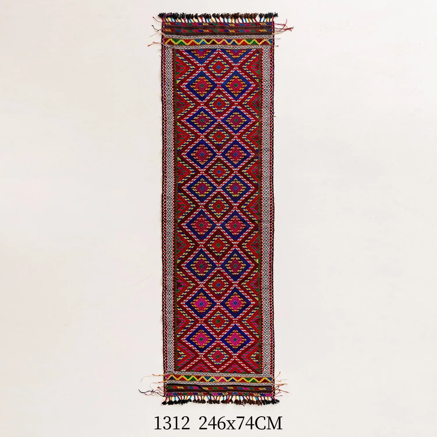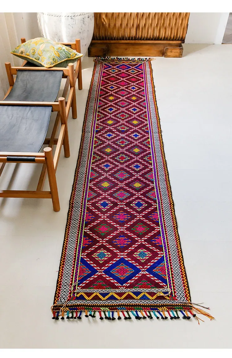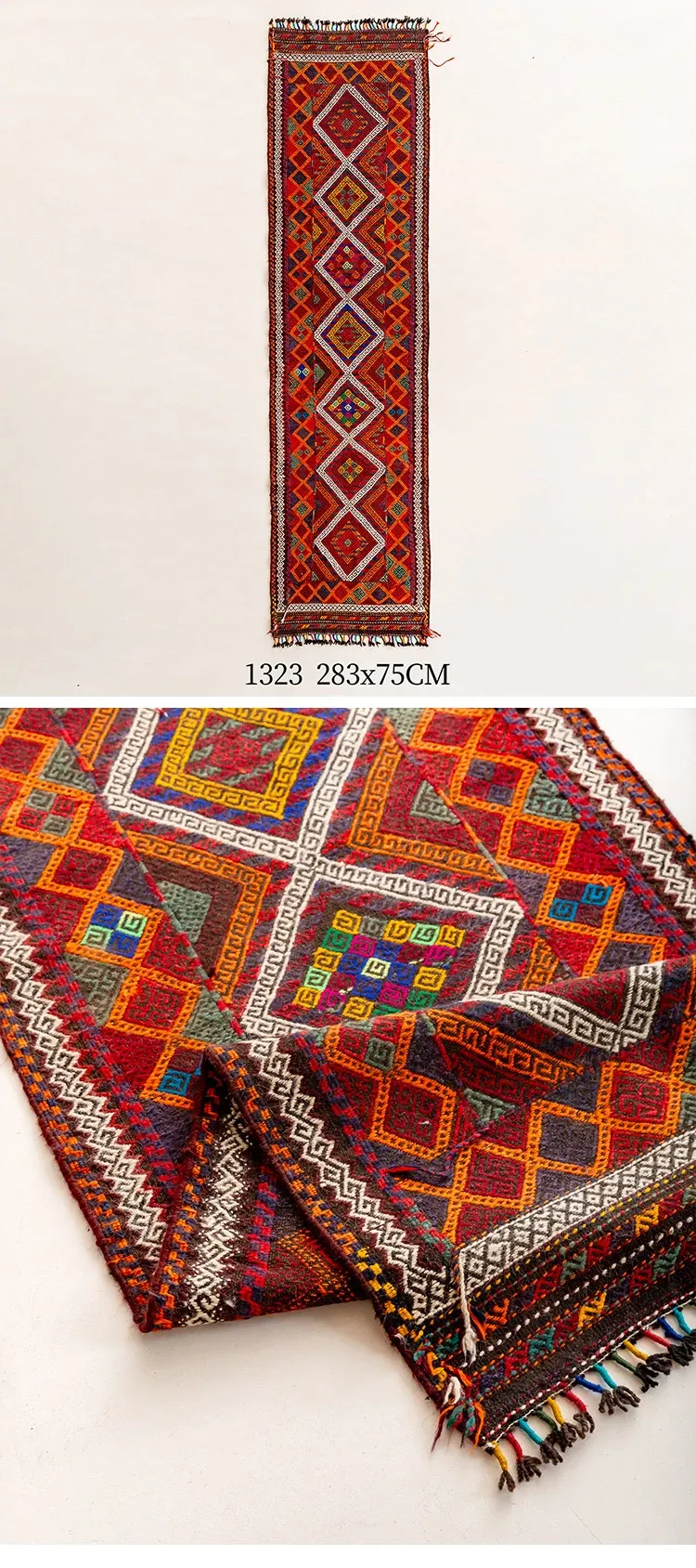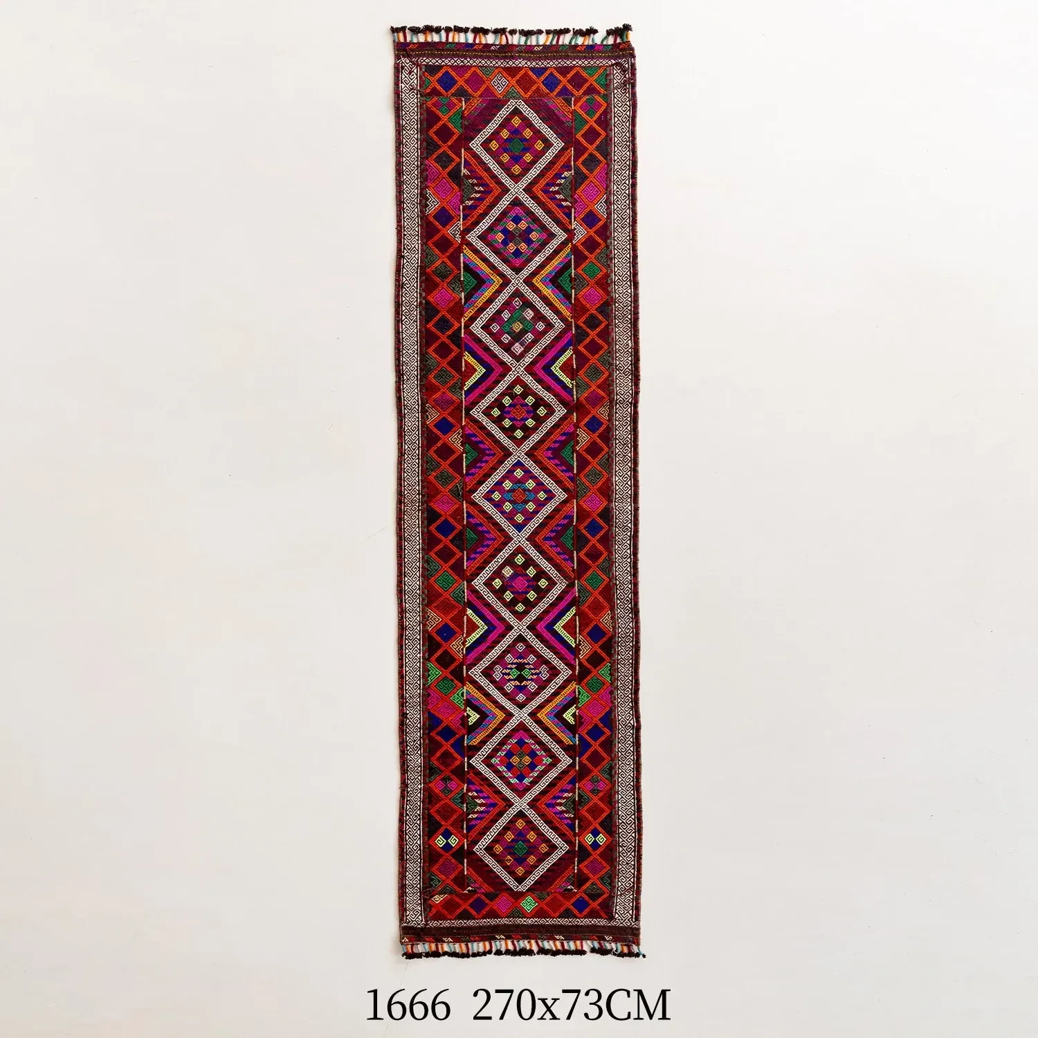 視覚的な美味しさ!アフガニスタン直輸入の手織りウール赤色キリム、ボヘミアンスタイルのリビングルームと廊下にぴったりのラグ!おしゃれで温かみのある空間を演出します。