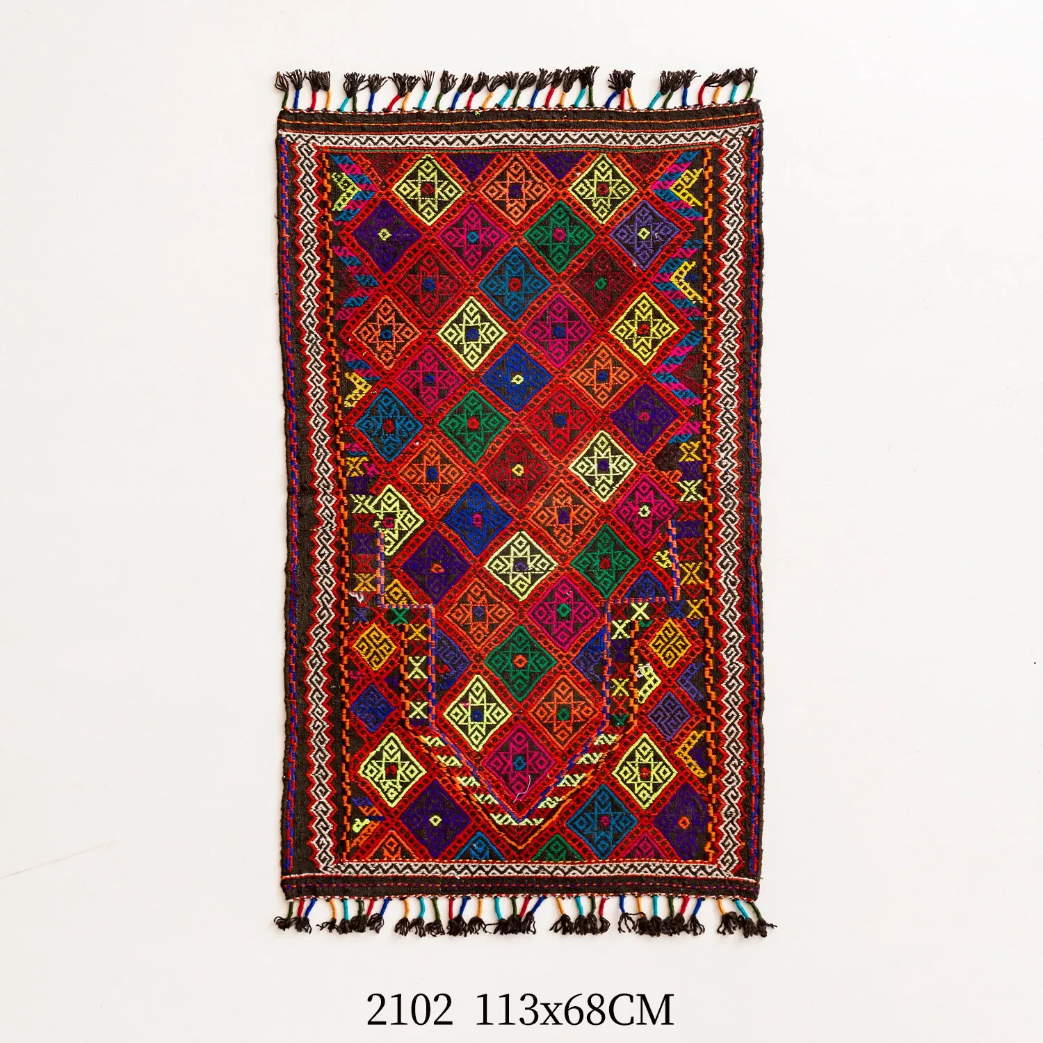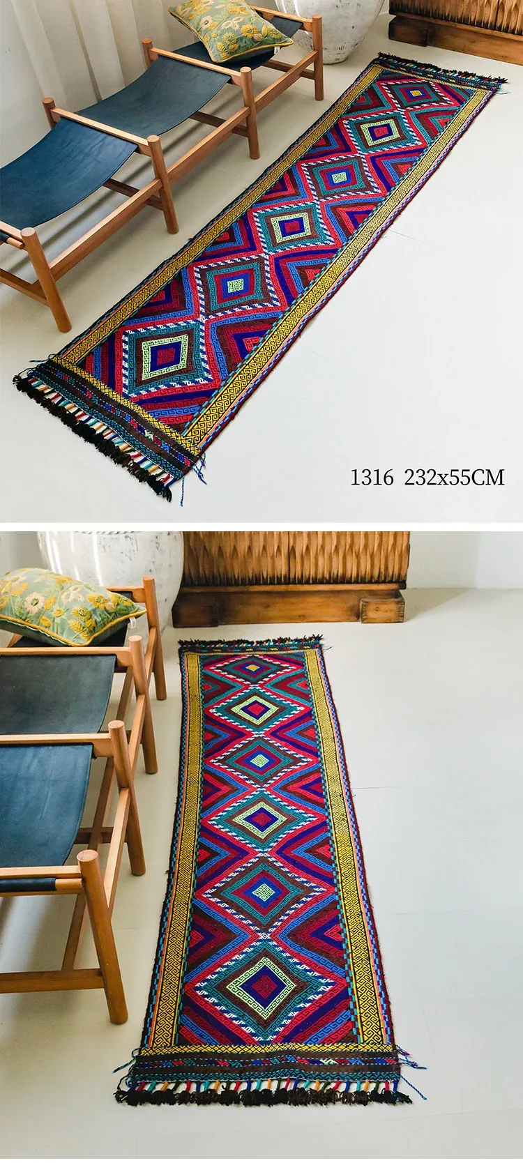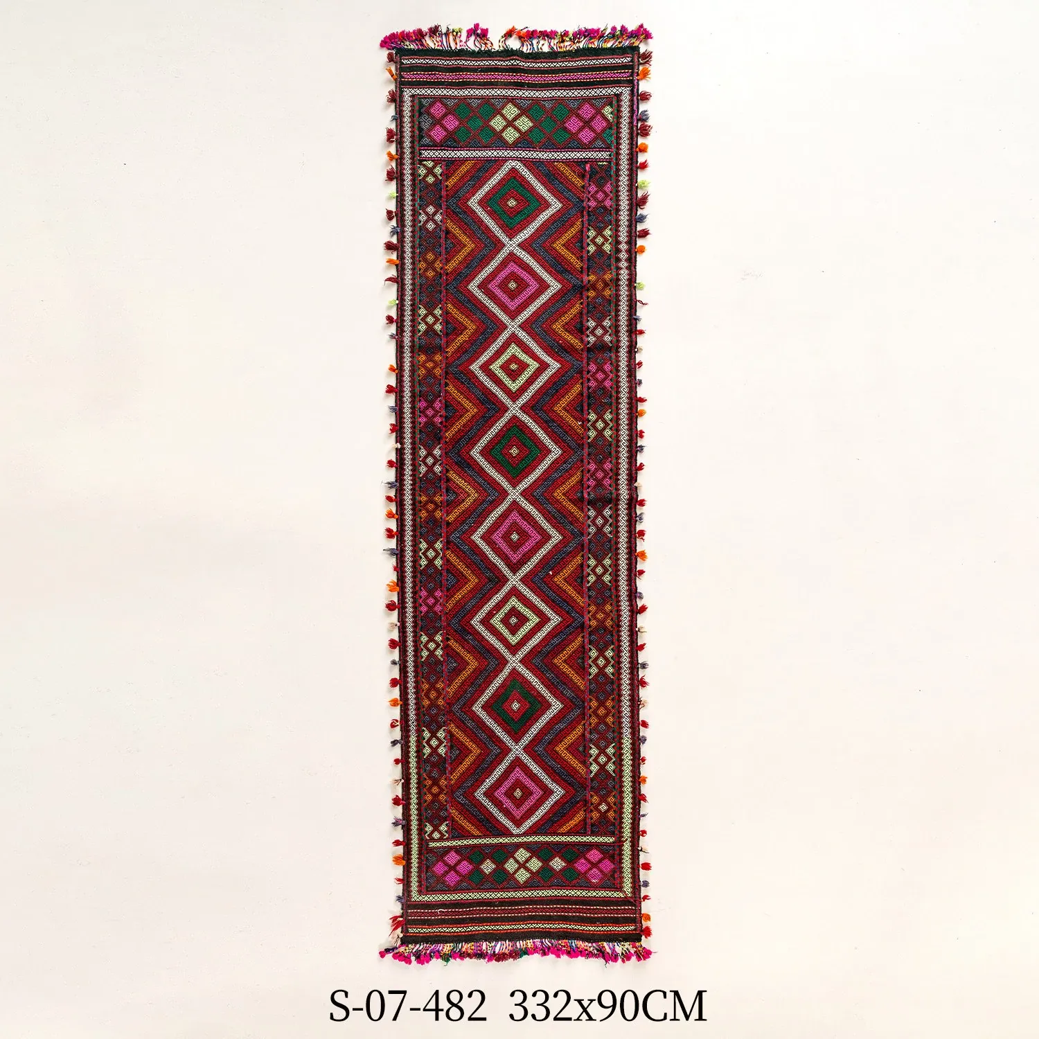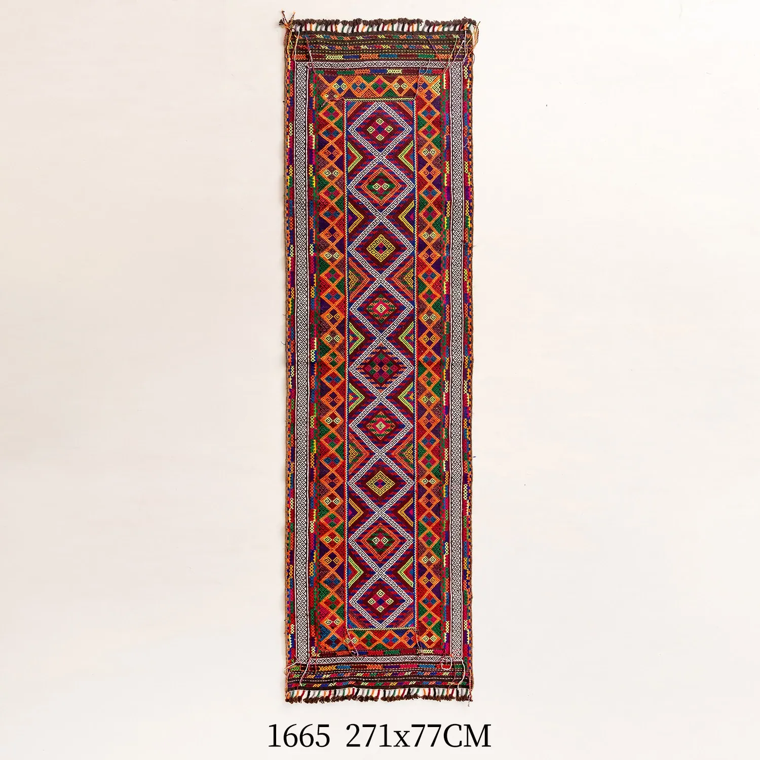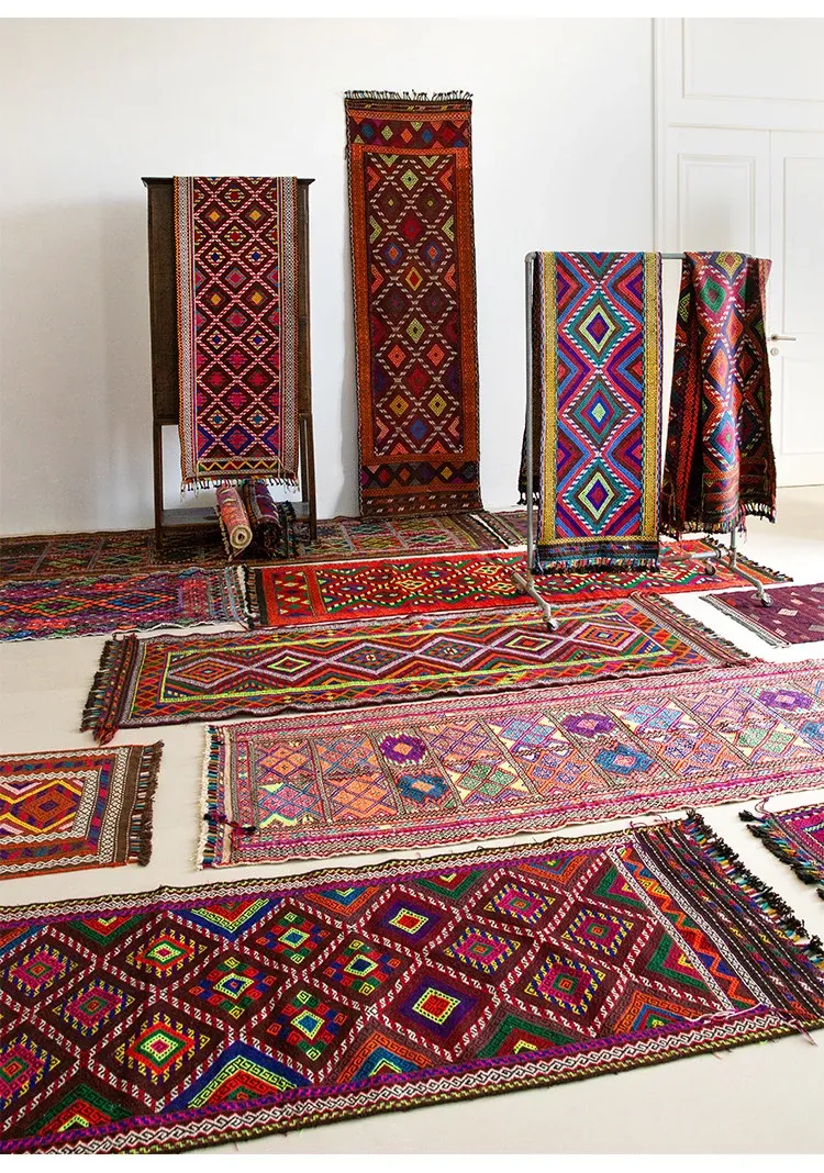 視覚的な美味しさ!アフガニスタン直輸入の手織りウール赤色キリム、ボヘミアンスタイルのリビングルームと廊下にぴったりのラグ!おしゃれで温かみのある空間を演出します。