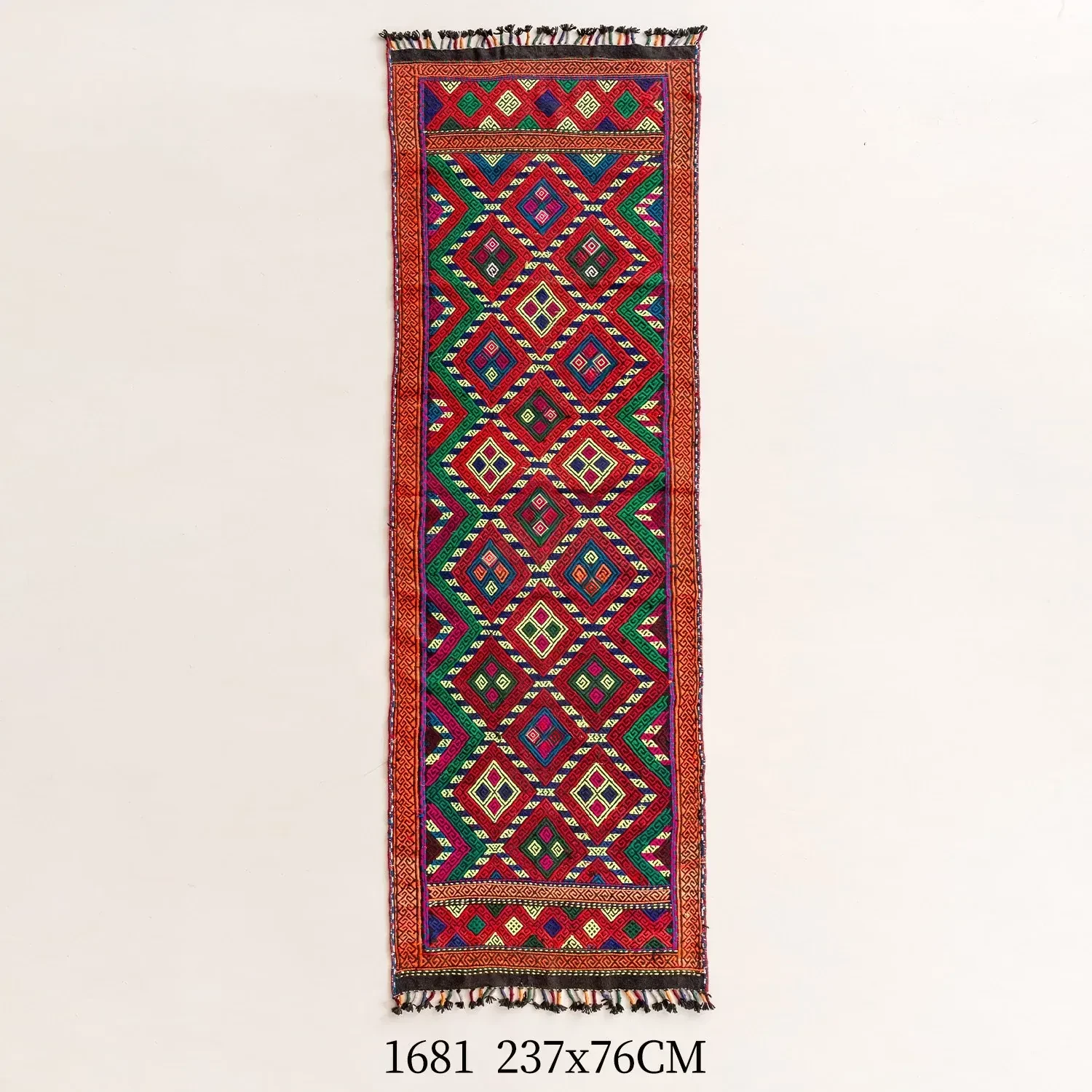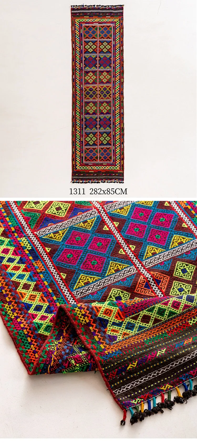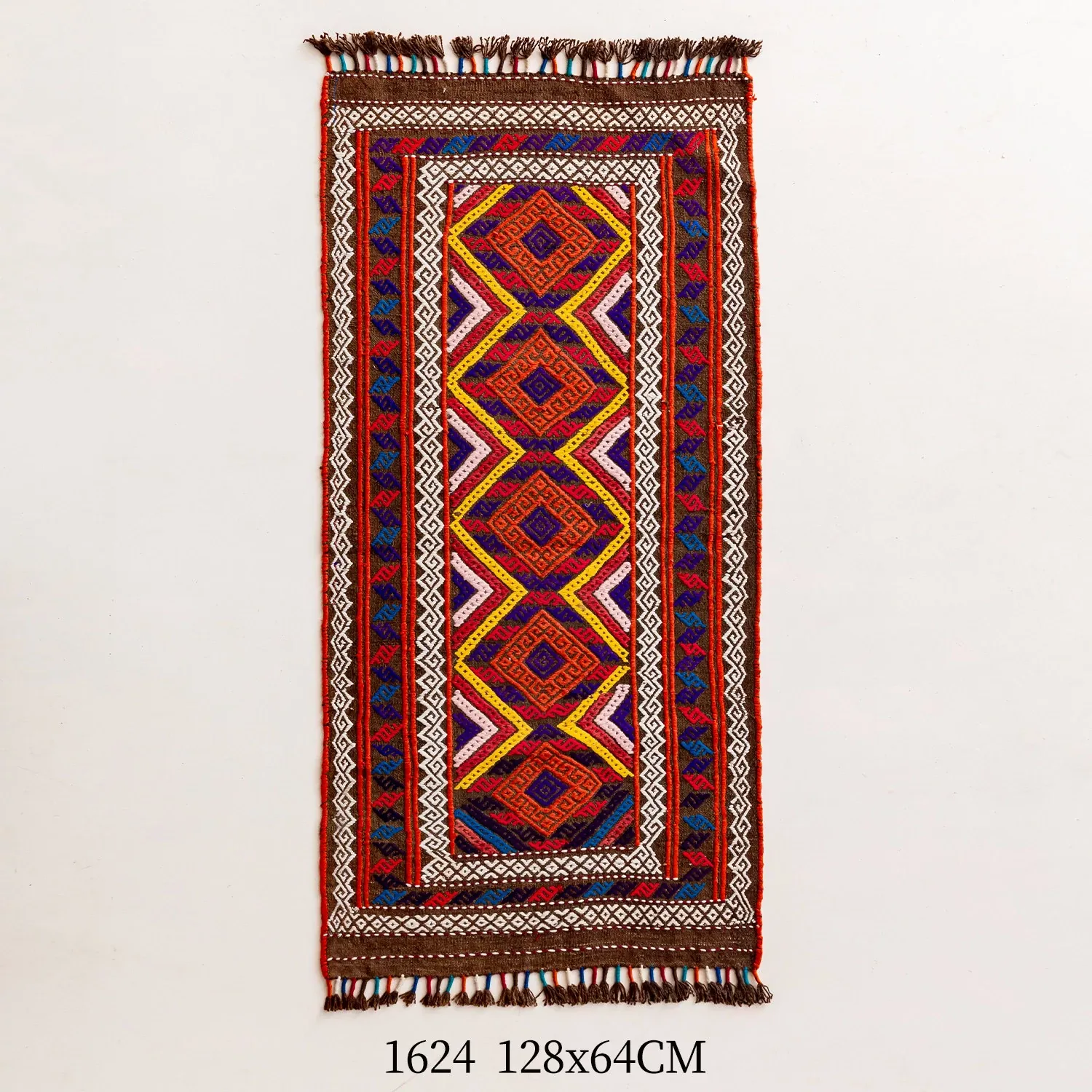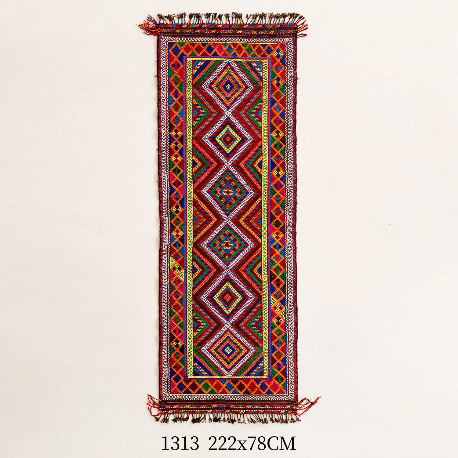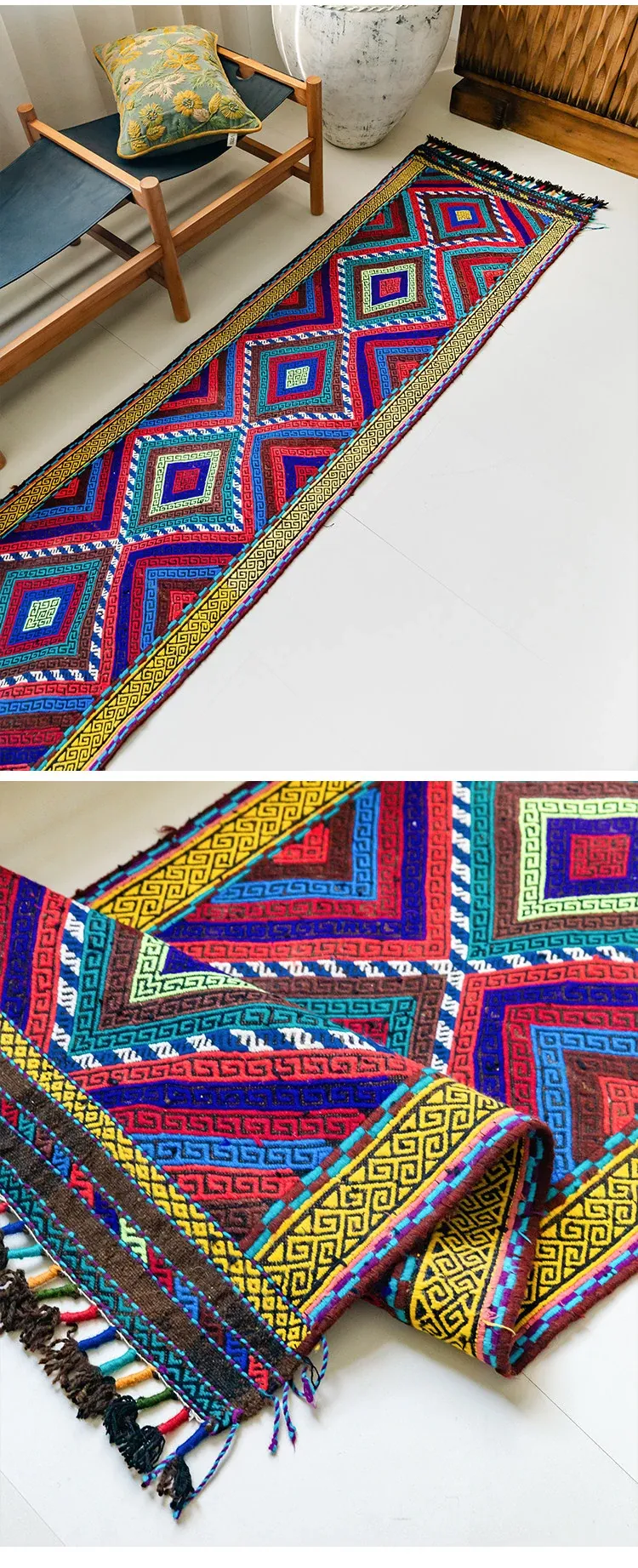 視覚的な美味しさ!アフガニスタン直輸入の手織りウール赤色キリム、ボヘミアンスタイルのリビングルームと廊下にぴったりのラグ!おしゃれで温かみのある空間を演出します。