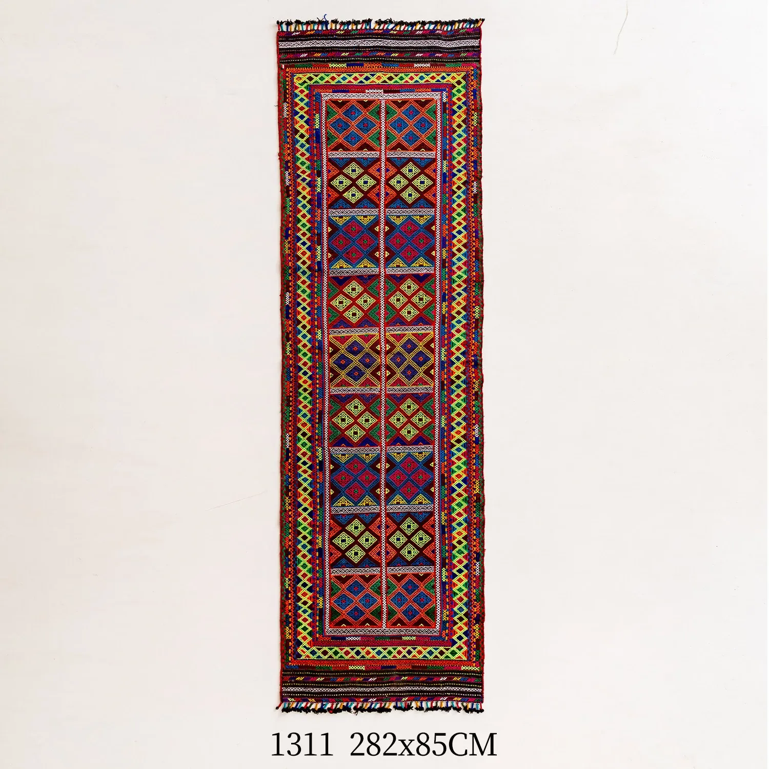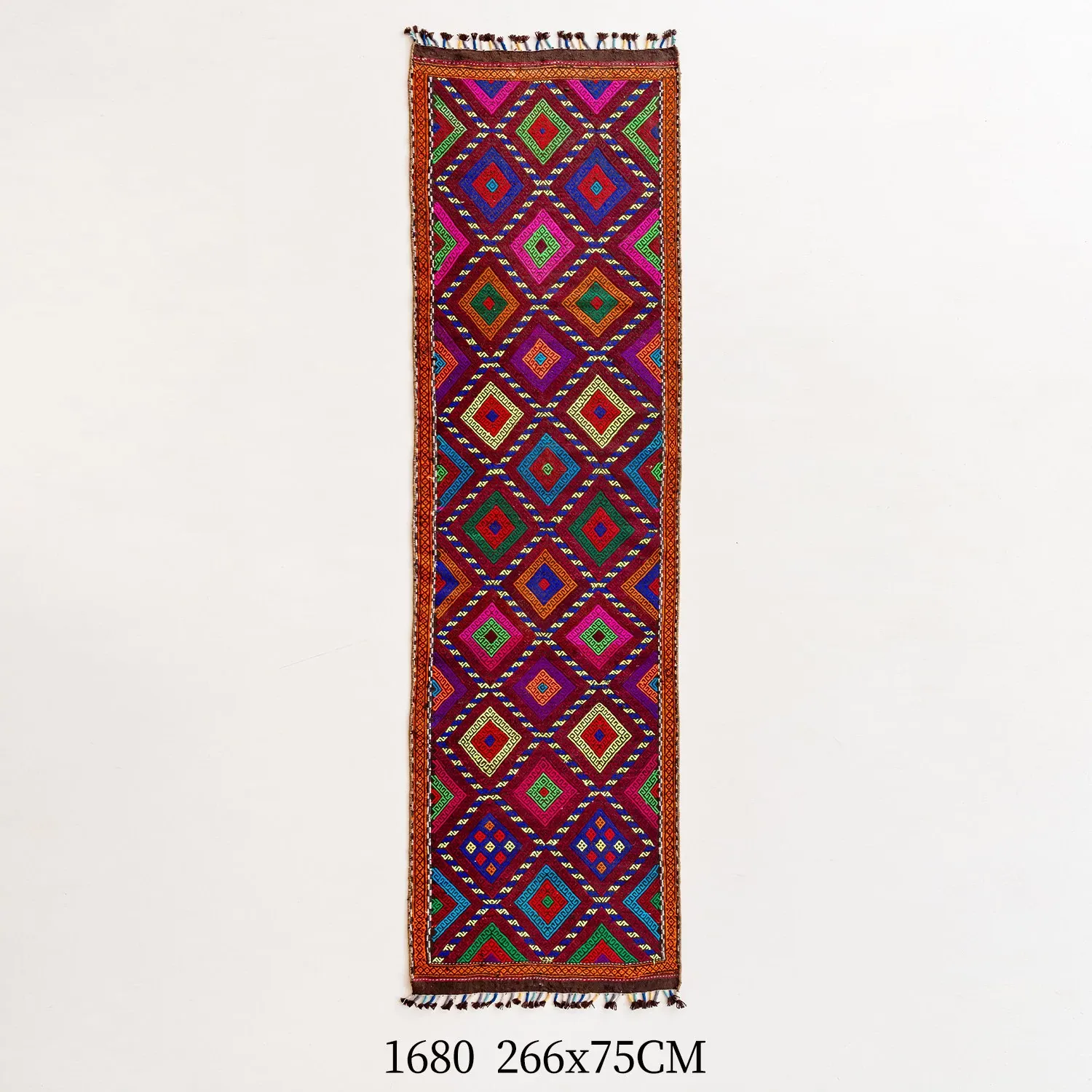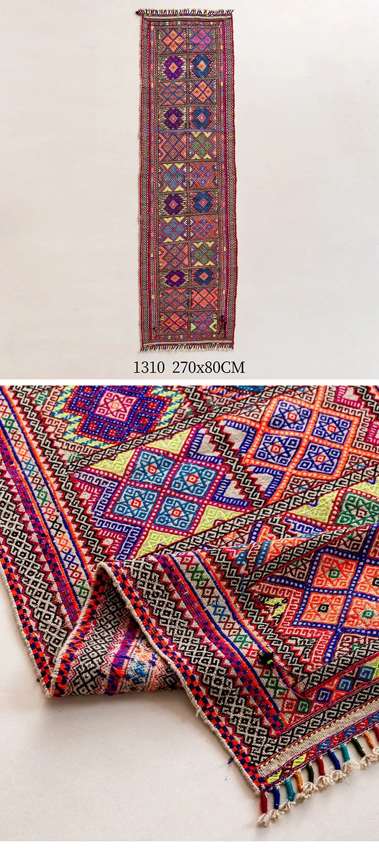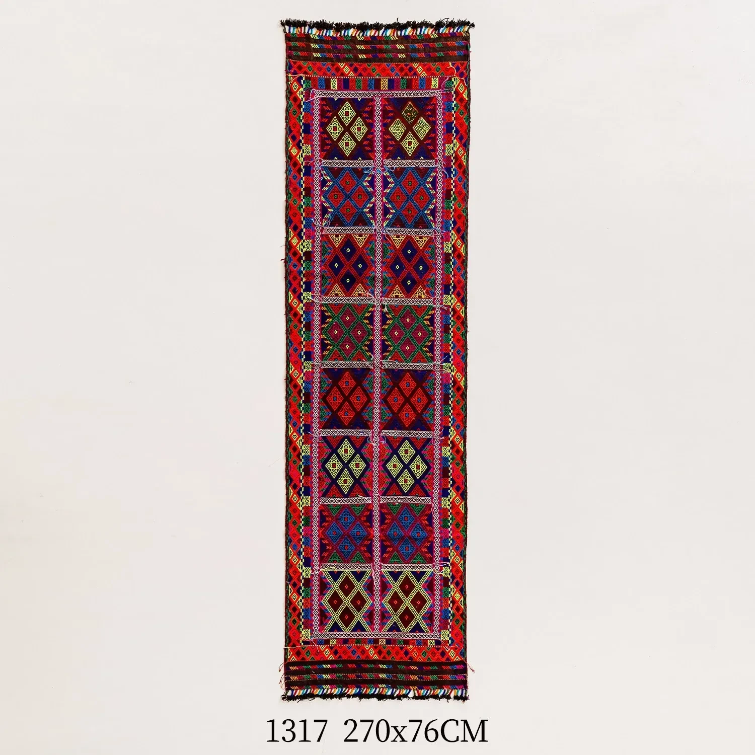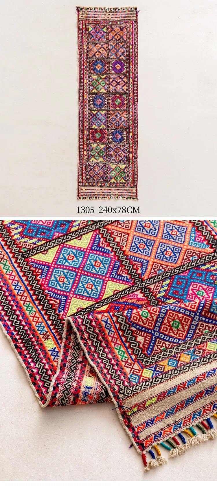 視覚的な美味しさ!アフガニスタン直輸入の手織りウール赤色キリム、ボヘミアンスタイルのリビングルームと廊下にぴったりのラグ!おしゃれで温かみのある空間を演出します。
