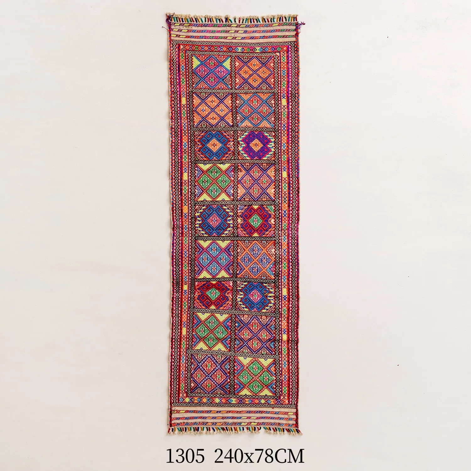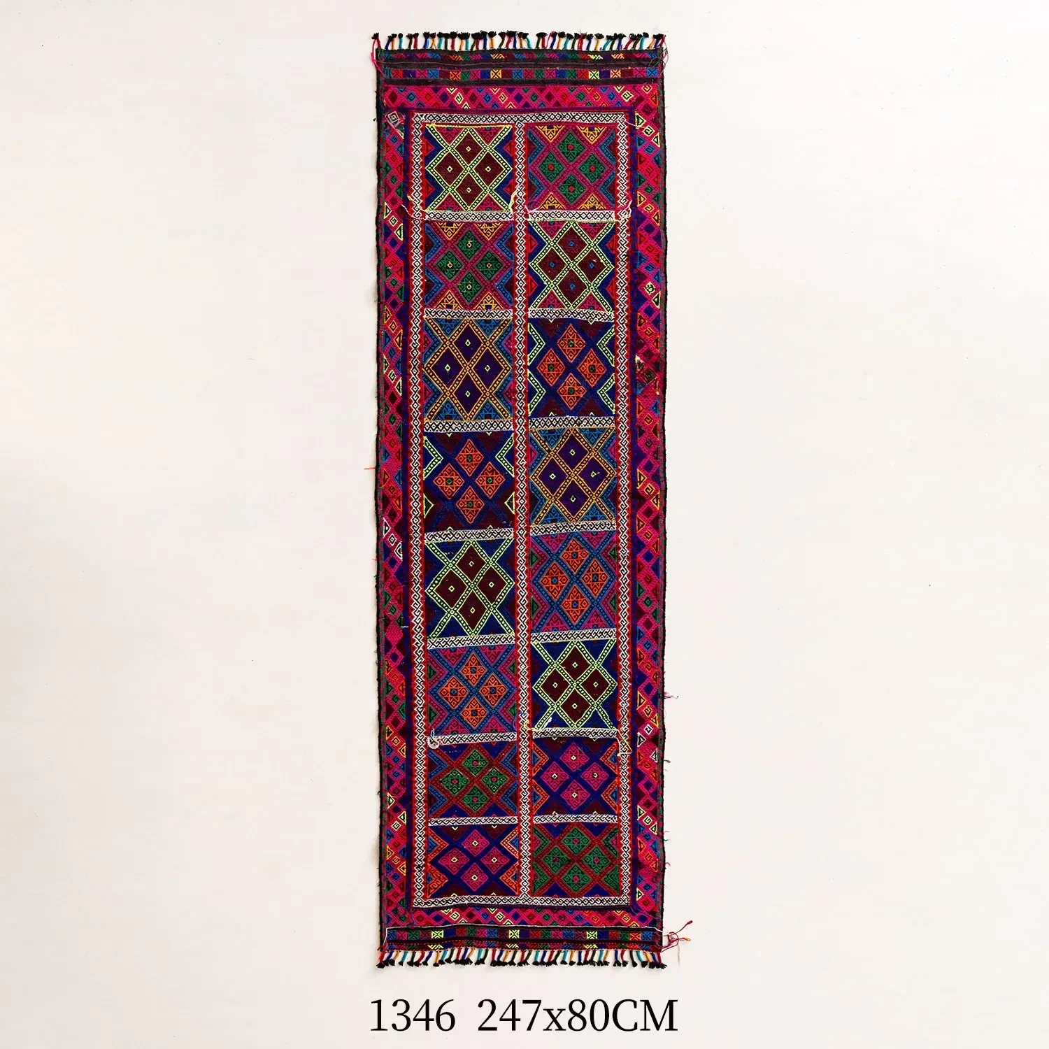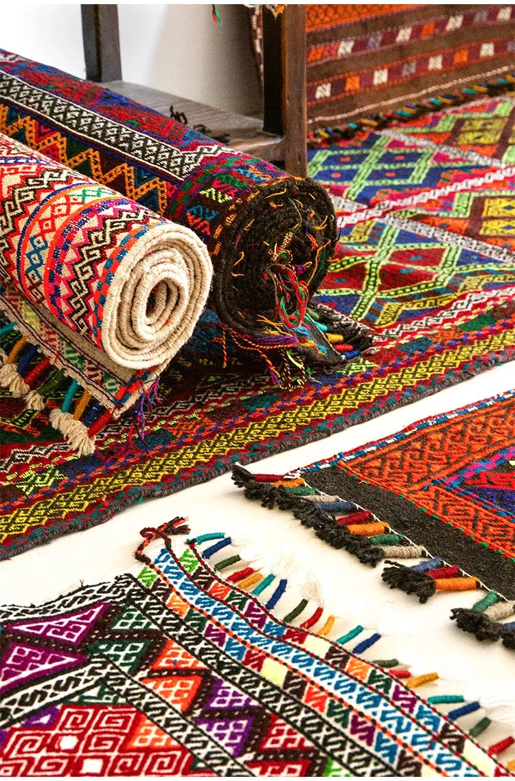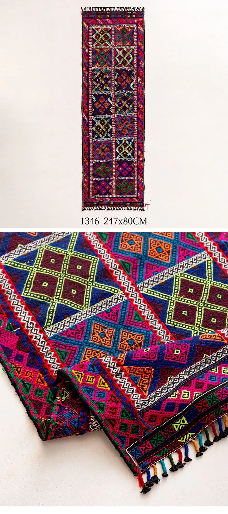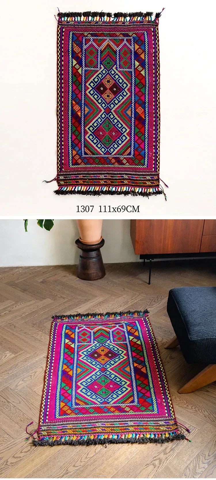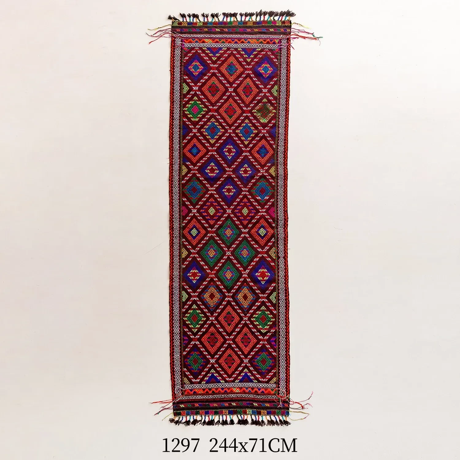 視覚的な美味しさ!アフガニスタン直輸入の手織りウール赤色キリム、ボヘミアンスタイルのリビングルームと廊下にぴったりのラグ!おしゃれで温かみのある空間を演出します。