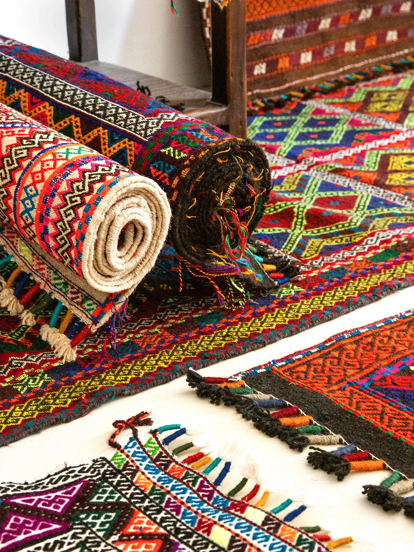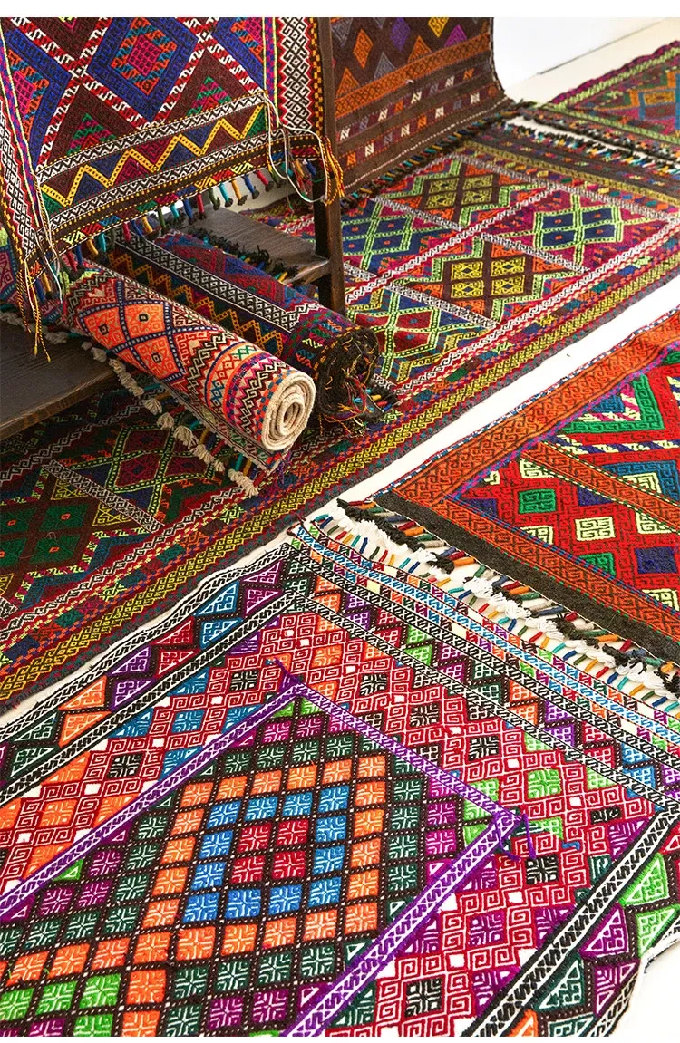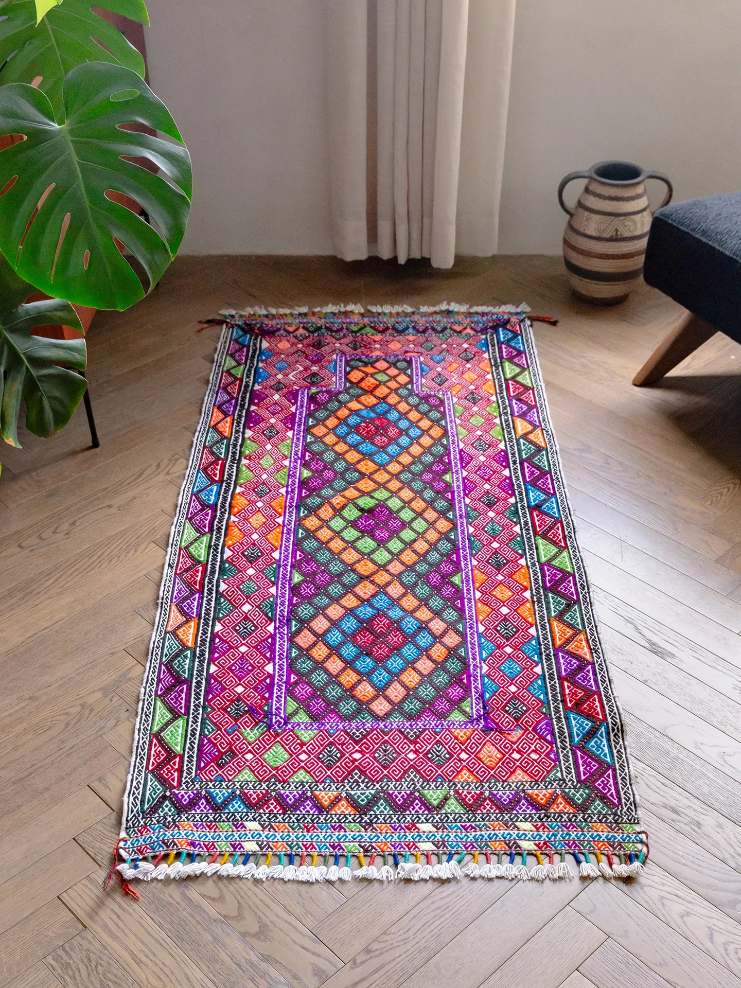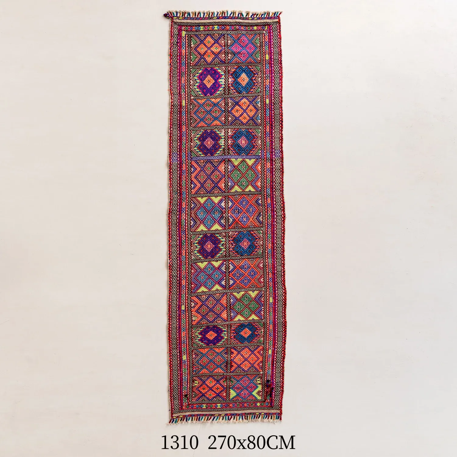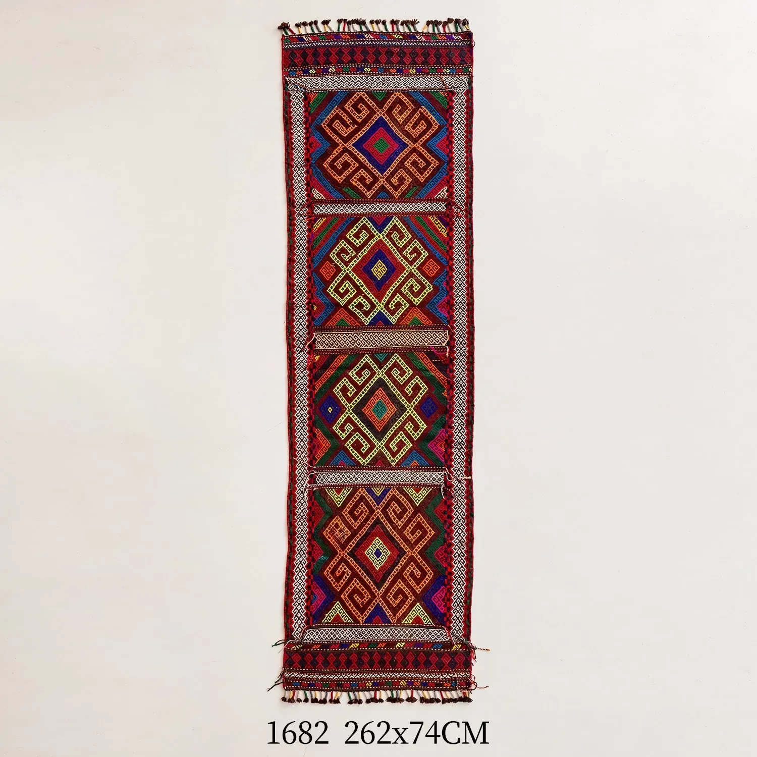 視覚的な美味しさ!アフガニスタン直輸入の手織りウール赤色キリム、ボヘミアンスタイルのリビングルームと廊下にぴったりのラグ!おしゃれで温かみのある空間を演出します。