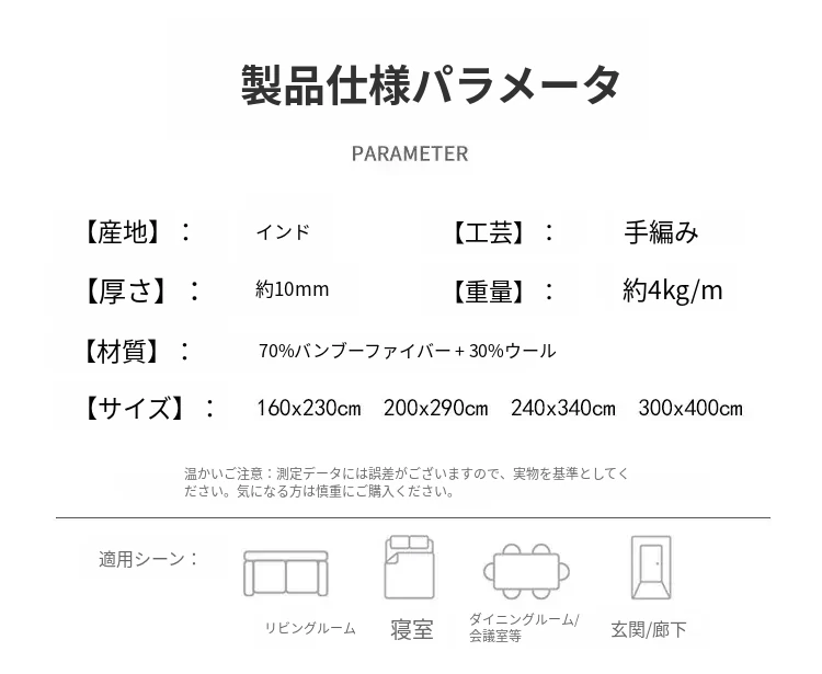ビジュアルな味わい 手作り輸入ウールシルクモダンラグ 日本スタイルのシンプルなリビングテーブルマット 環境に優しい素材使用