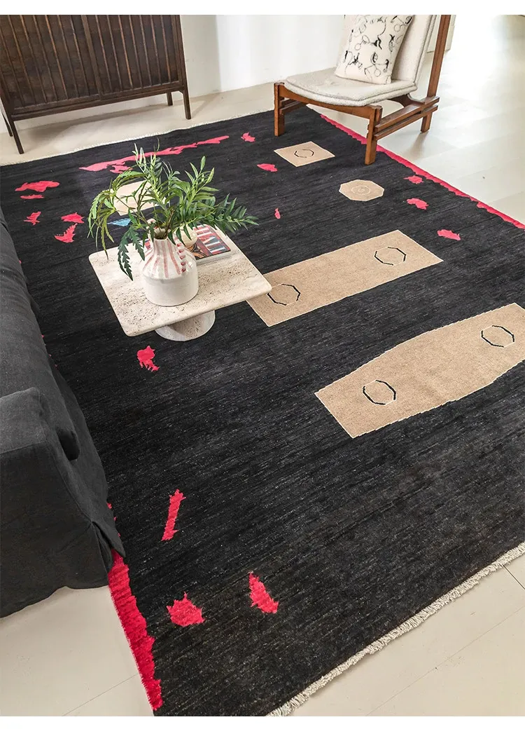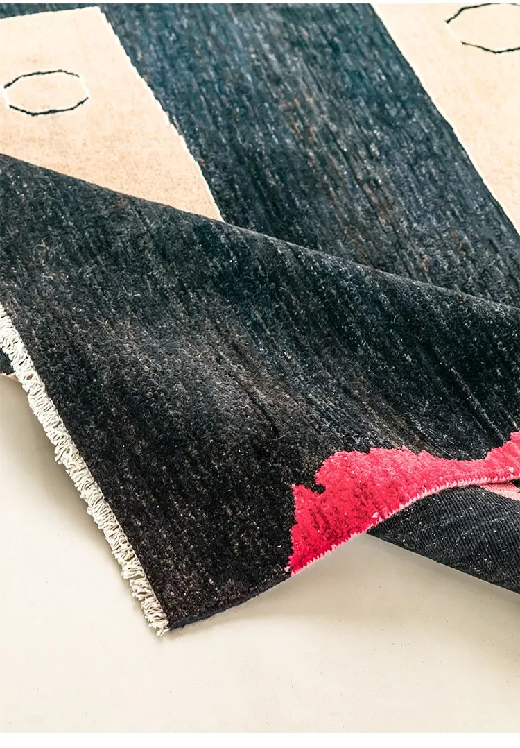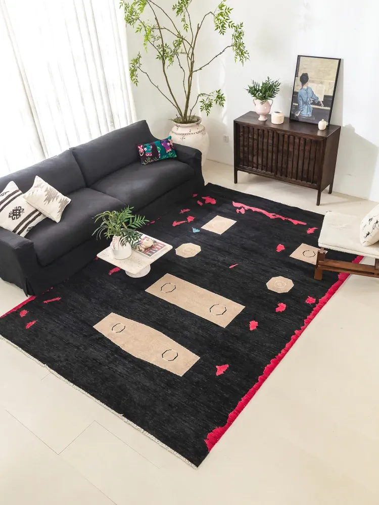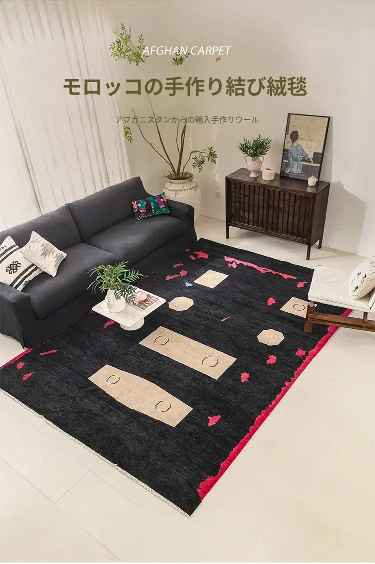 視覚の味わい 輸入アフガニスタン製 手作り織りの侘び寂び風ウールラグ モロッコスタイル シンプルなリビングルームラグ
