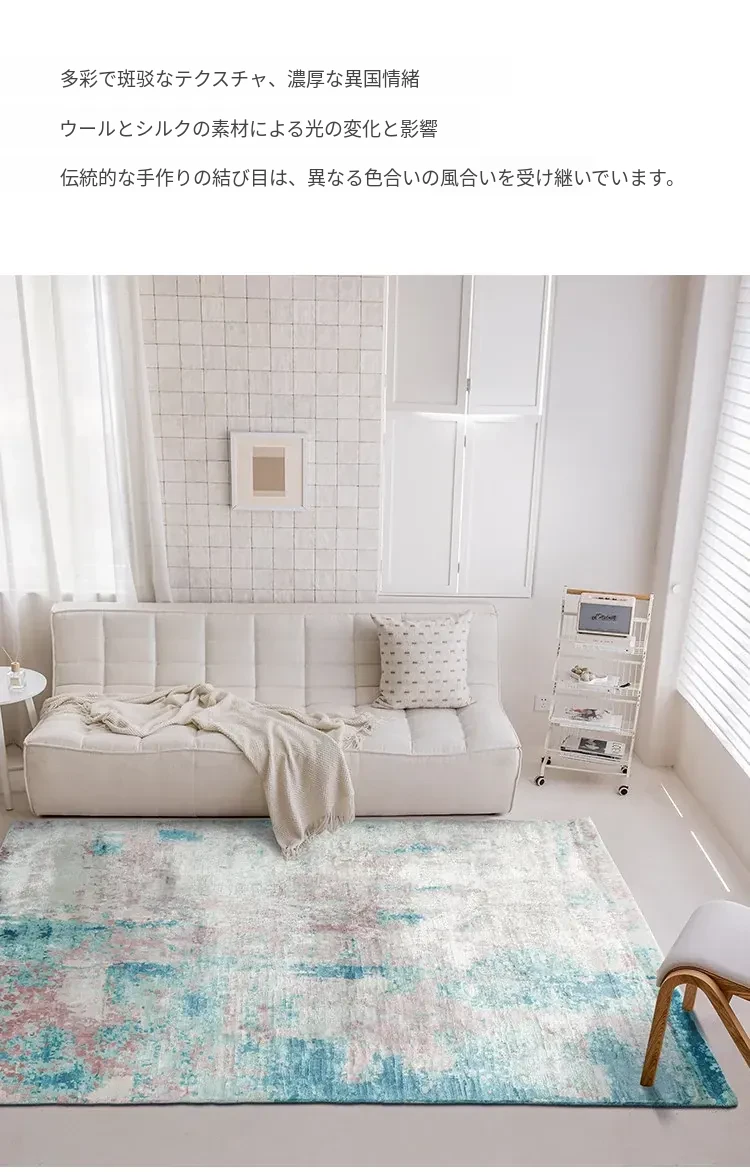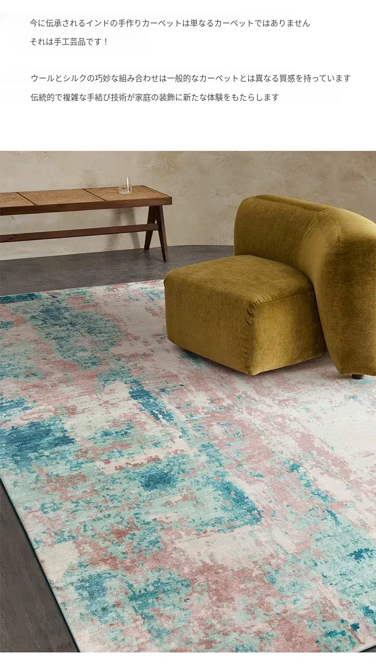 視覚と味覚を刺激する、輸入無接着剤手作り結びウールシルクヴィラ新中式リビングルームカーペット。軽やかな高級感を演出し、特別な空間を演出します。