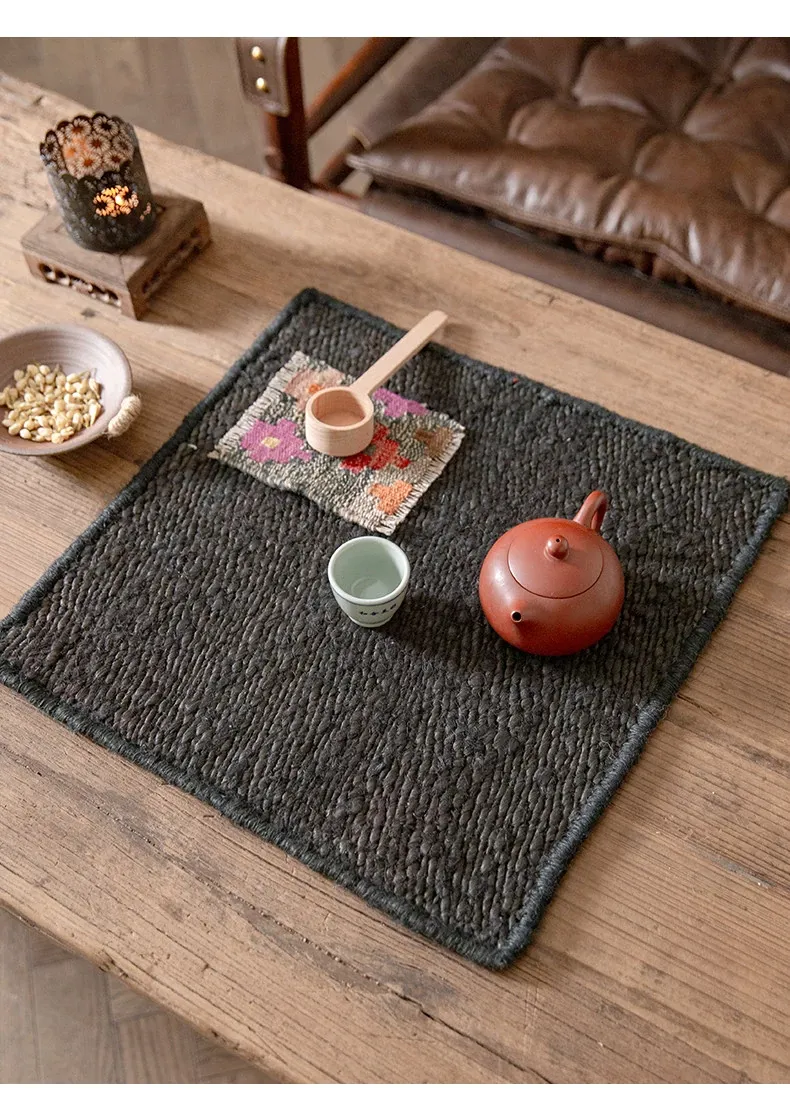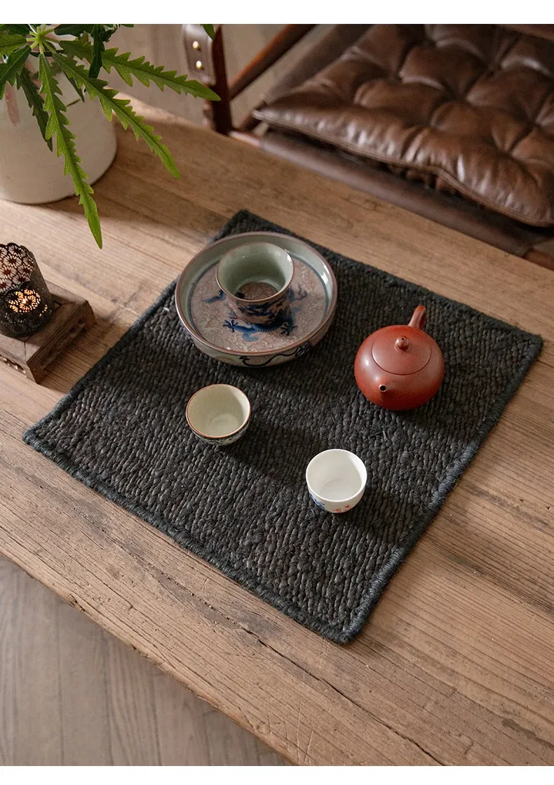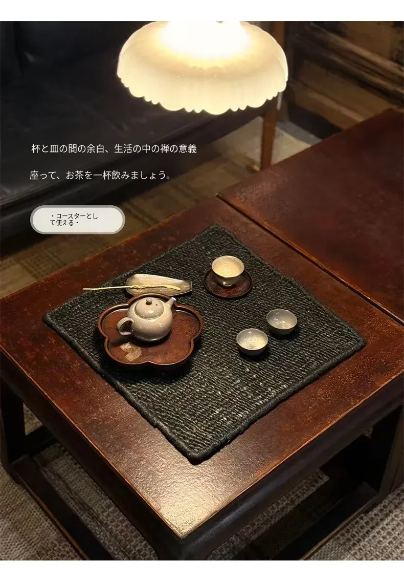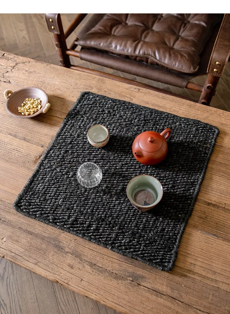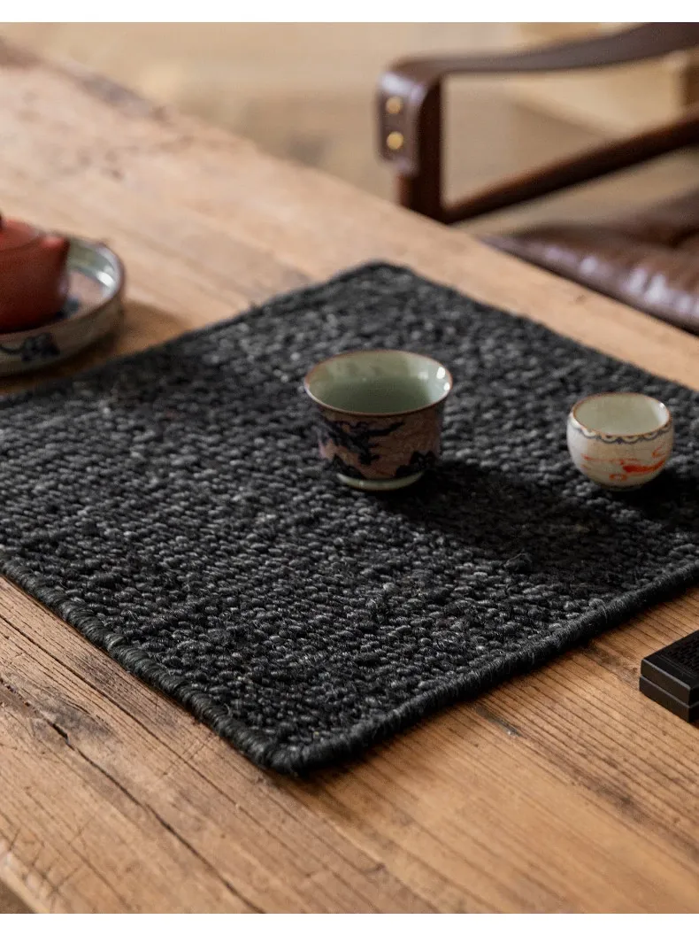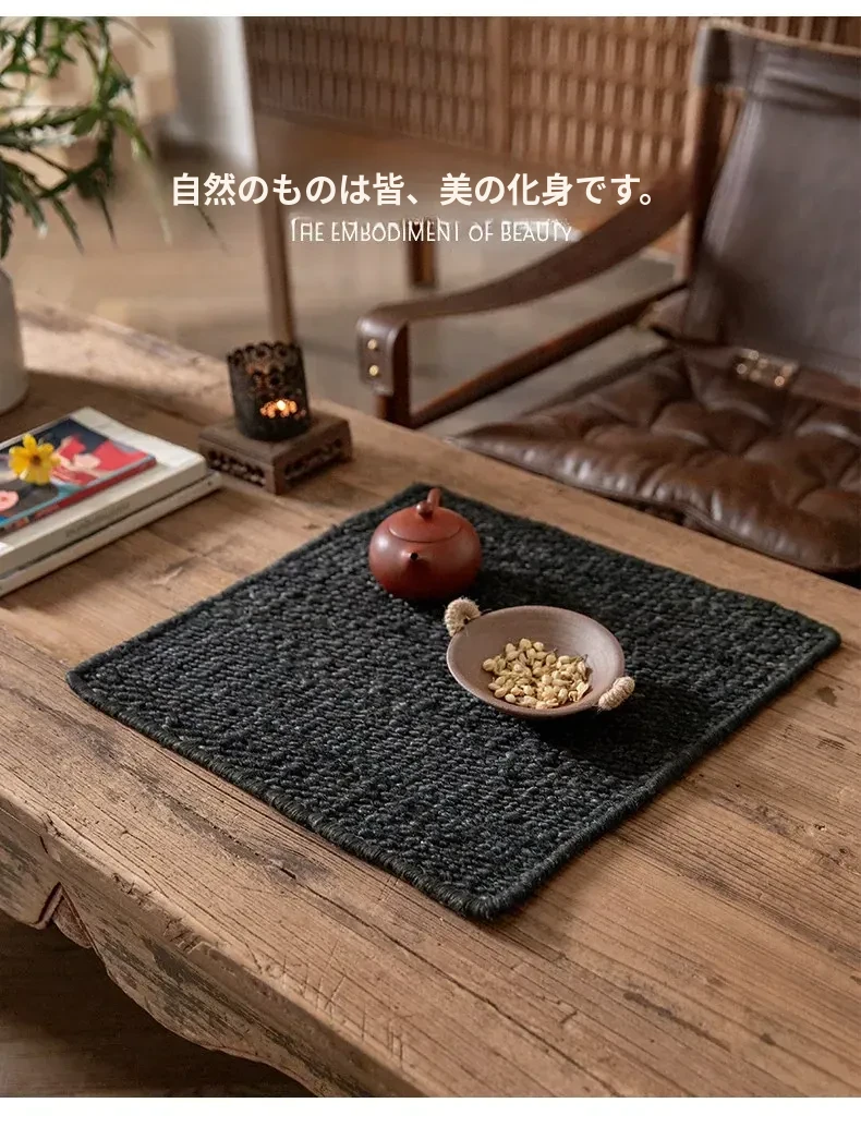 視覚と味覚を楽しむ!輸入ハンドメイドの黒いジュート製禅スタイル新中式茶席テーブルマット。断熱効果抜群の両面デザインで、インテリアを引き立てるおしゃれなダイニングアイテム!