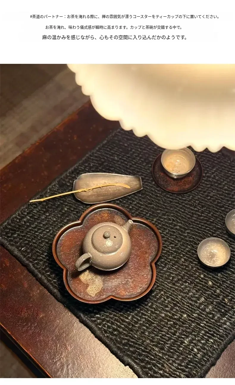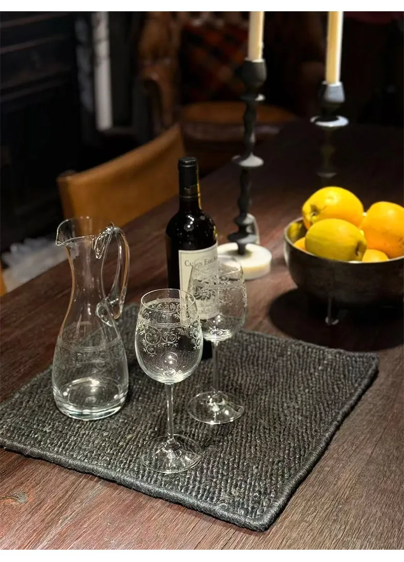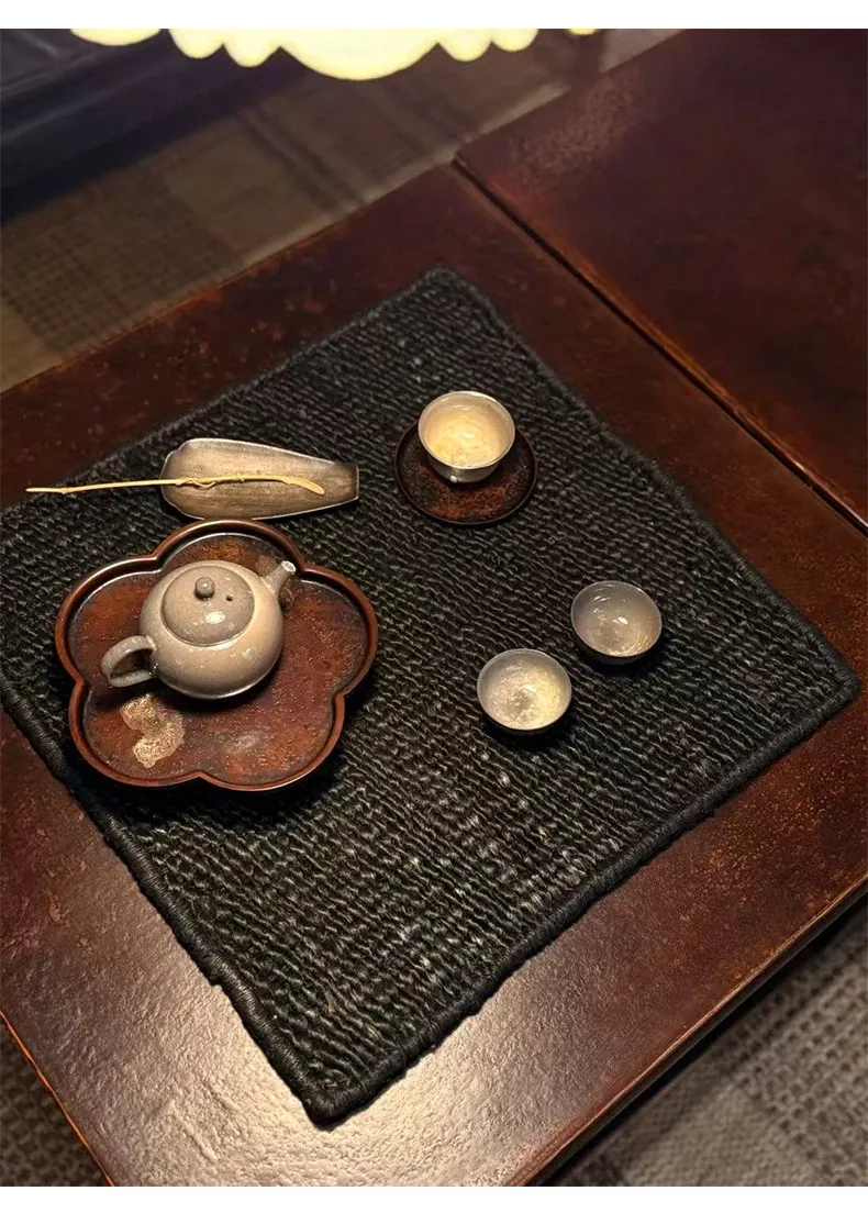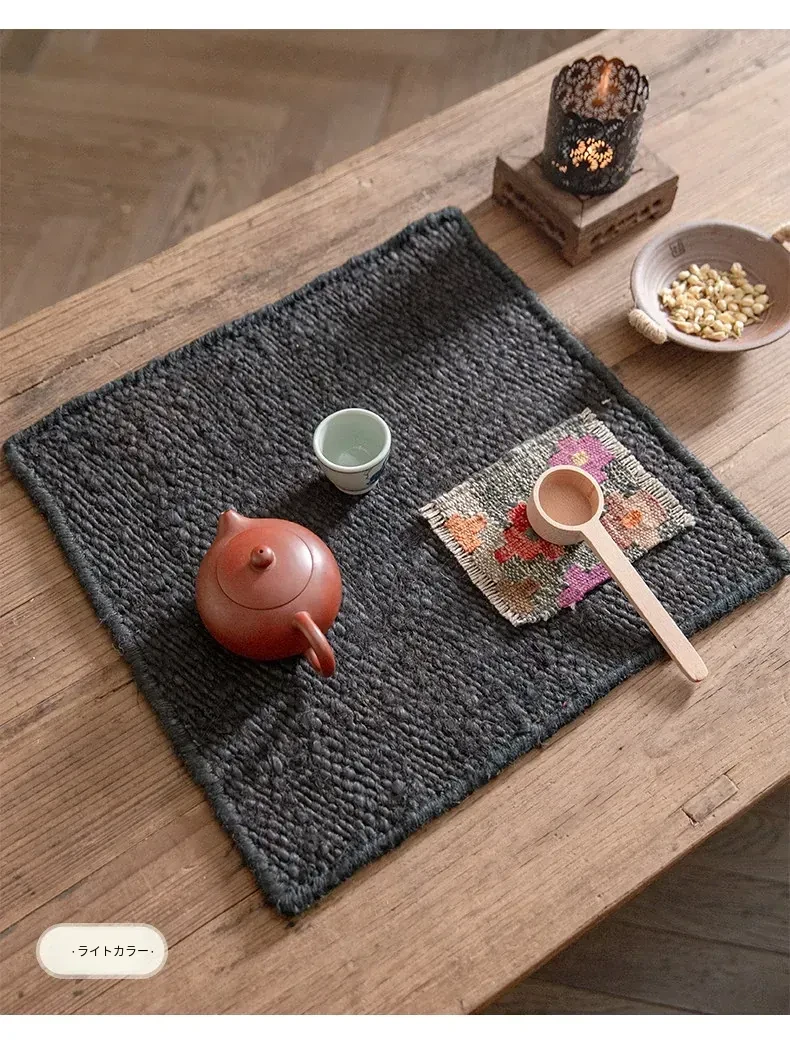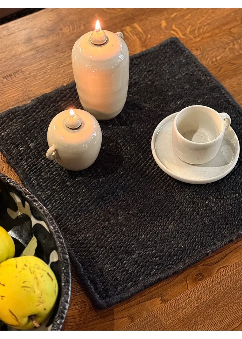 視覚と味覚を楽しむ!輸入ハンドメイドの黒いジュート製禅スタイル新中式茶席テーブルマット。断熱効果抜群の両面デザインで、インテリアを引き立てるおしゃれなダイニングアイテム!