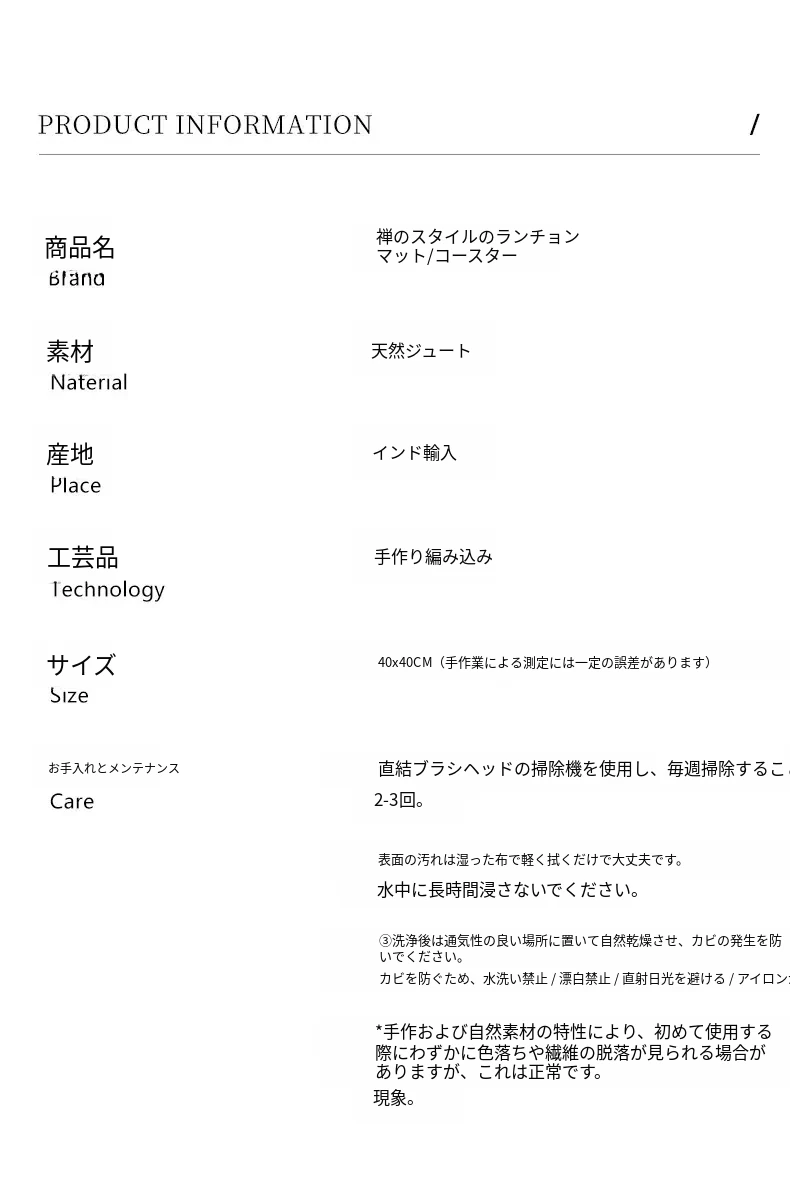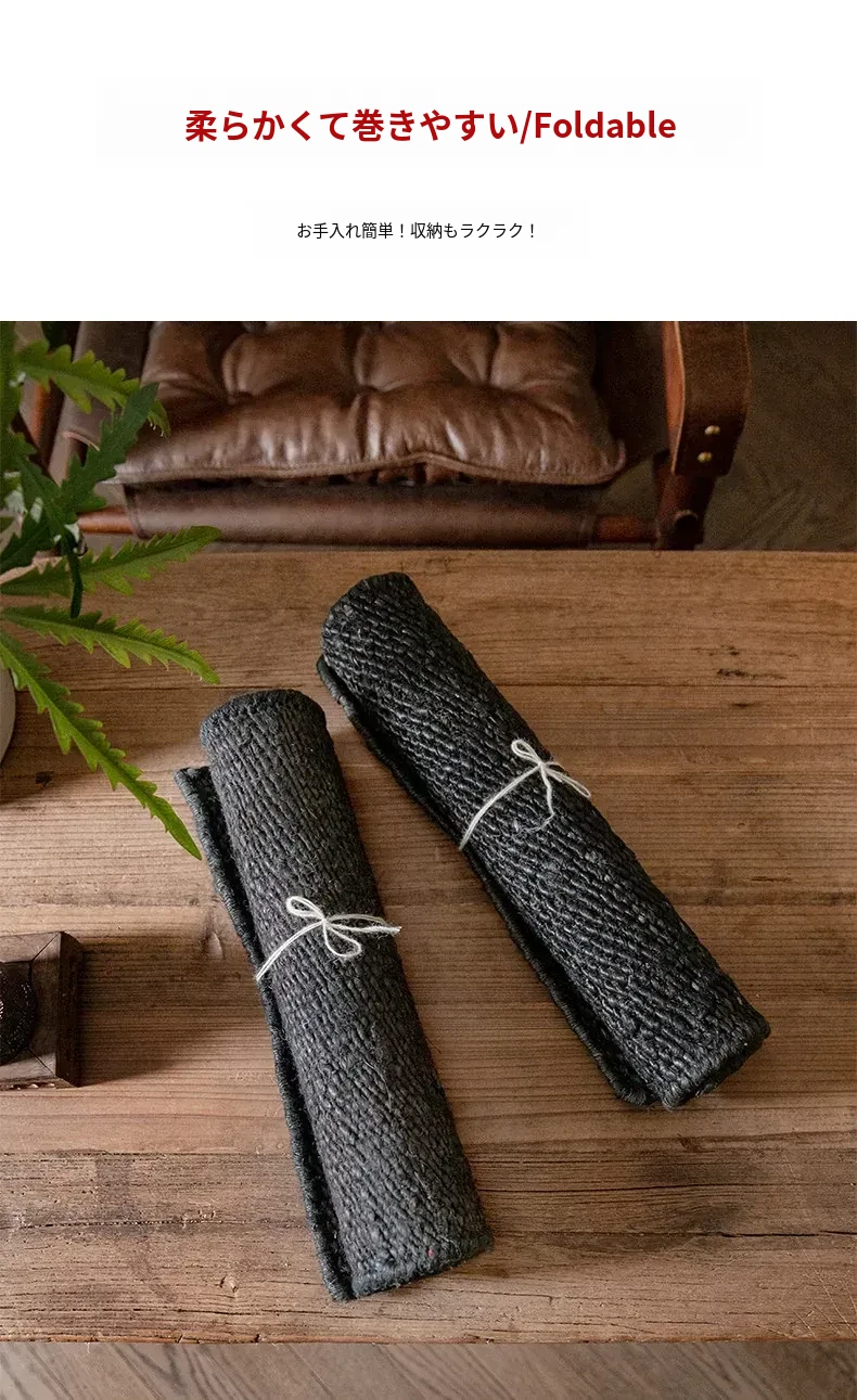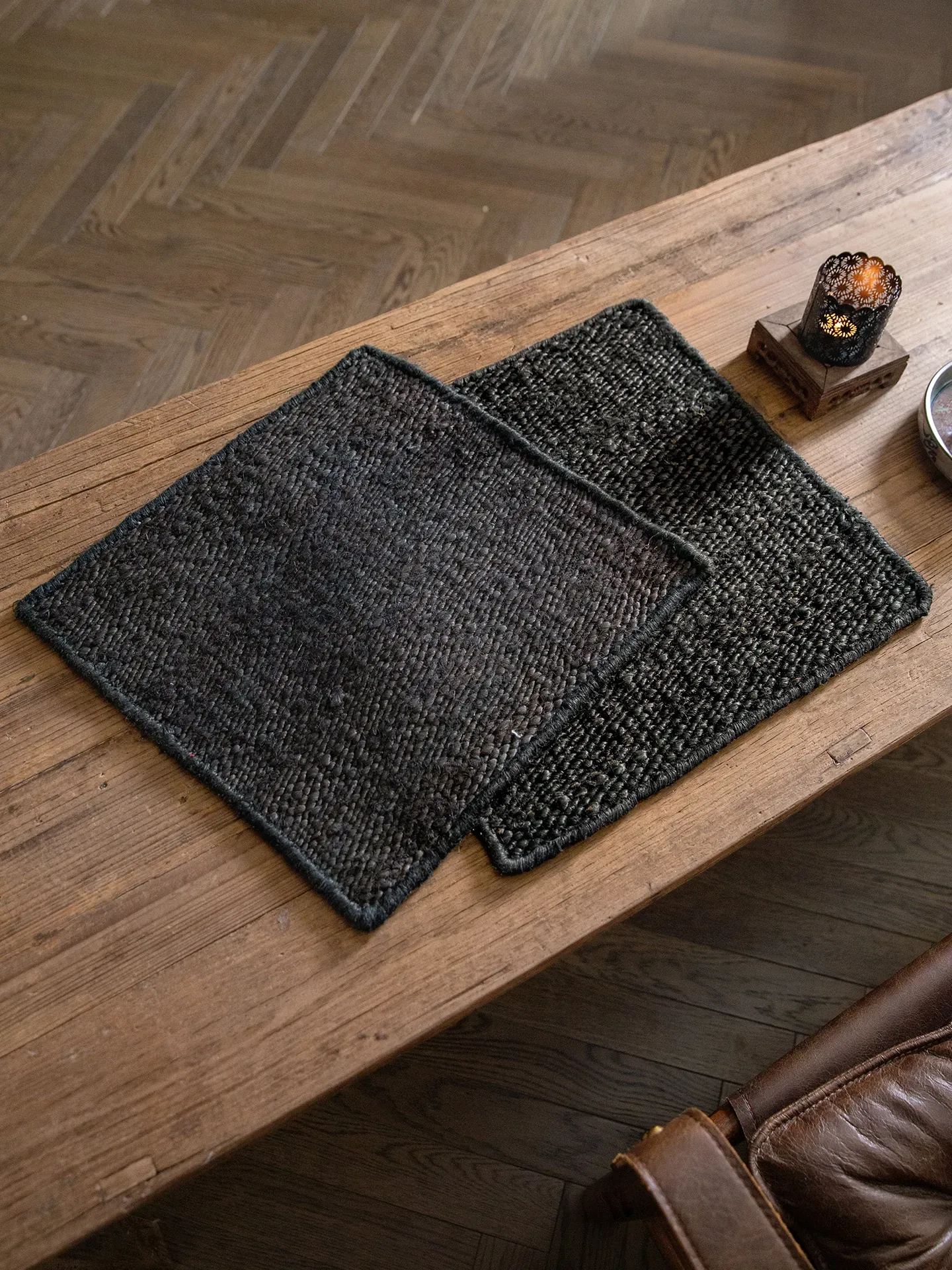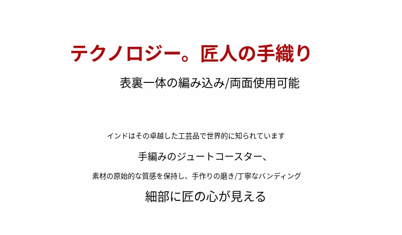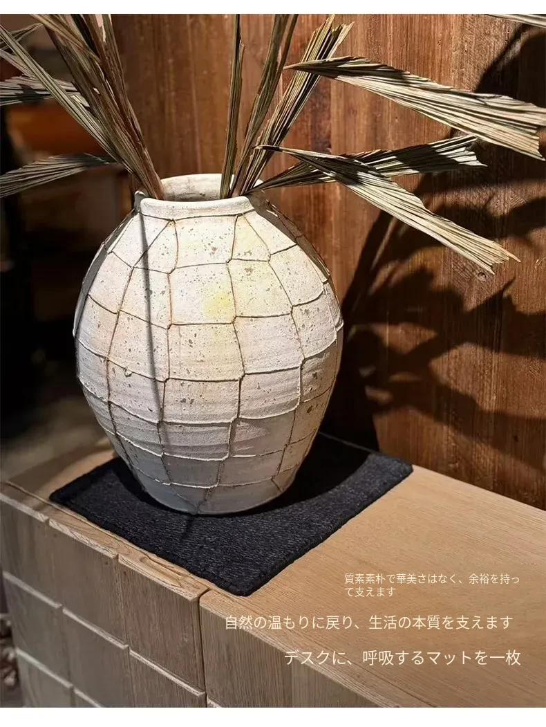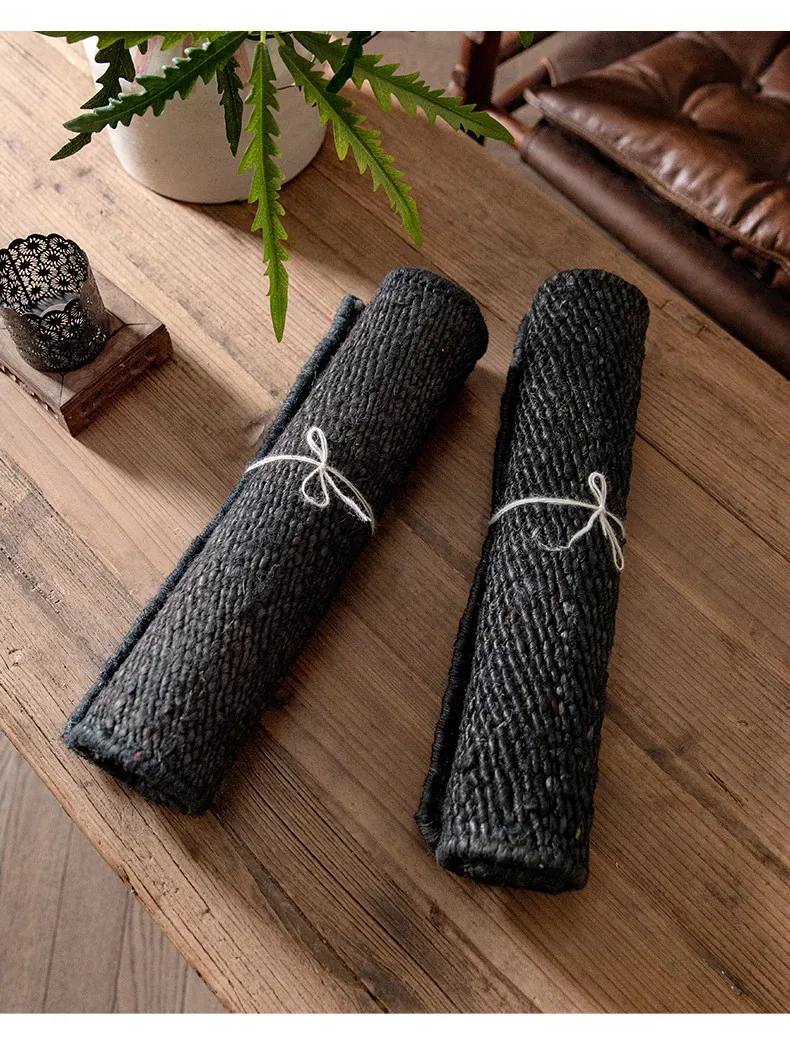 視覚と味覚を楽しむ!輸入ハンドメイドの黒いジュート製禅スタイル新中式茶席テーブルマット。断熱効果抜群の両面デザインで、インテリアを引き立てるおしゃれなダイニングアイテム!