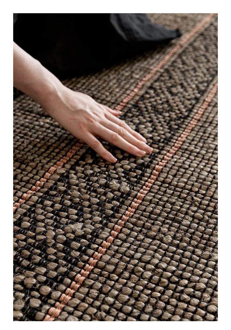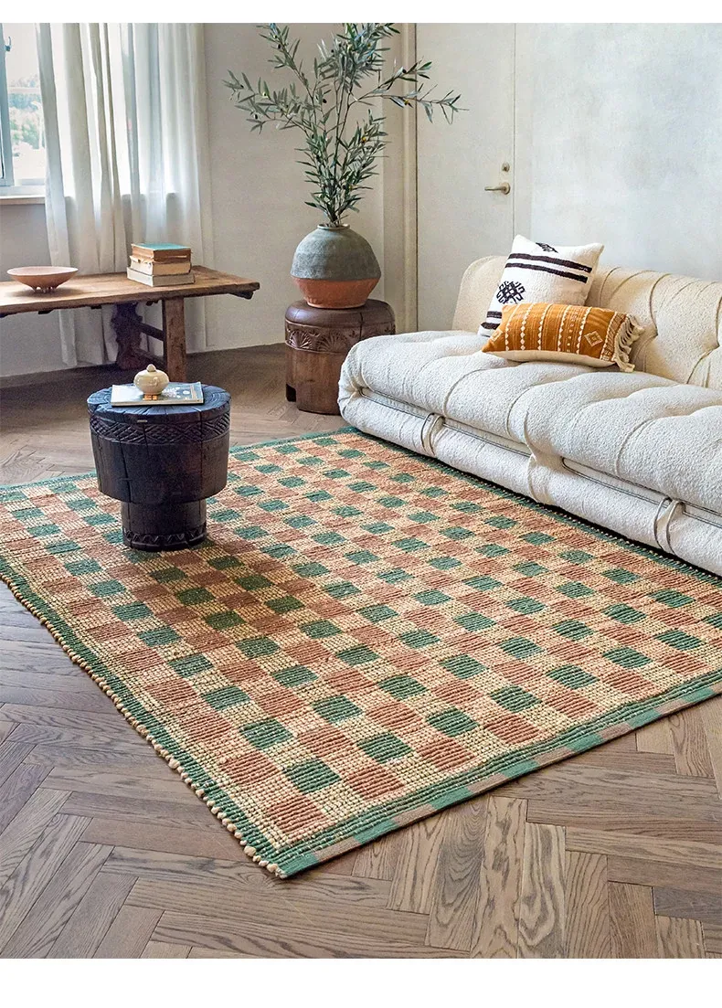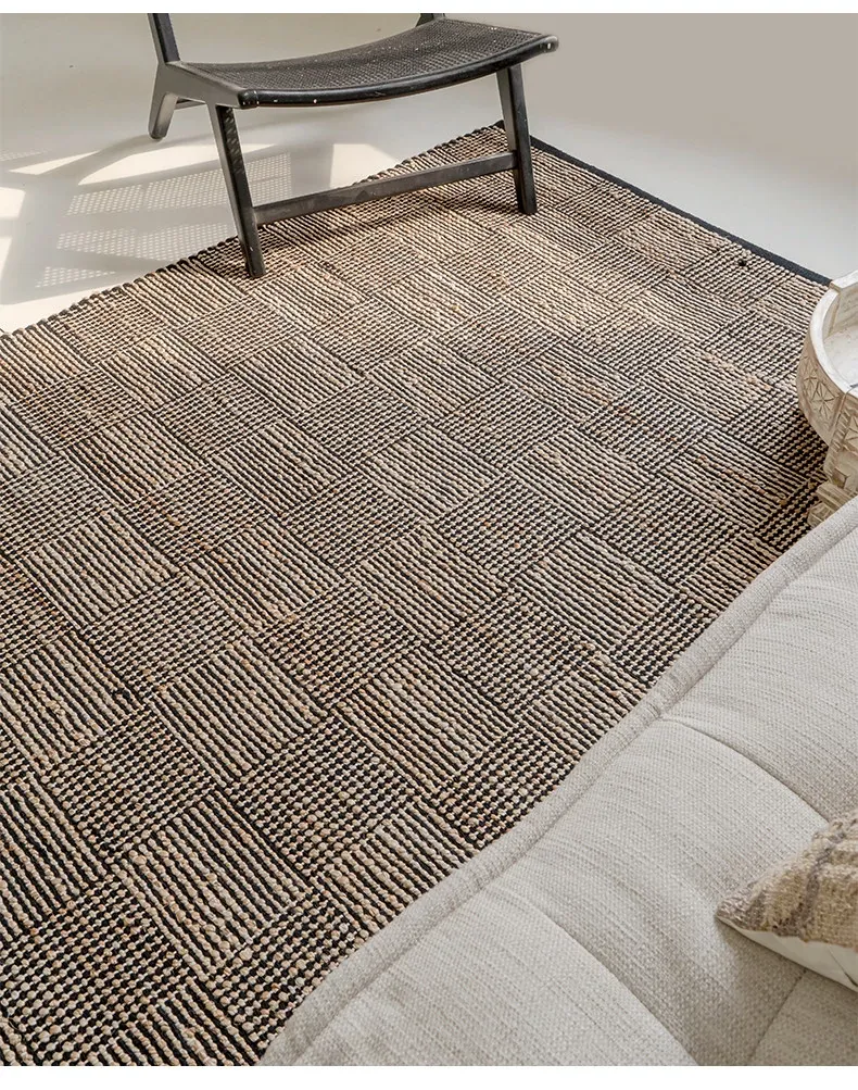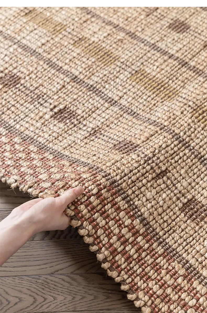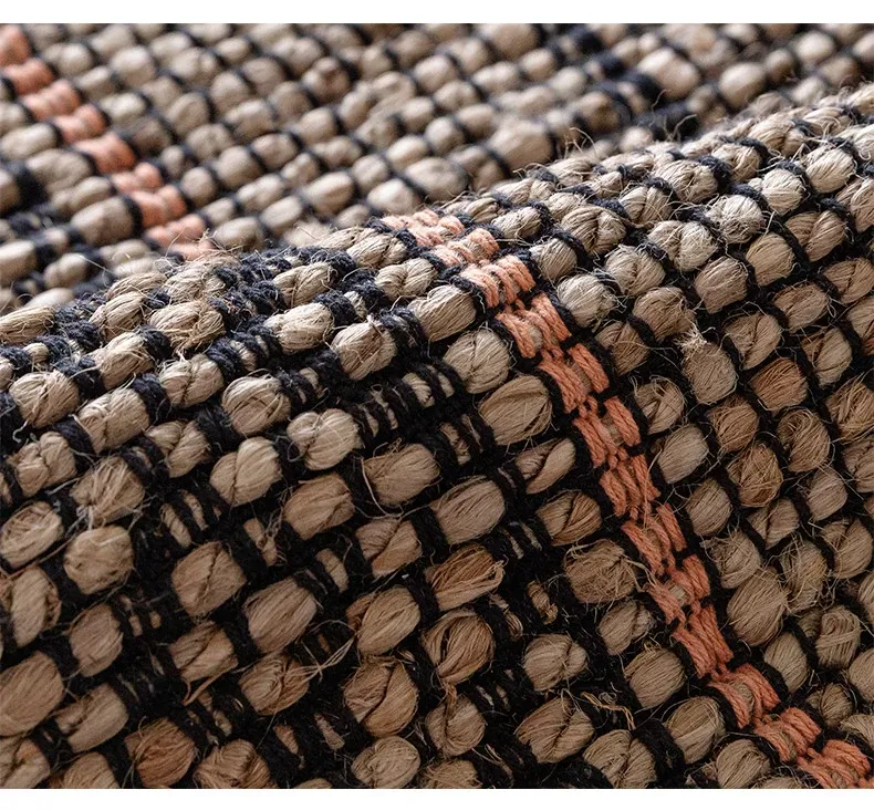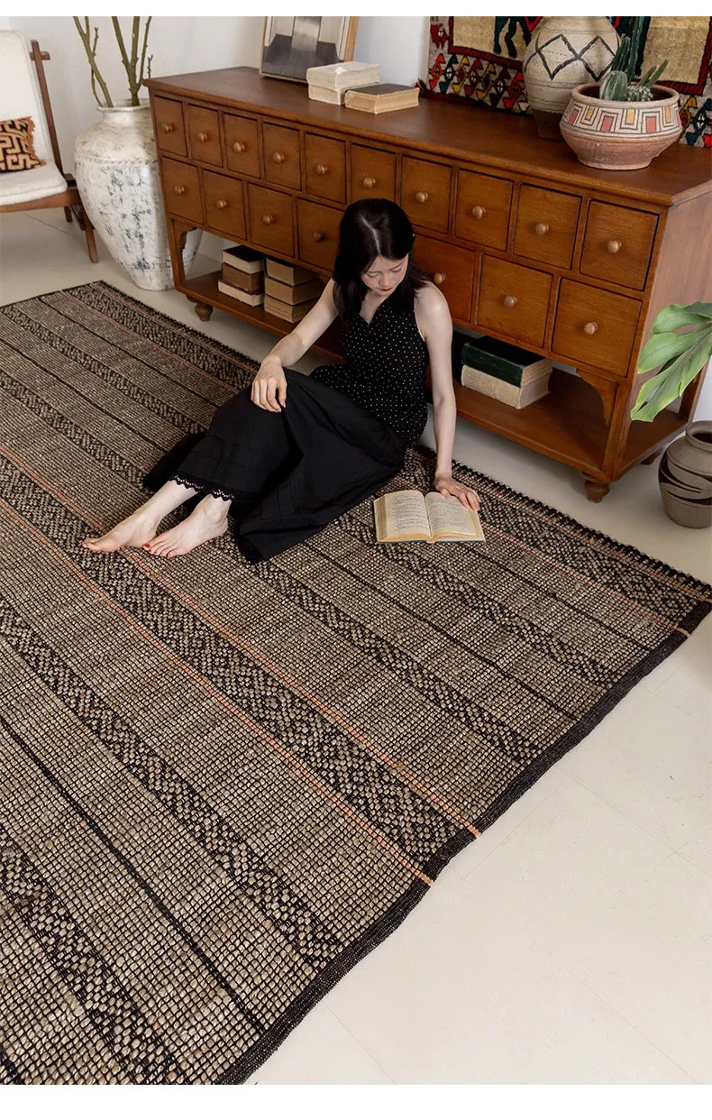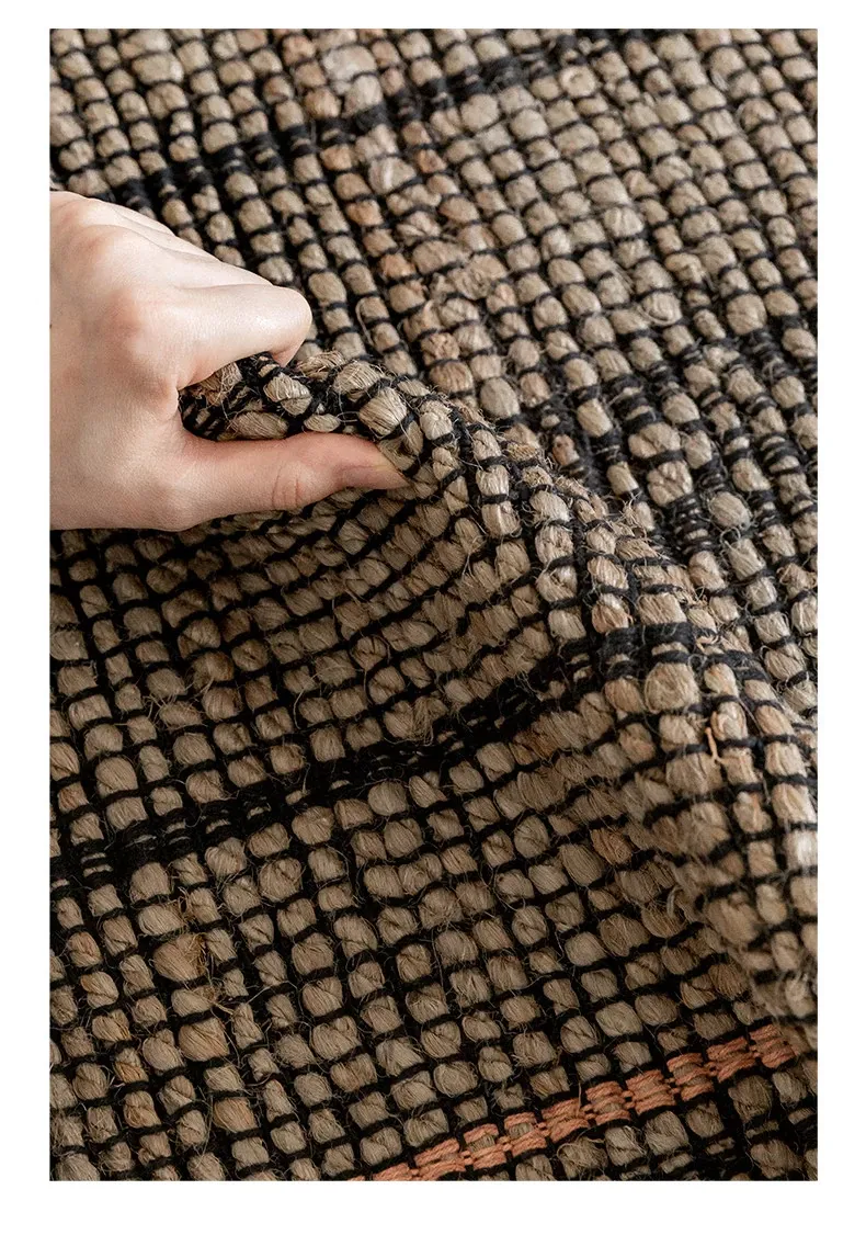 視覚と味覚のハーモニーを楽しむ!無接着剤の輸入ジュートカーペット、手編みの和風デザインで、リビングのテーブルを引き立てるイタリアンエレガンス。天然素材の温もりを感じて、上質な空間を演出します。