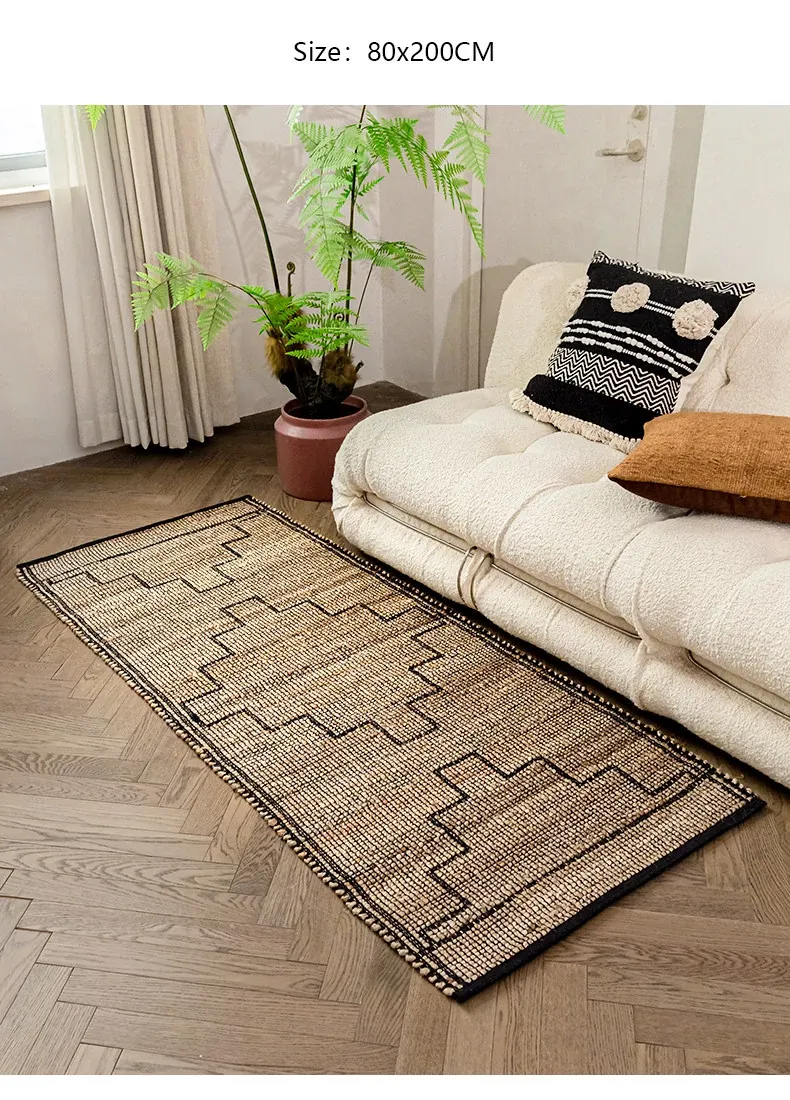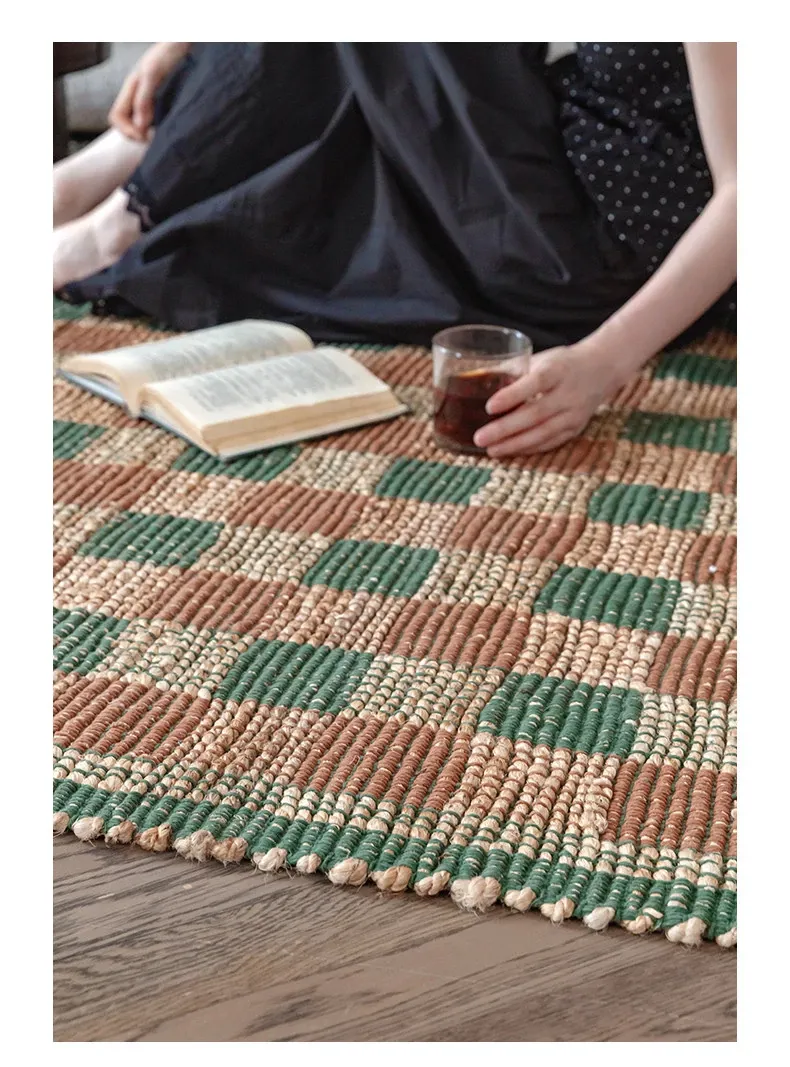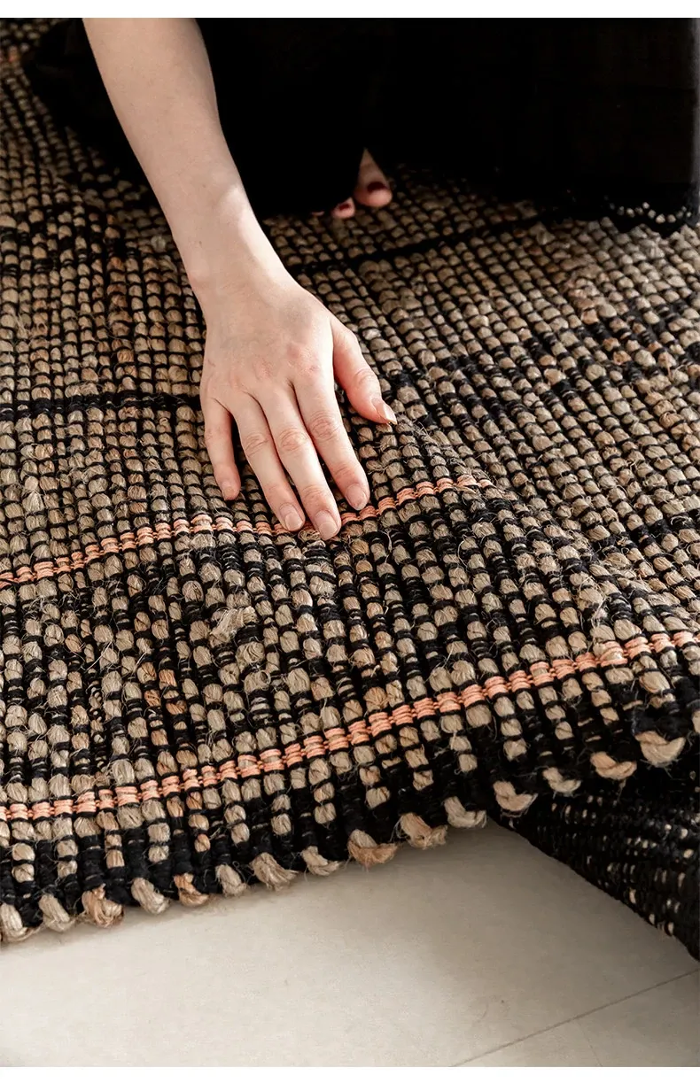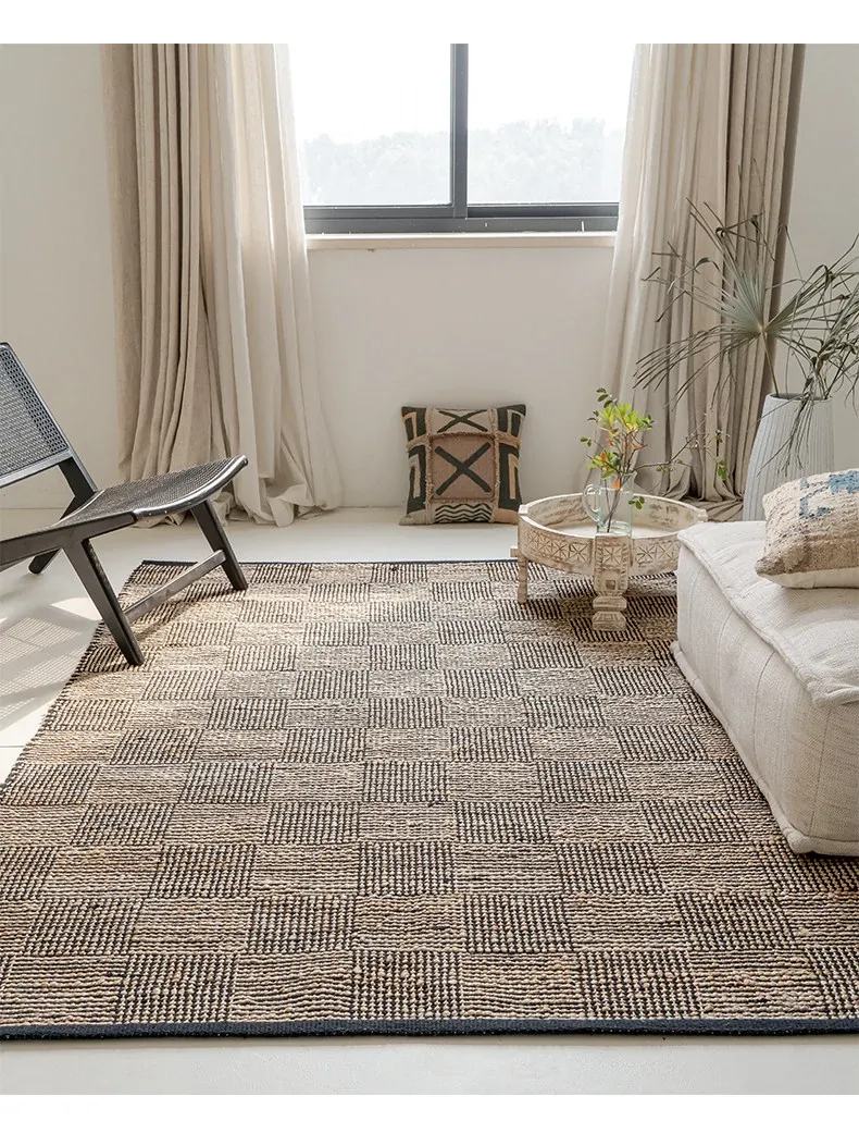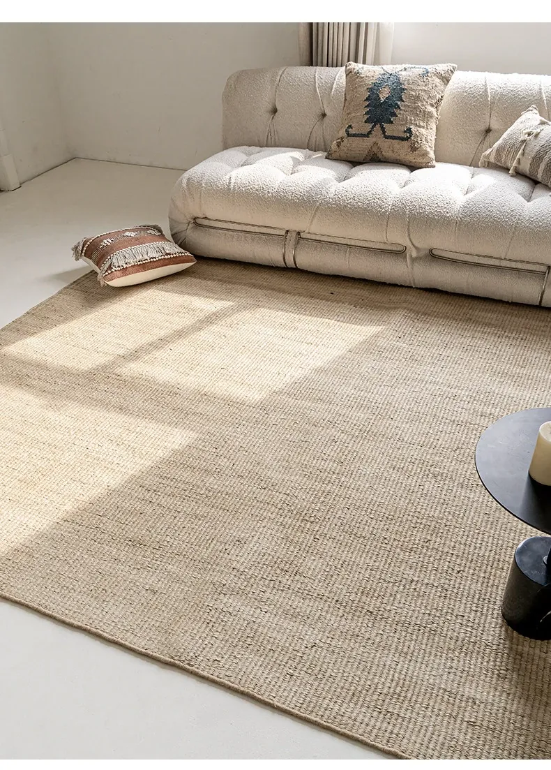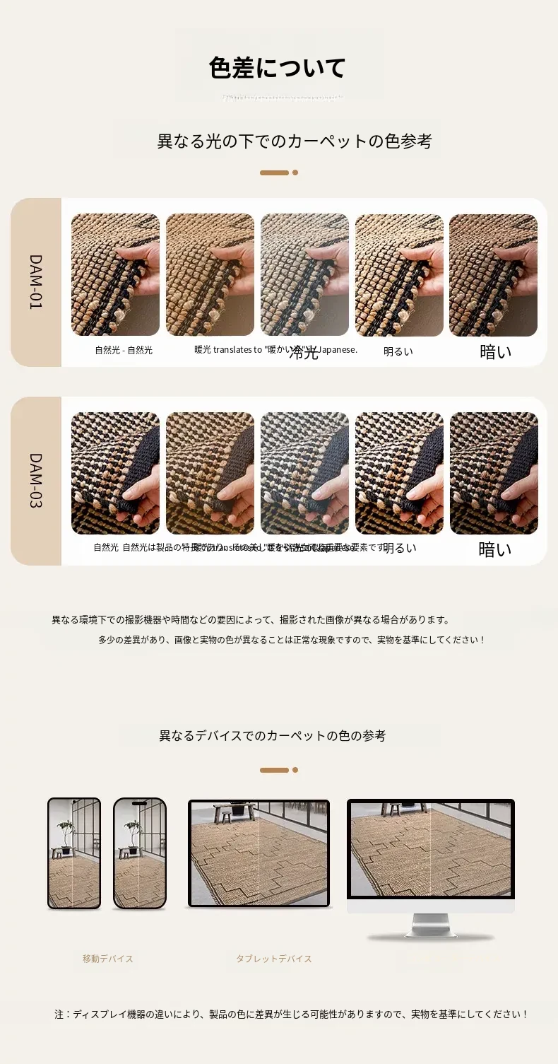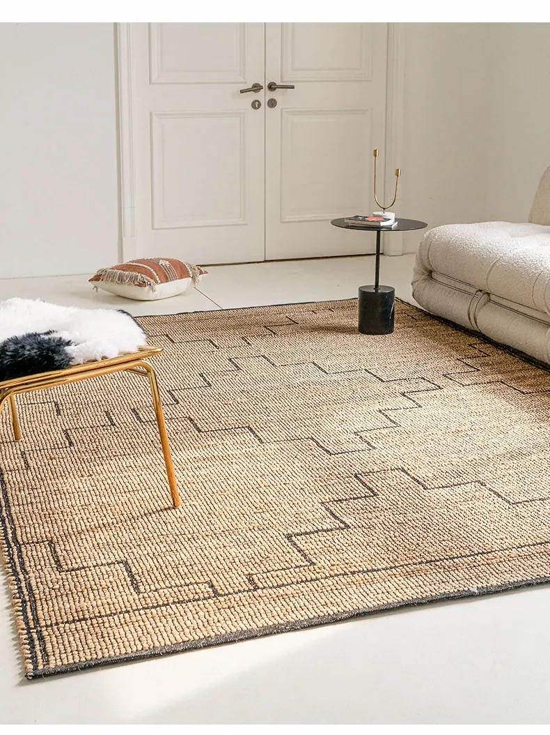 視覚と味覚のハーモニーを楽しむ!無接着剤の輸入ジュートカーペット、手編みの和風デザインで、リビングのテーブルを引き立てるイタリアンエレガンス。天然素材の温もりを感じて、上質な空間を演出します。