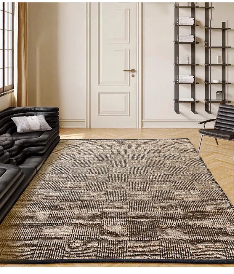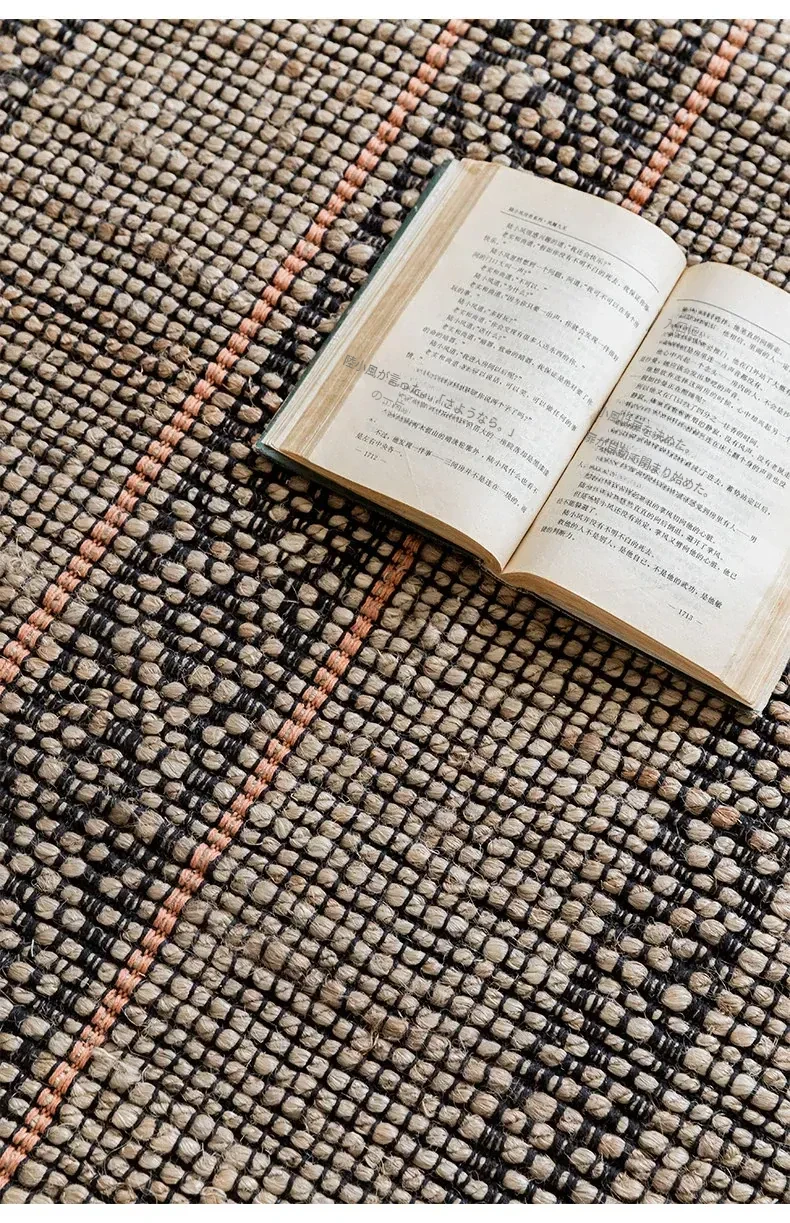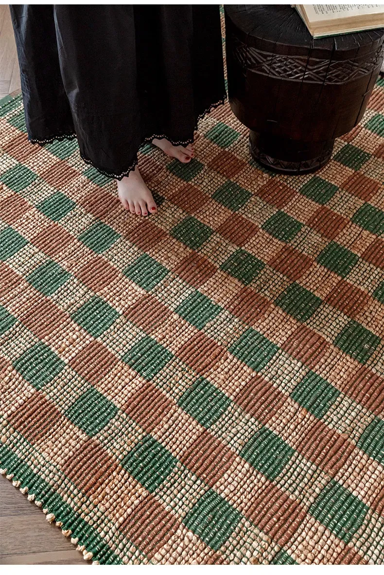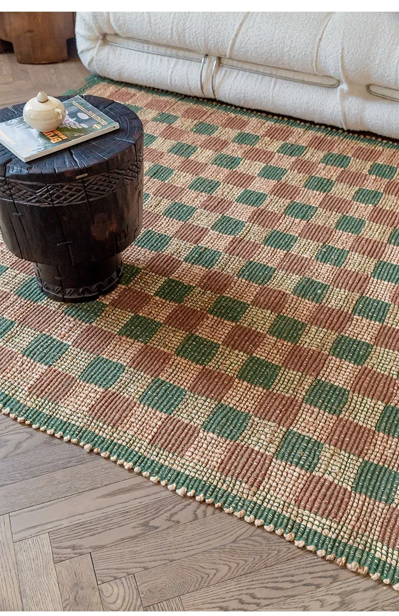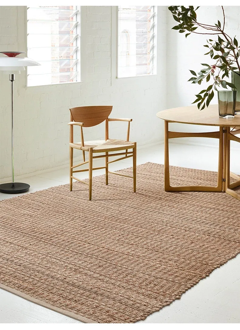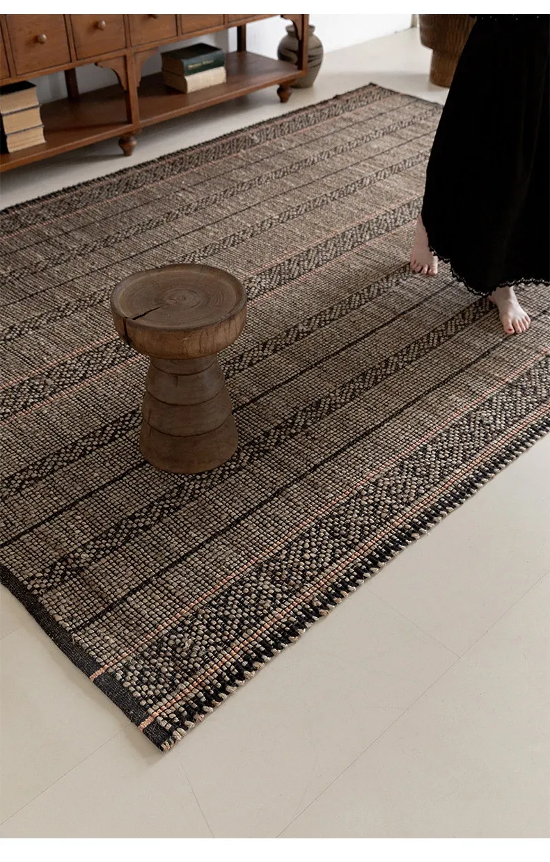 視覚と味覚のハーモニーを楽しむ!無接着剤の輸入ジュートカーペット、手編みの和風デザインで、リビングのテーブルを引き立てるイタリアンエレガンス。天然素材の温もりを感じて、上質な空間を演出します。