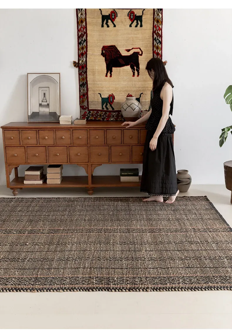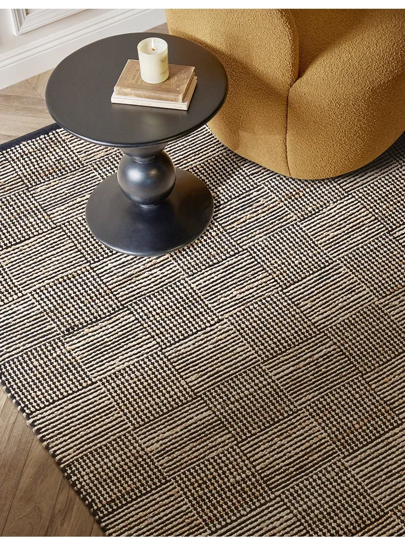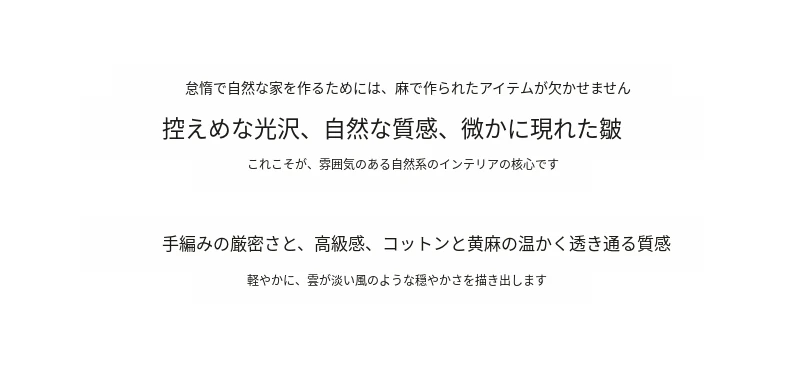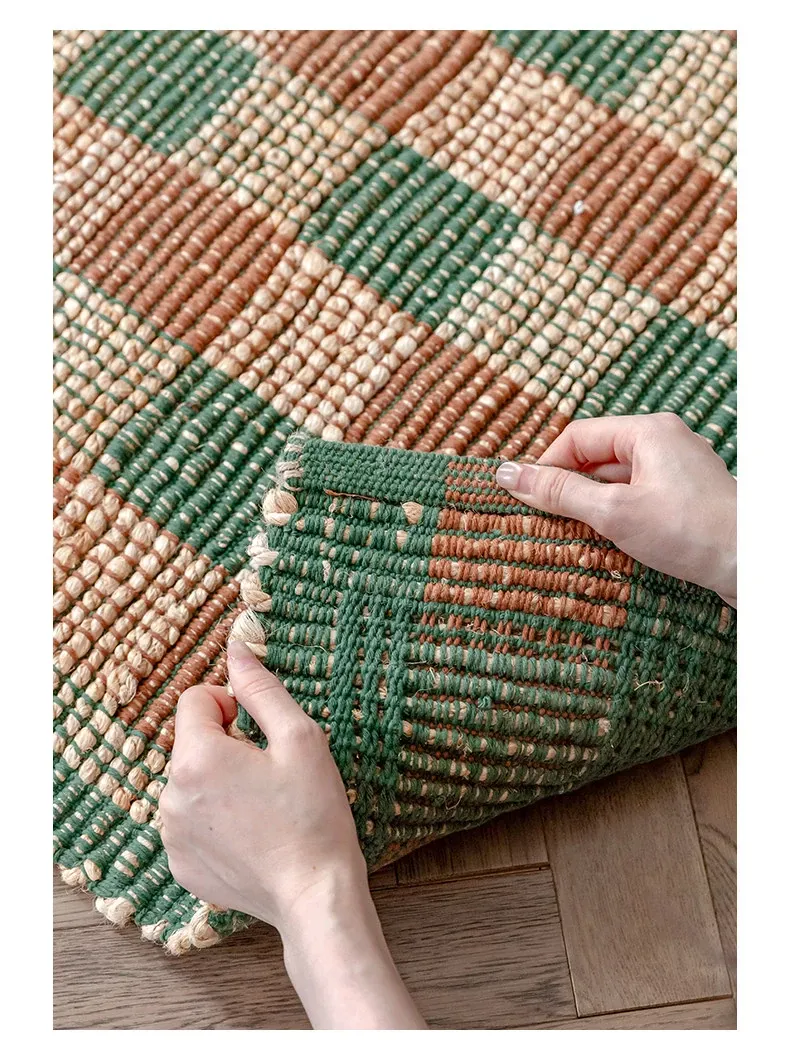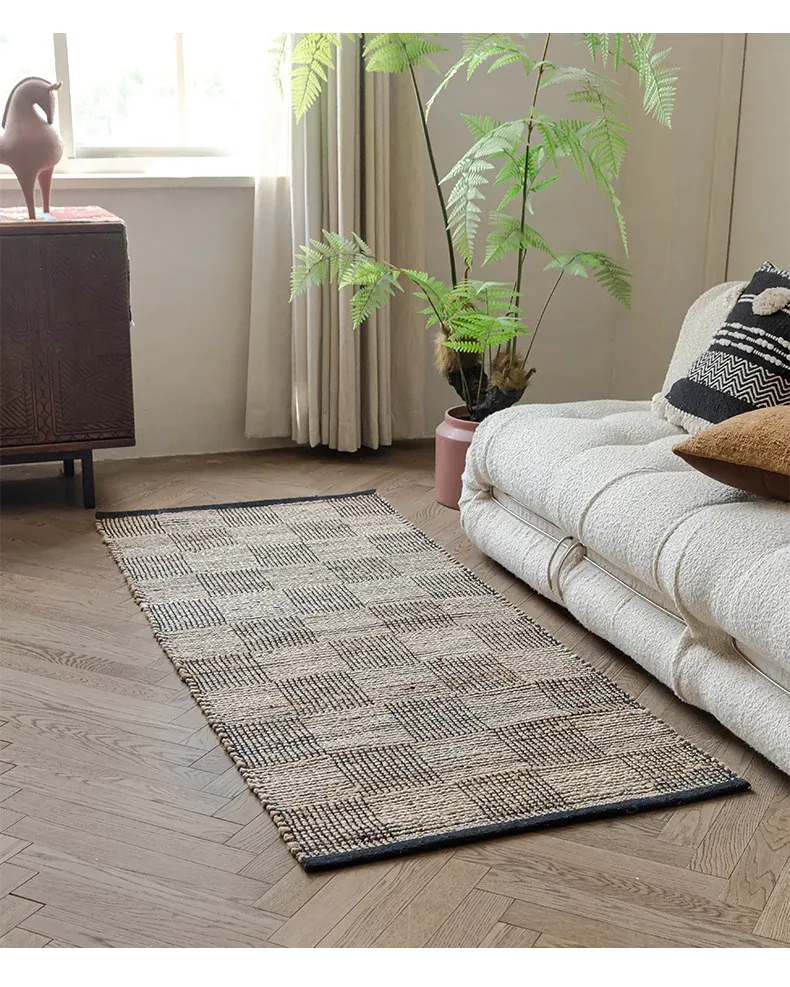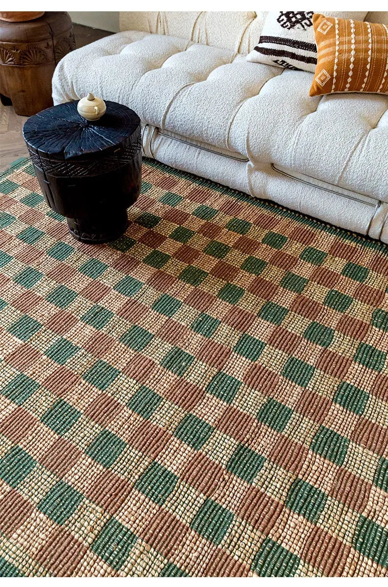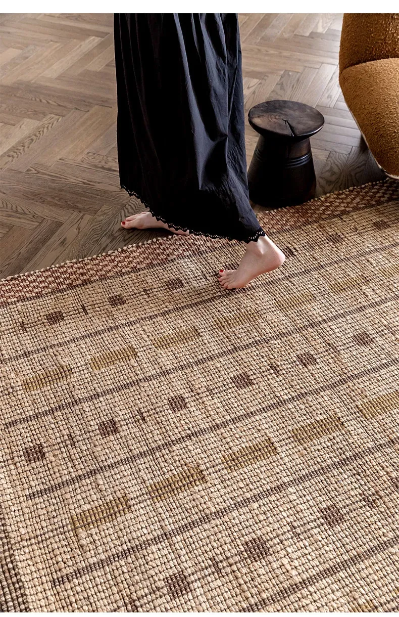 視覚と味覚のハーモニーを楽しむ!無接着剤の輸入ジュートカーペット、手編みの和風デザインで、リビングのテーブルを引き立てるイタリアンエレガンス。天然素材の温もりを感じて、上質な空間を演出します。