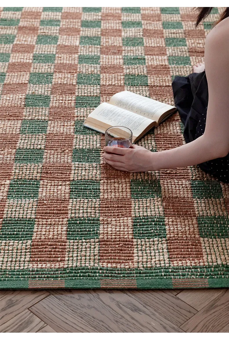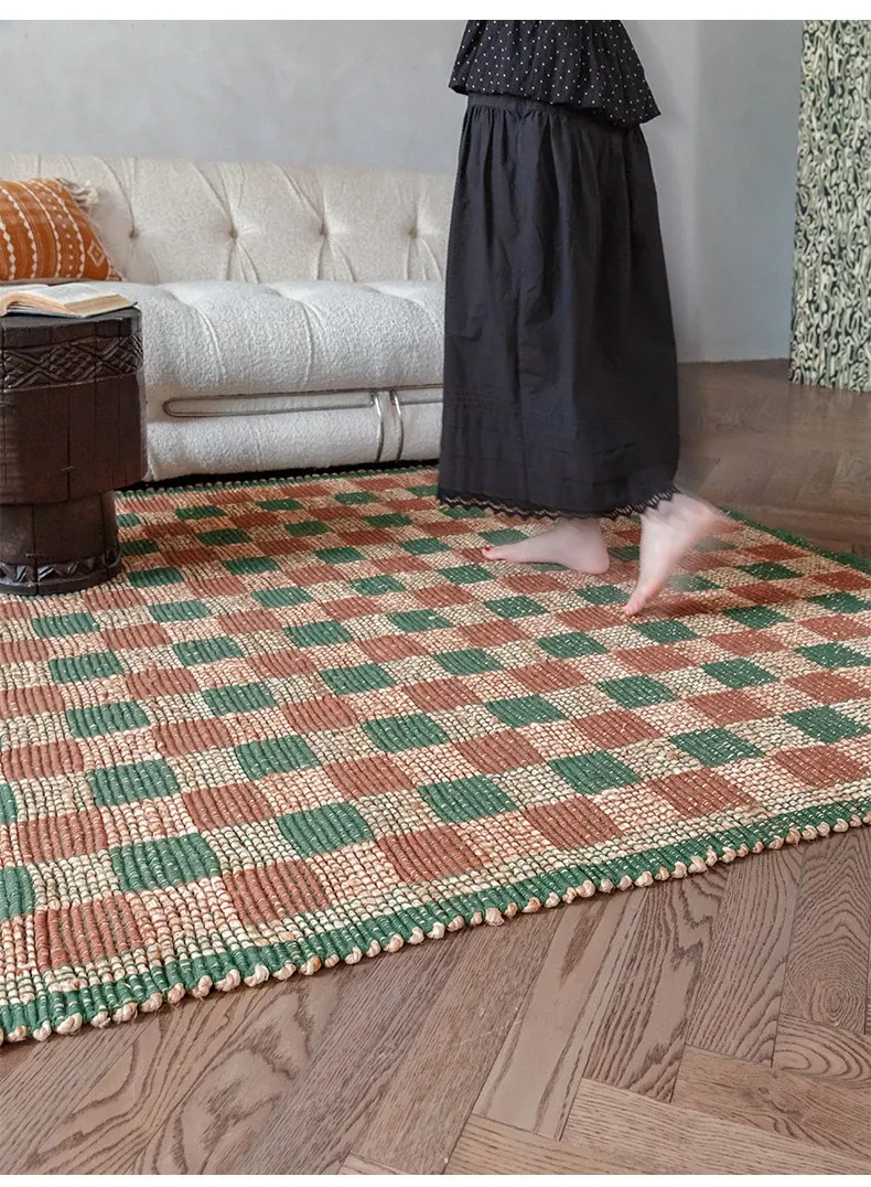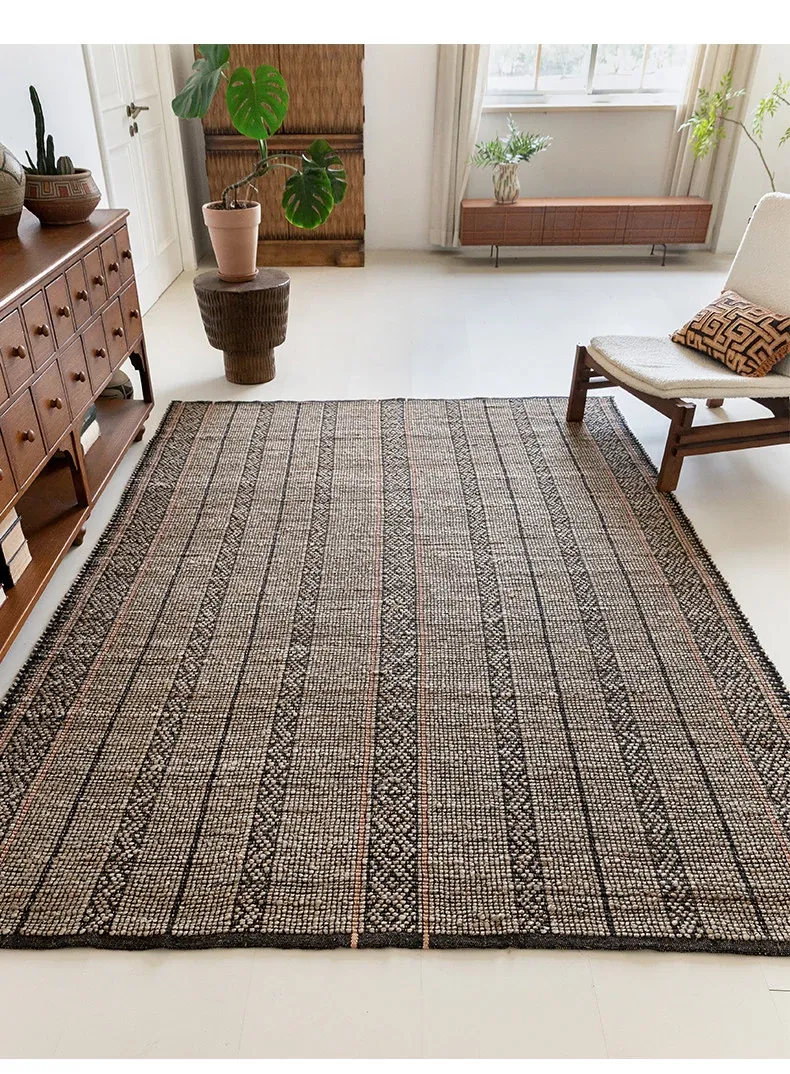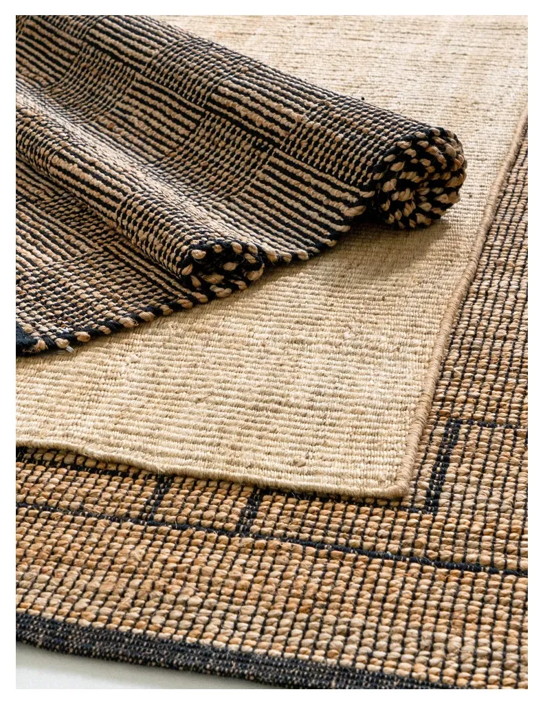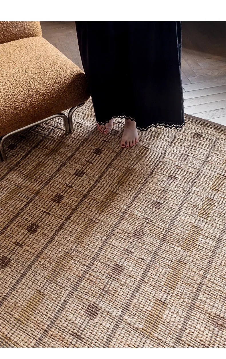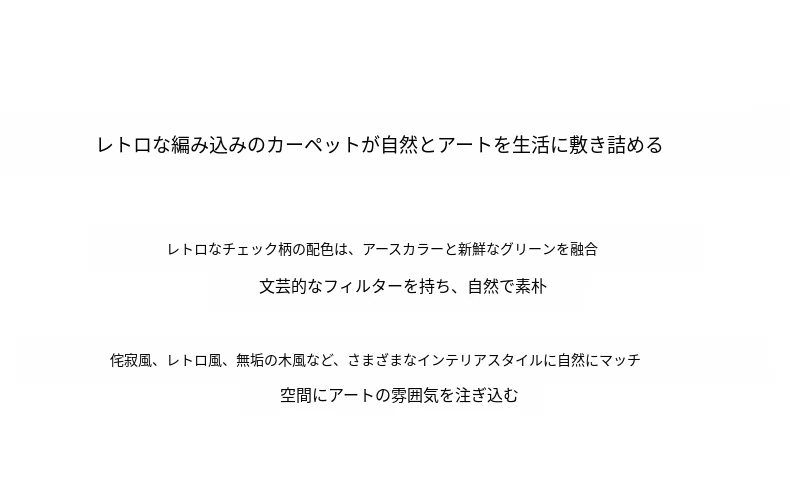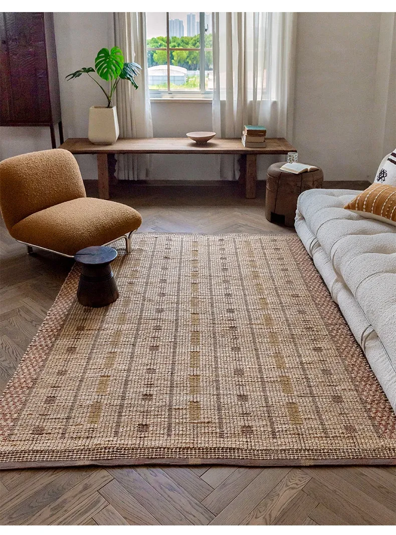 視覚と味覚のハーモニーを楽しむ!無接着剤の輸入ジュートカーペット、手編みの和風デザインで、リビングのテーブルを引き立てるイタリアンエレガンス。天然素材の温もりを感じて、上質な空間を演出します。