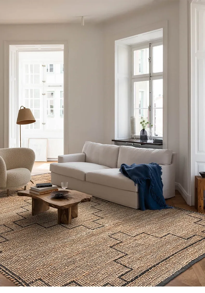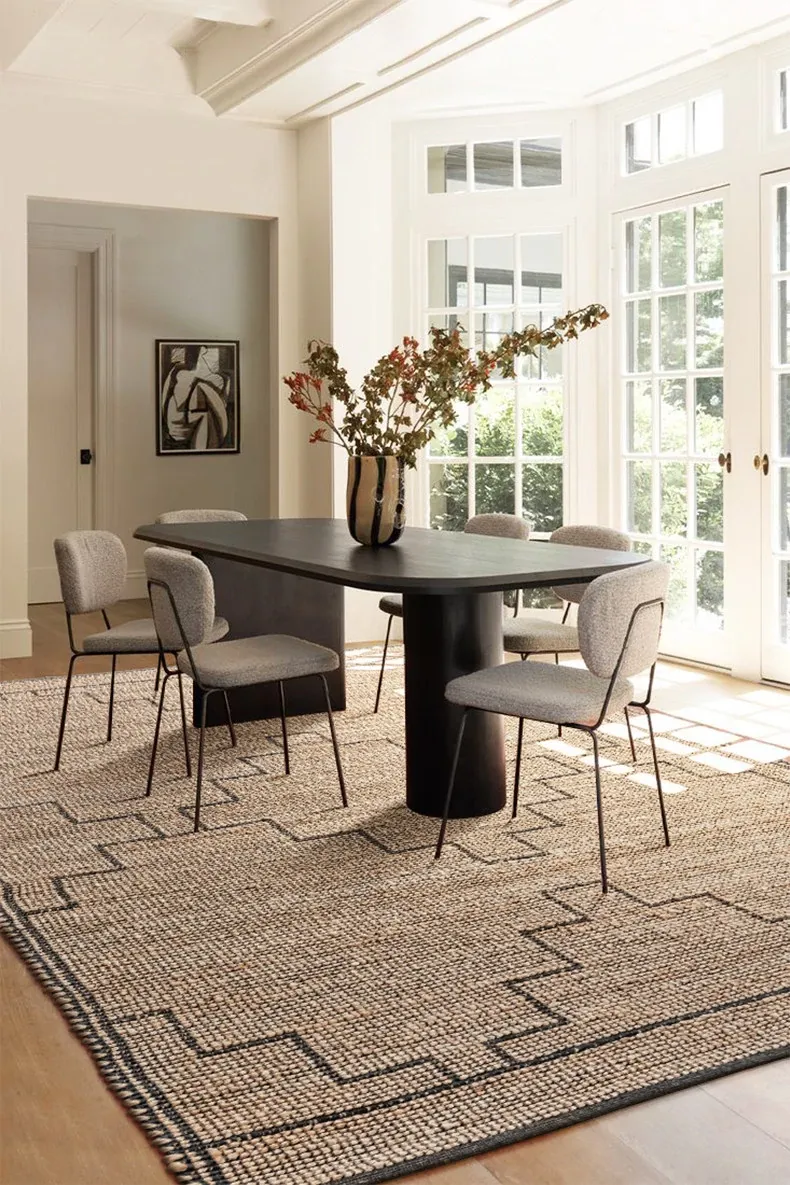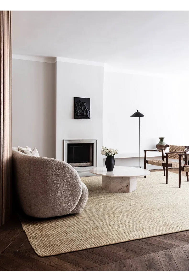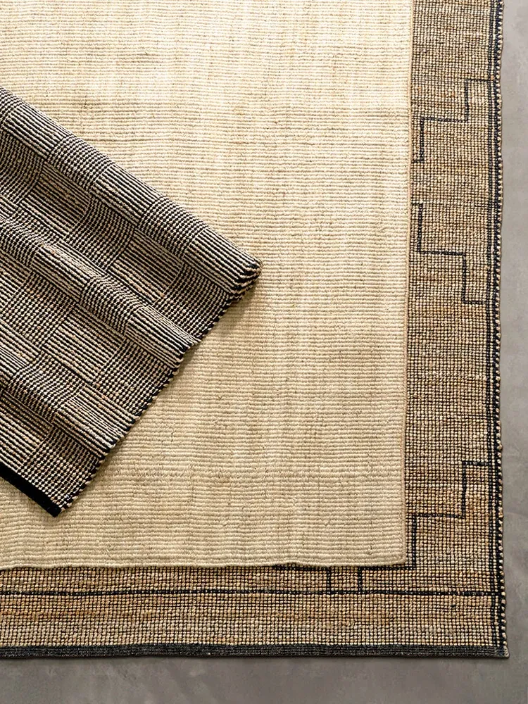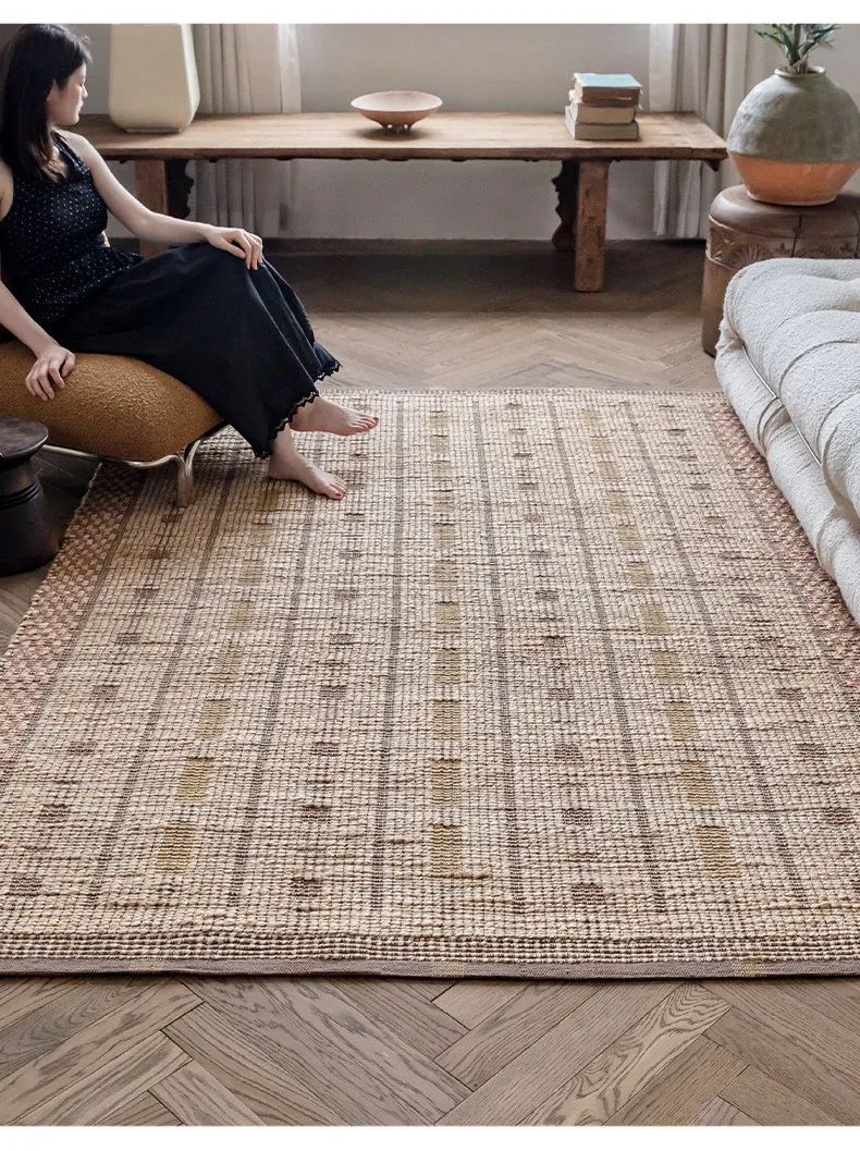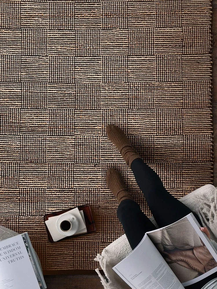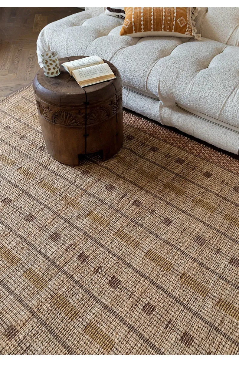 視覚と味覚のハーモニーを楽しむ!無接着剤の輸入ジュートカーペット、手編みの和風デザインで、リビングのテーブルを引き立てるイタリアンエレガンス。天然素材の温もりを感じて、上質な空間を演出します。