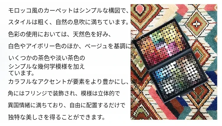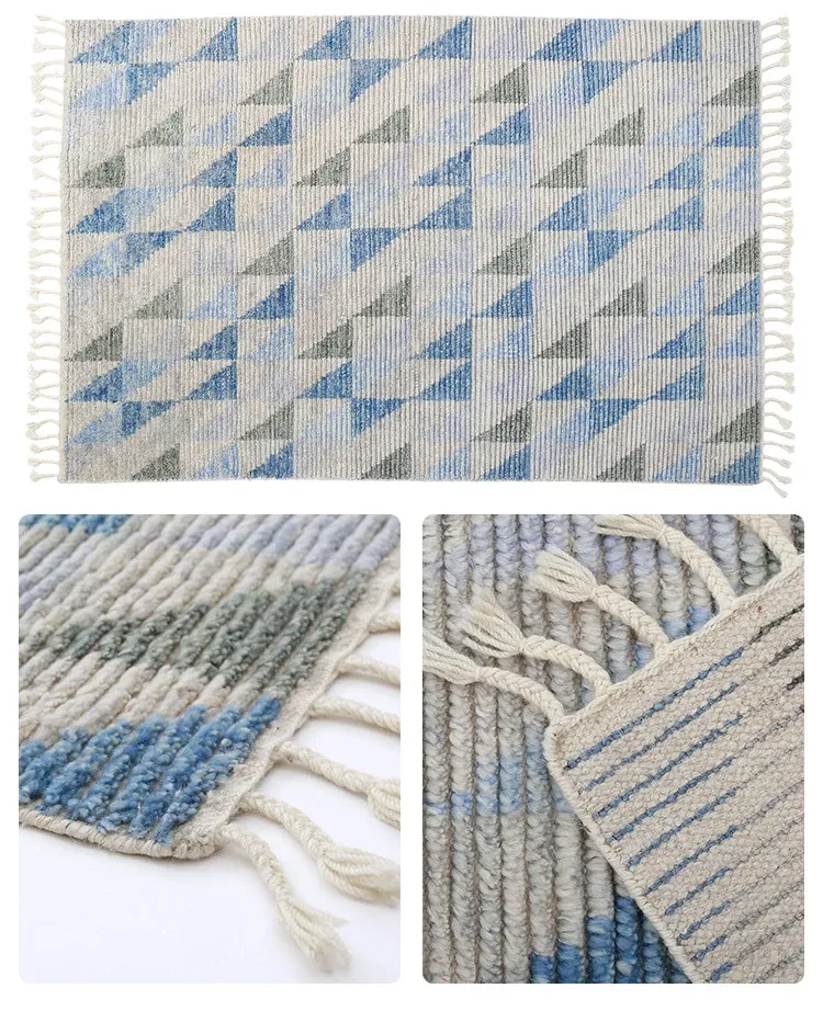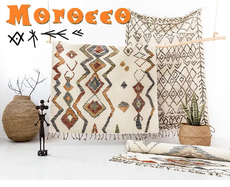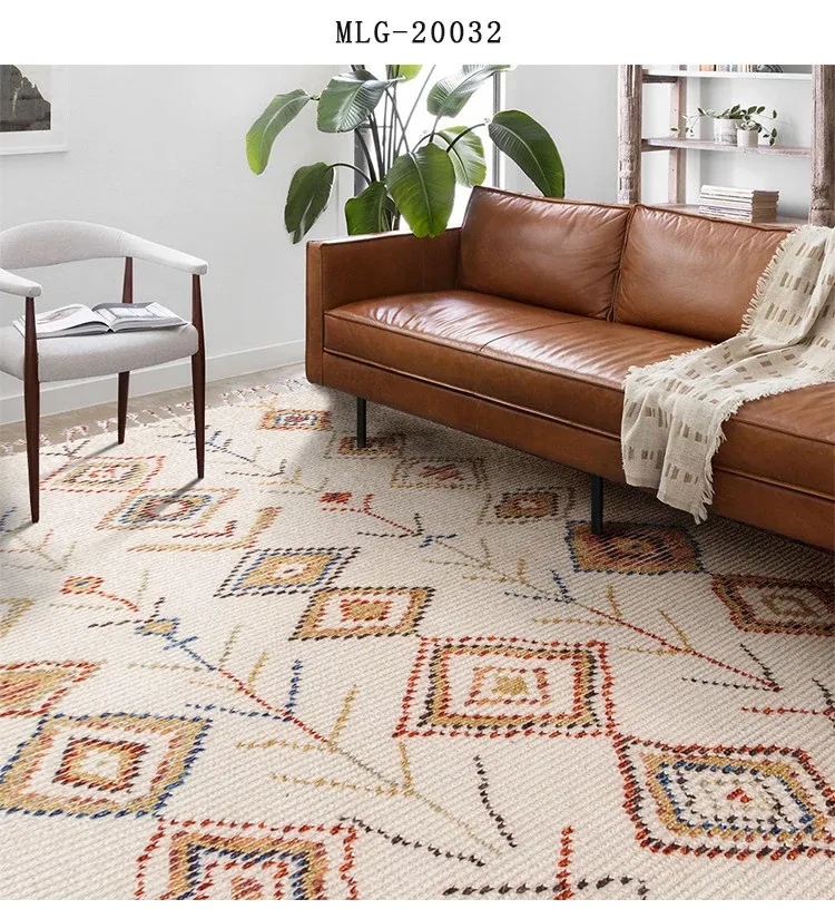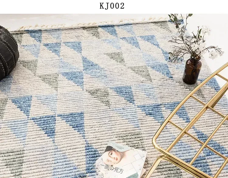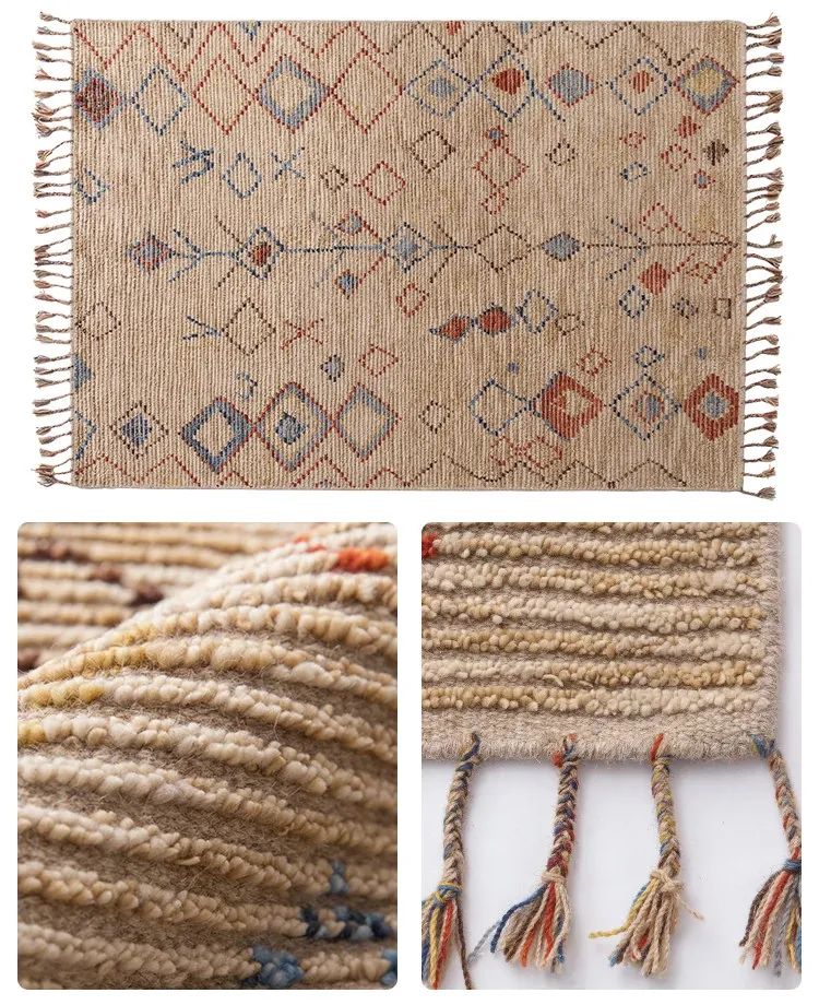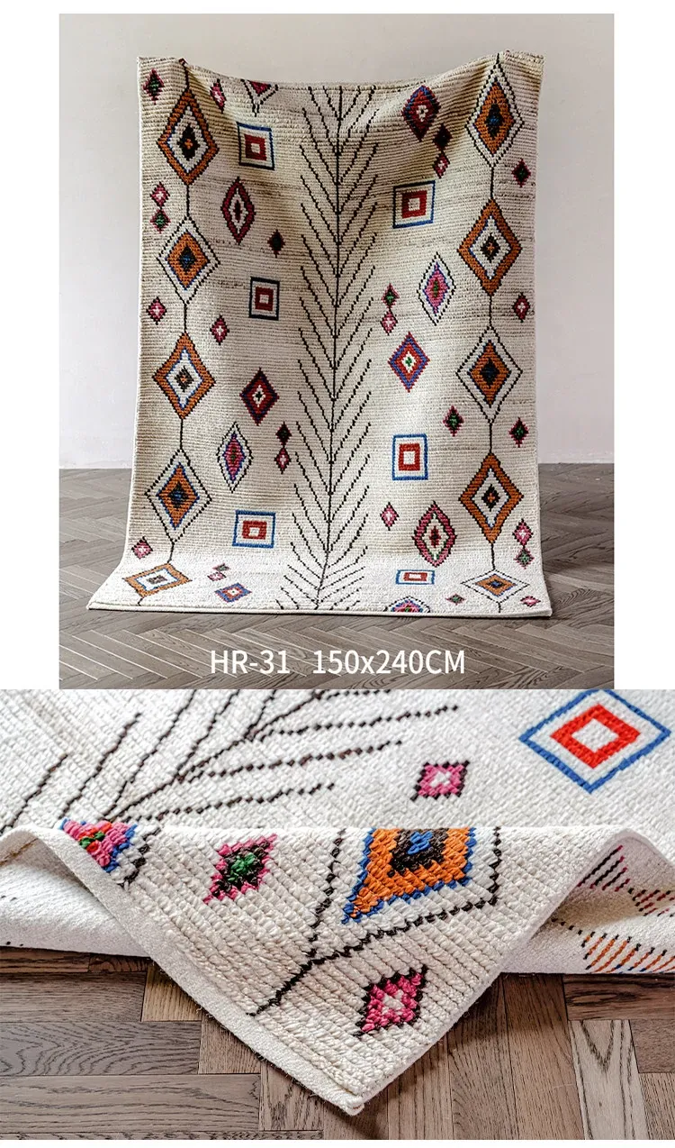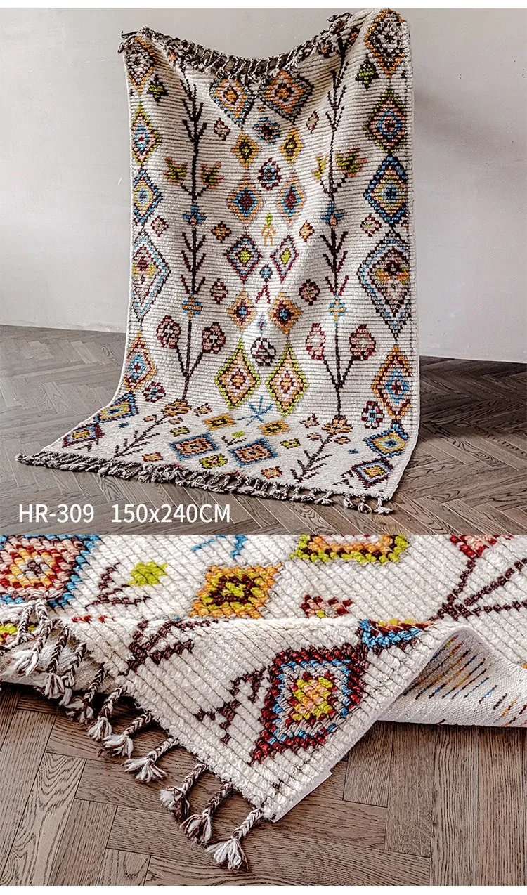 ビジュアルな味わいを持つ北欧輸入の現代的でシンプルな中式リビング用モロッコミックススタイルの手作りウールラグ。心地よい温もりと洗練されたデザインで、あなたの空間を特別に演出します!