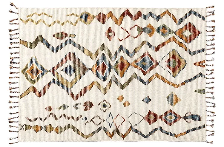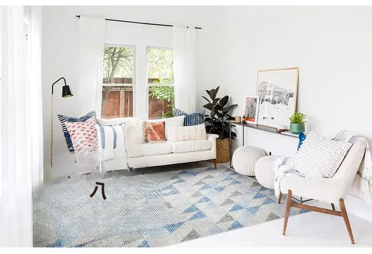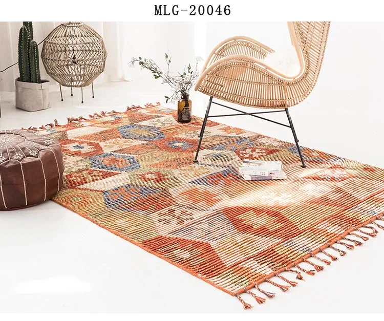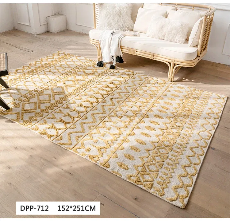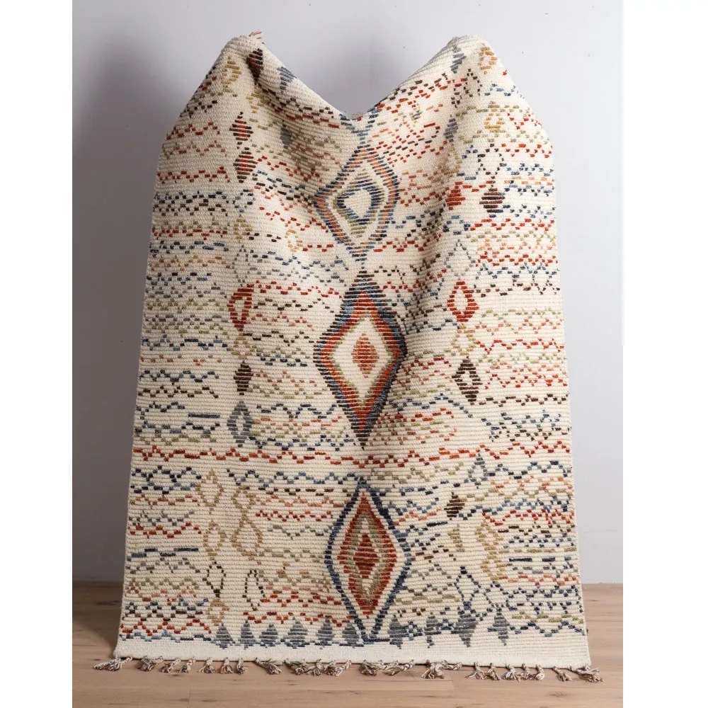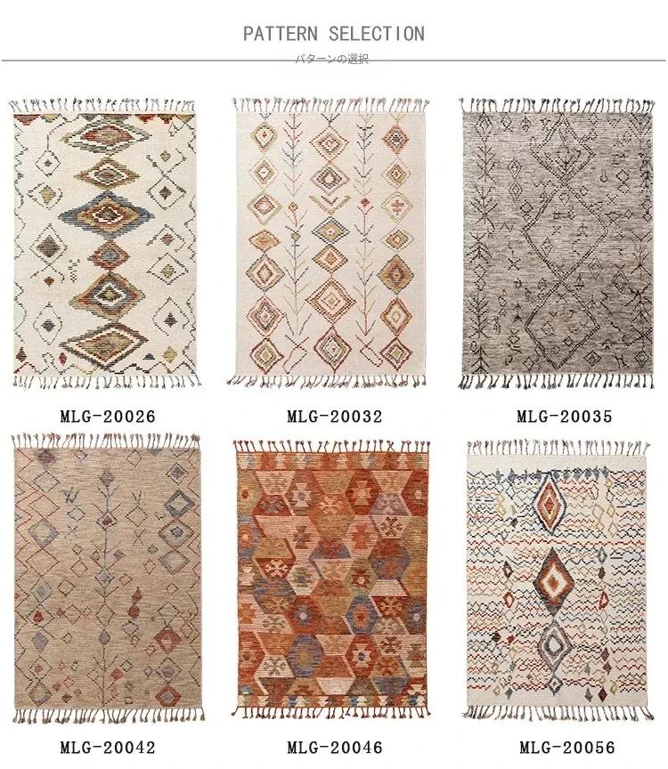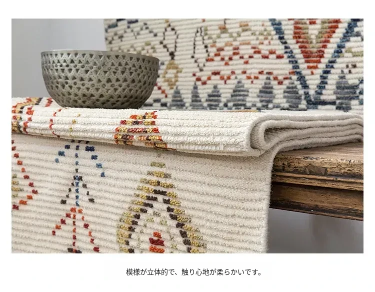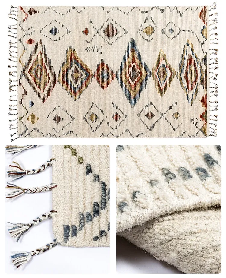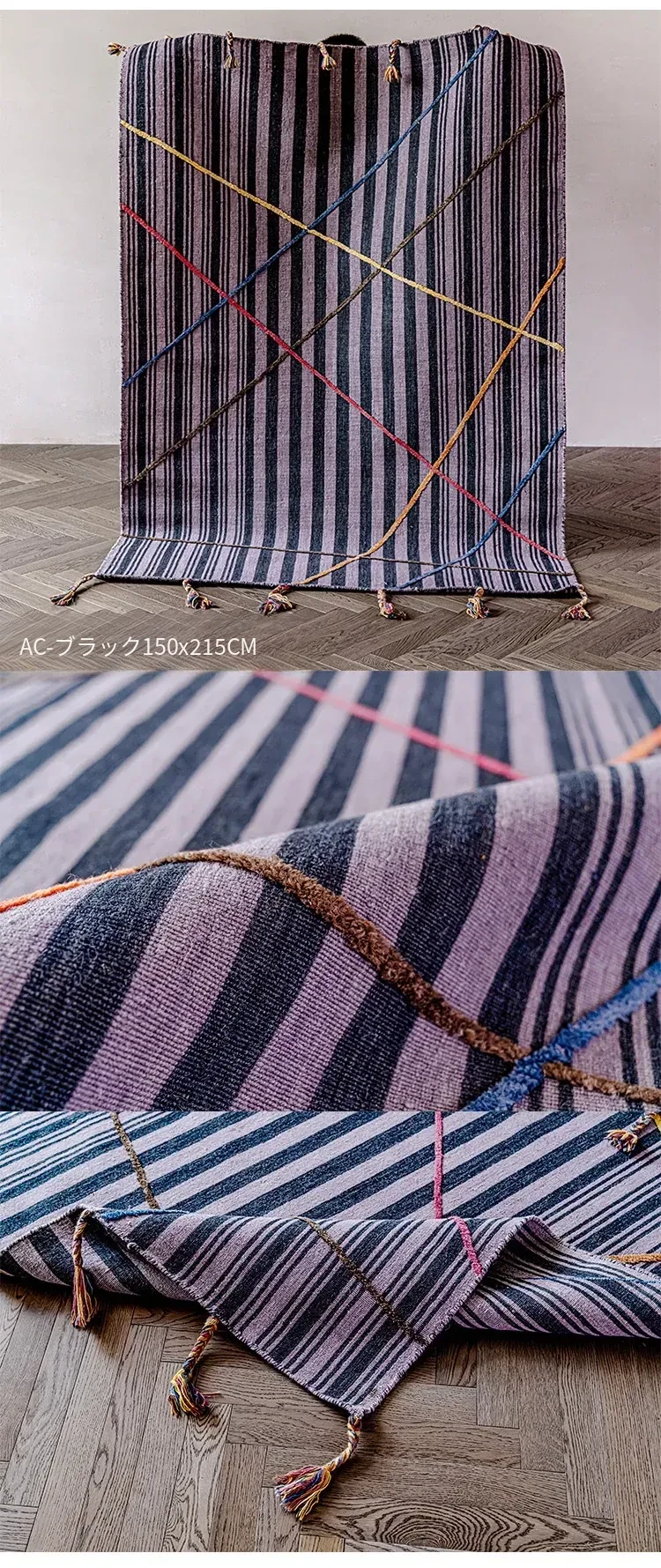 ビジュアルな味わいを持つ北欧輸入の現代的でシンプルな中式リビング用モロッコミックススタイルの手作りウールラグ。心地よい温もりと洗練されたデザインで、あなたの空間を特別に演出します!
