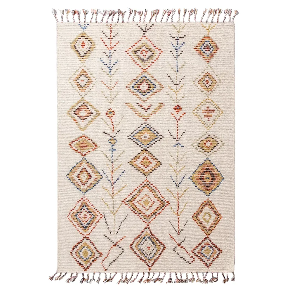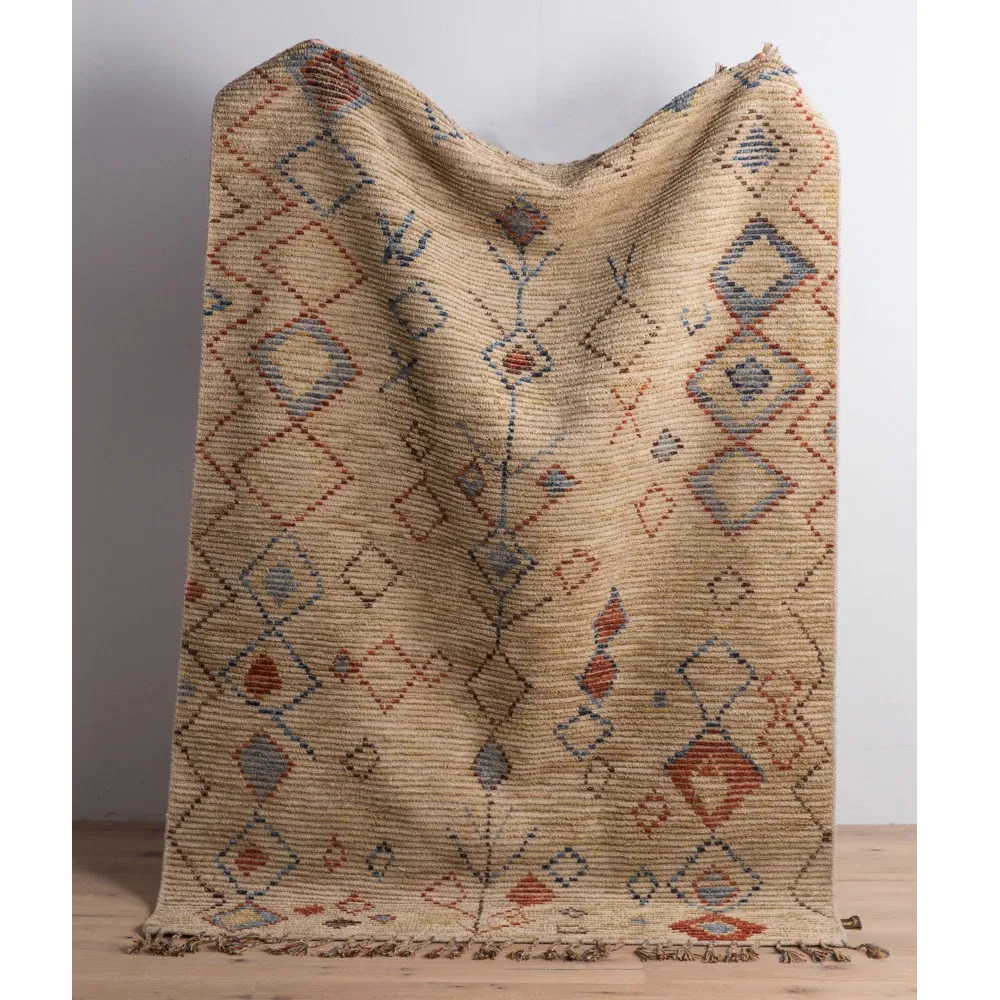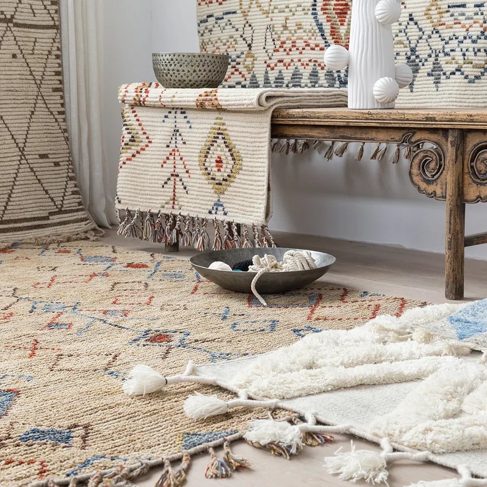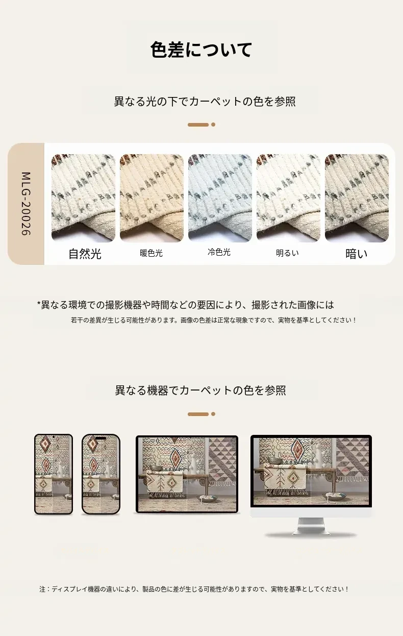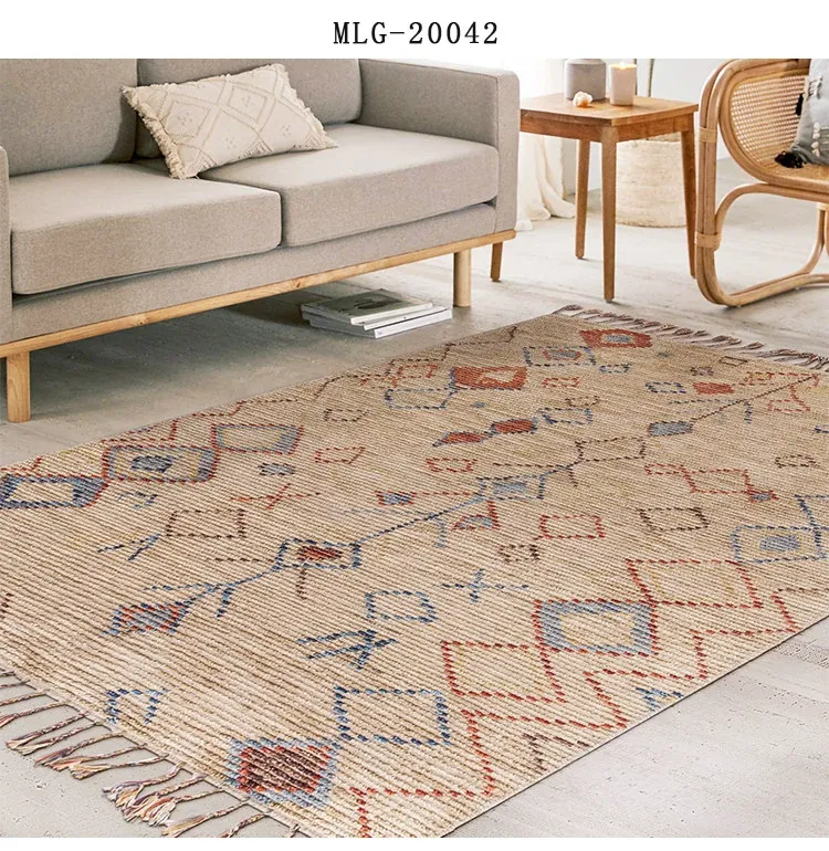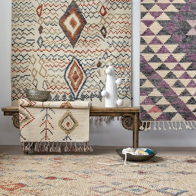 ビジュアルな味わいを持つ北欧輸入の現代的でシンプルな中式リビング用モロッコミックススタイルの手作りウールラグ。心地よい温もりと洗練されたデザインで、あなたの空間を特別に演出します!