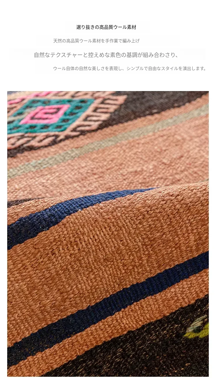 視覚と味覚を刺激する!輸入トルコ製手作りウールカーペット、リビングや寝室に最適なモロッコ風シンプルデザインのラグ。心地よい室内空間を演出します!