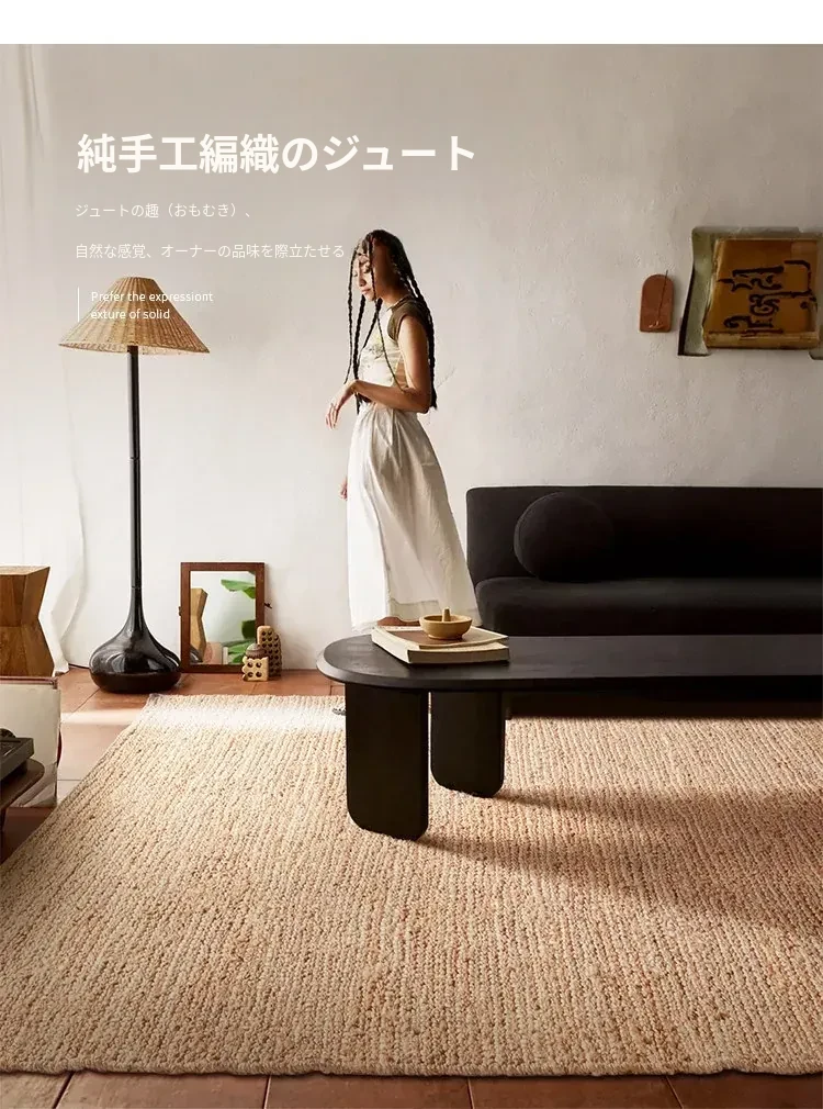 視覚と味覚の融合 インド直輸入 新中式デザイン ジュートとウールの手織りラグ 高級軽奢仕様 耐摩耗性抜群