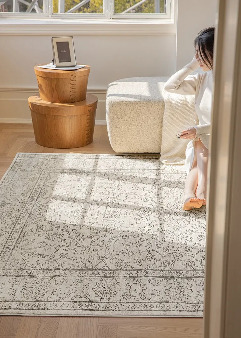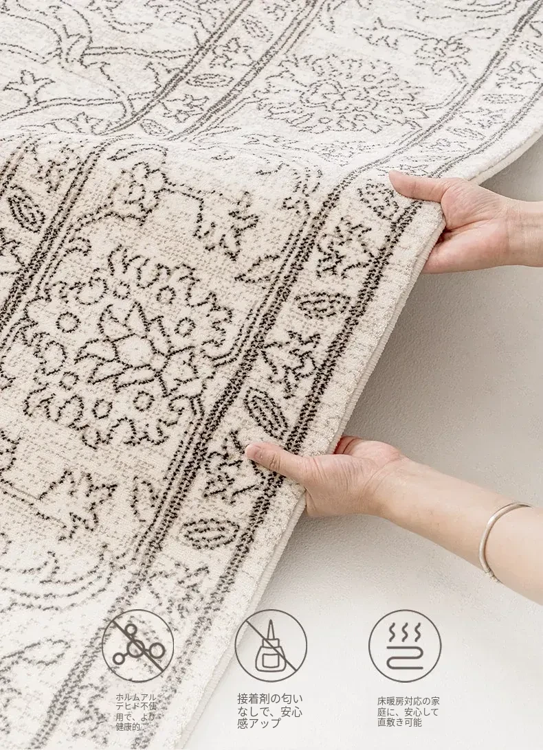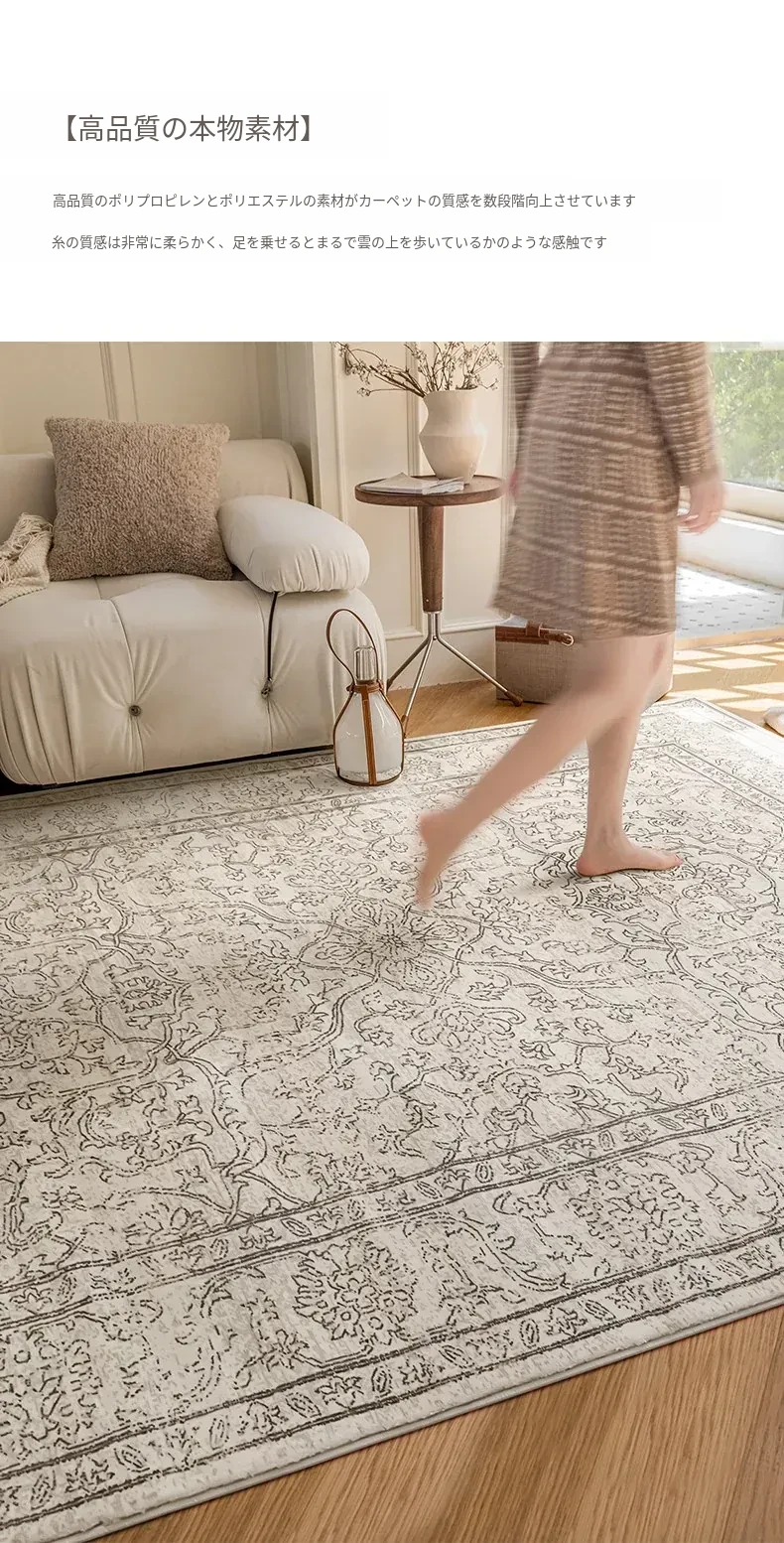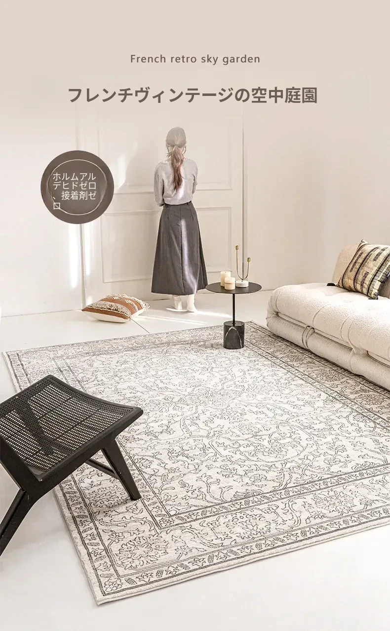 視覚と味覚を魅了する!グルー・ホルムアルデヒド不使用のフレンチアンティークスタイルのラグ。現代アメリカンレトロな高級織りで、リビングルームを洗練された空間に演出。