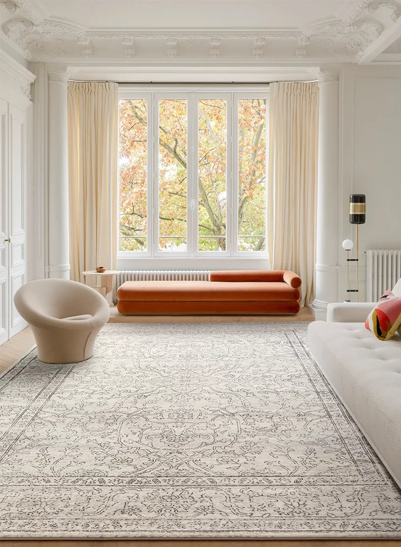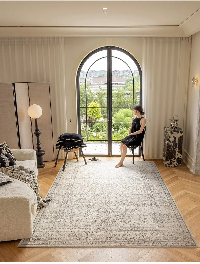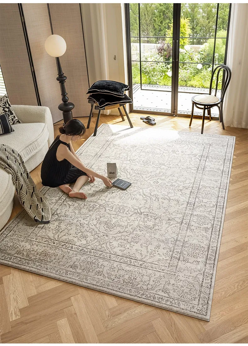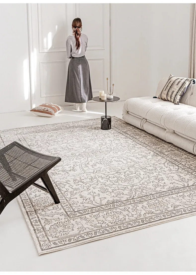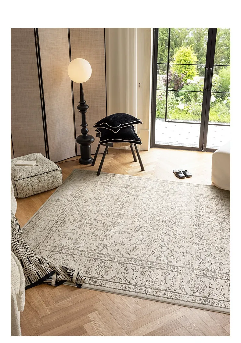 視覚と味覚を魅了する!グルー・ホルムアルデヒド不使用のフレンチアンティークスタイルのラグ。現代アメリカンレトロな高級織りで、リビングルームを洗練された空間に演出。