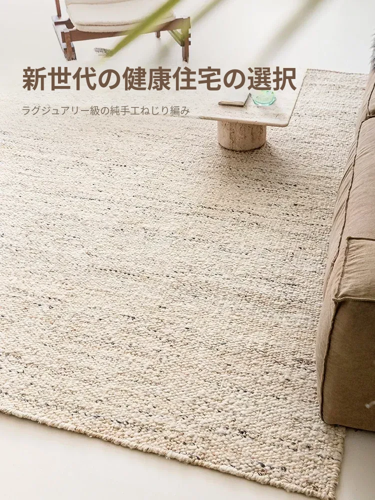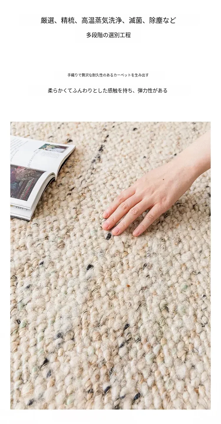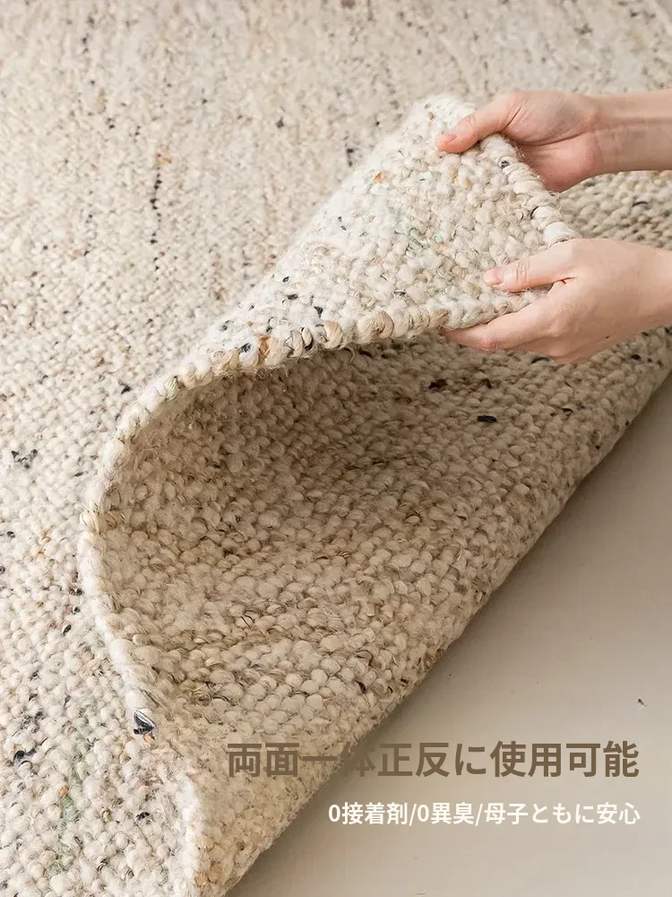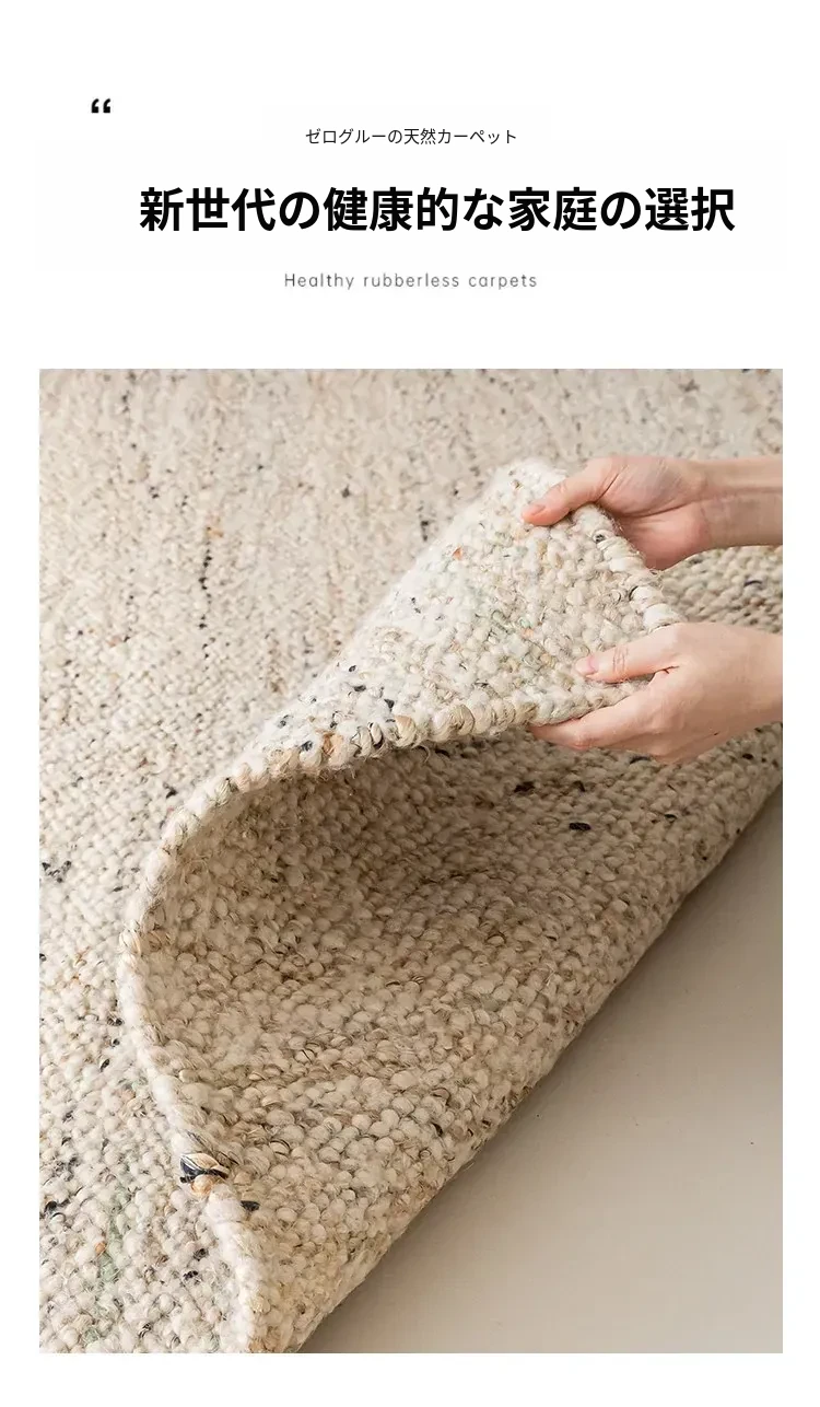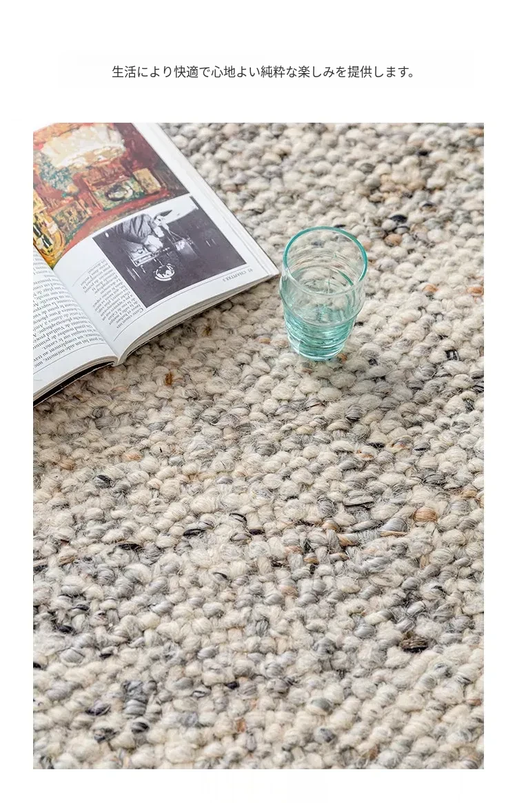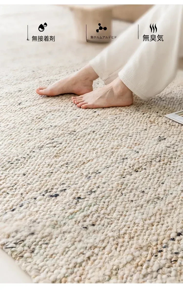 視覚的な美味しさを楽しむ!接着剤なし・ホルムアルデヒドフリーの手作りウールカーペット。リビングや寝室にぴったりな侘寂スタイルのシンプルなカラー。心地よい空間を演出します!