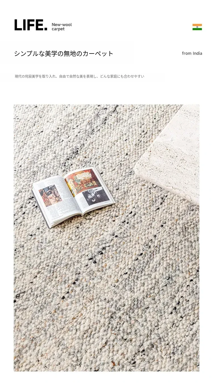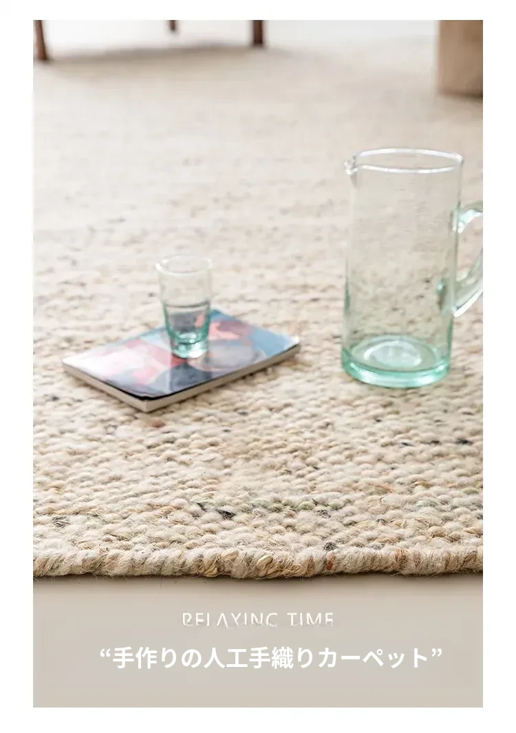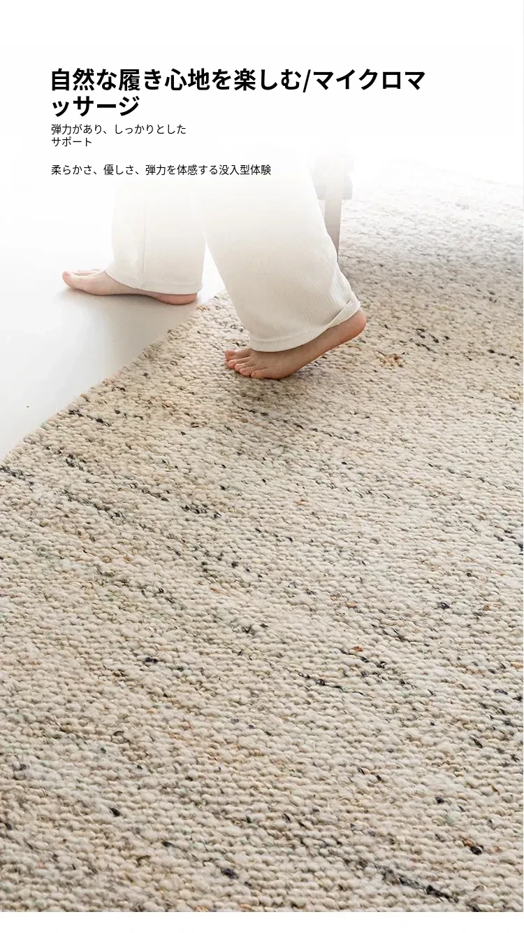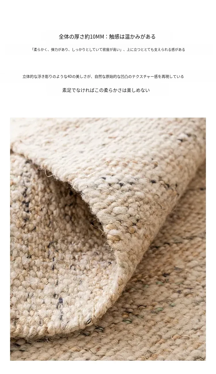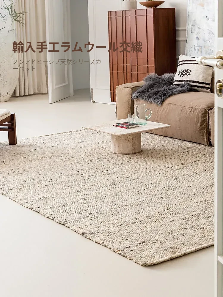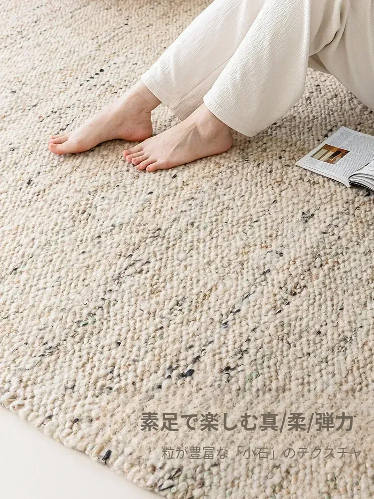 視覚的な美味しさを楽しむ!接着剤なし・ホルムアルデヒドフリーの手作りウールカーペット。リビングや寝室にぴったりな侘寂スタイルのシンプルなカラー。心地よい空間を演出します!